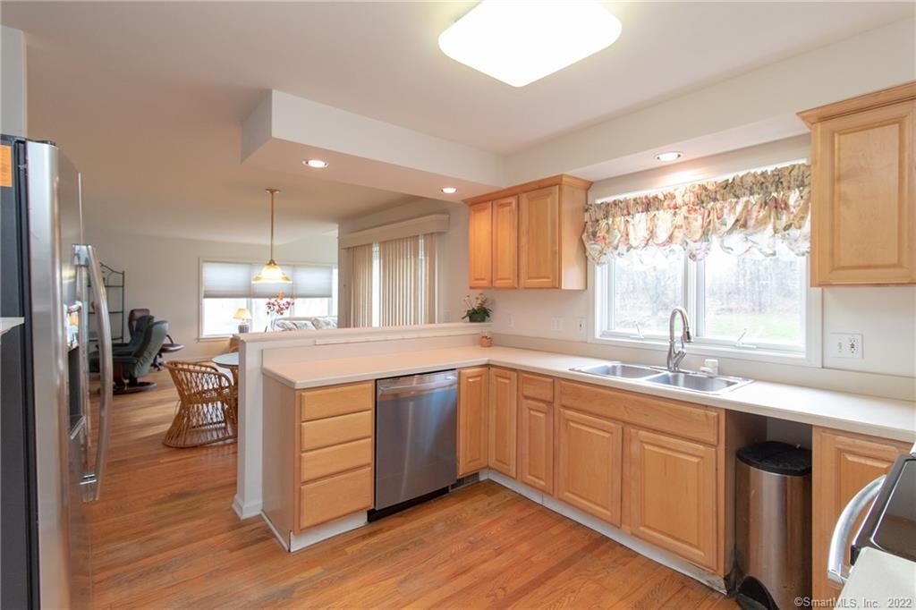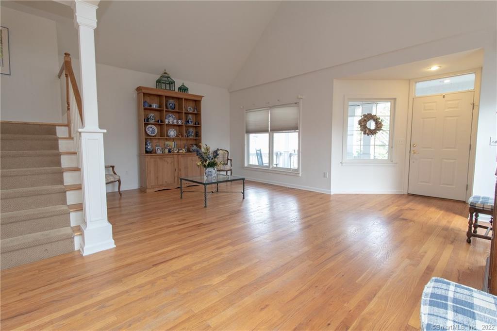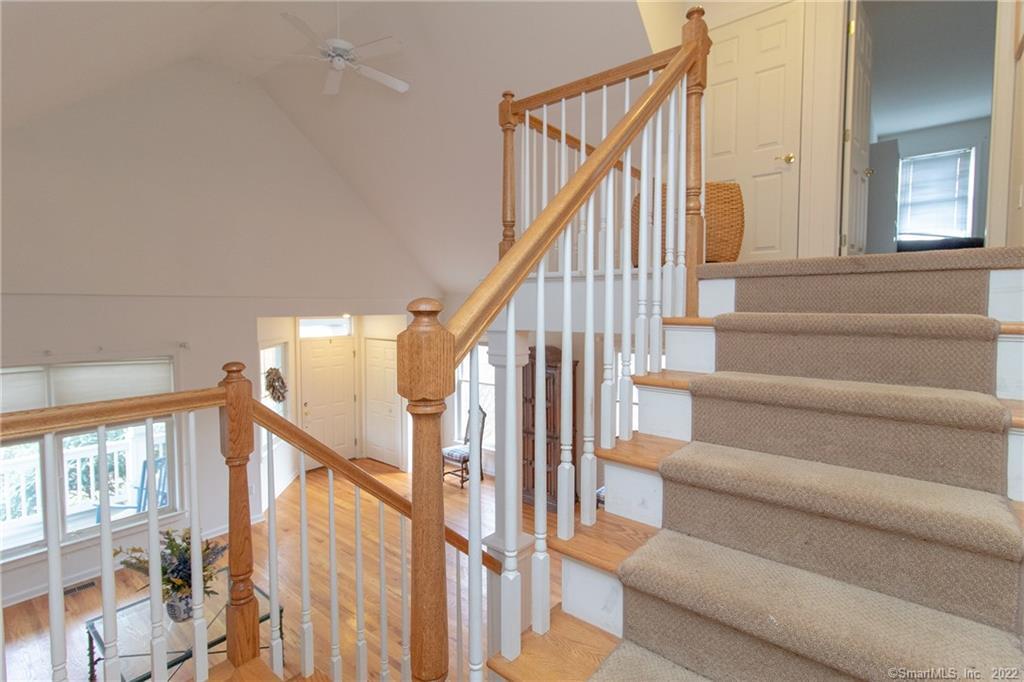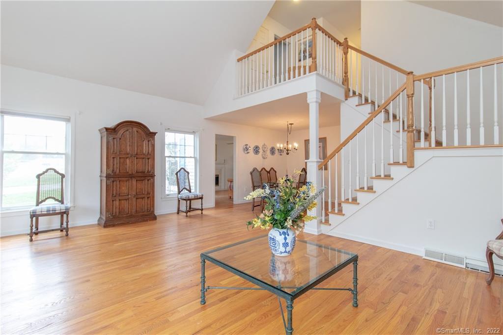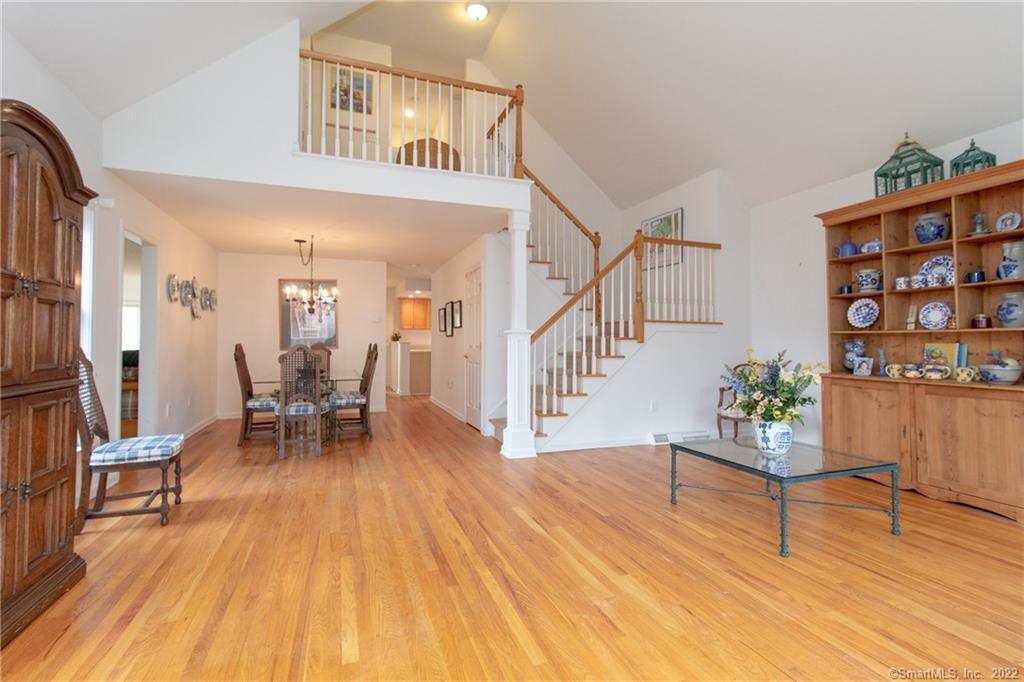 Charming 3 bedroom home in private Steeplechase community with 2-car garage and front porch. Inviting foyer with vaulted ceiling and staircase leading to 2nd floor with balcony overlooking living room. Open concept living and hardwood flooring throughout main level. Living room and formal dining area lead into kitchen and family room. Eat-in kitchen has tray ceilings, ALL NEW APPLIANCES, plenty of counter space and oak cabinets with sliding glass door leading to stone patio. LARGE family room with wood-burning fireplace and heated sun room area with vaulted ceilings. Master bedroom with on-suite and additional 2 bedrooms complete the 2nd level of this home. MOVE QUICK!