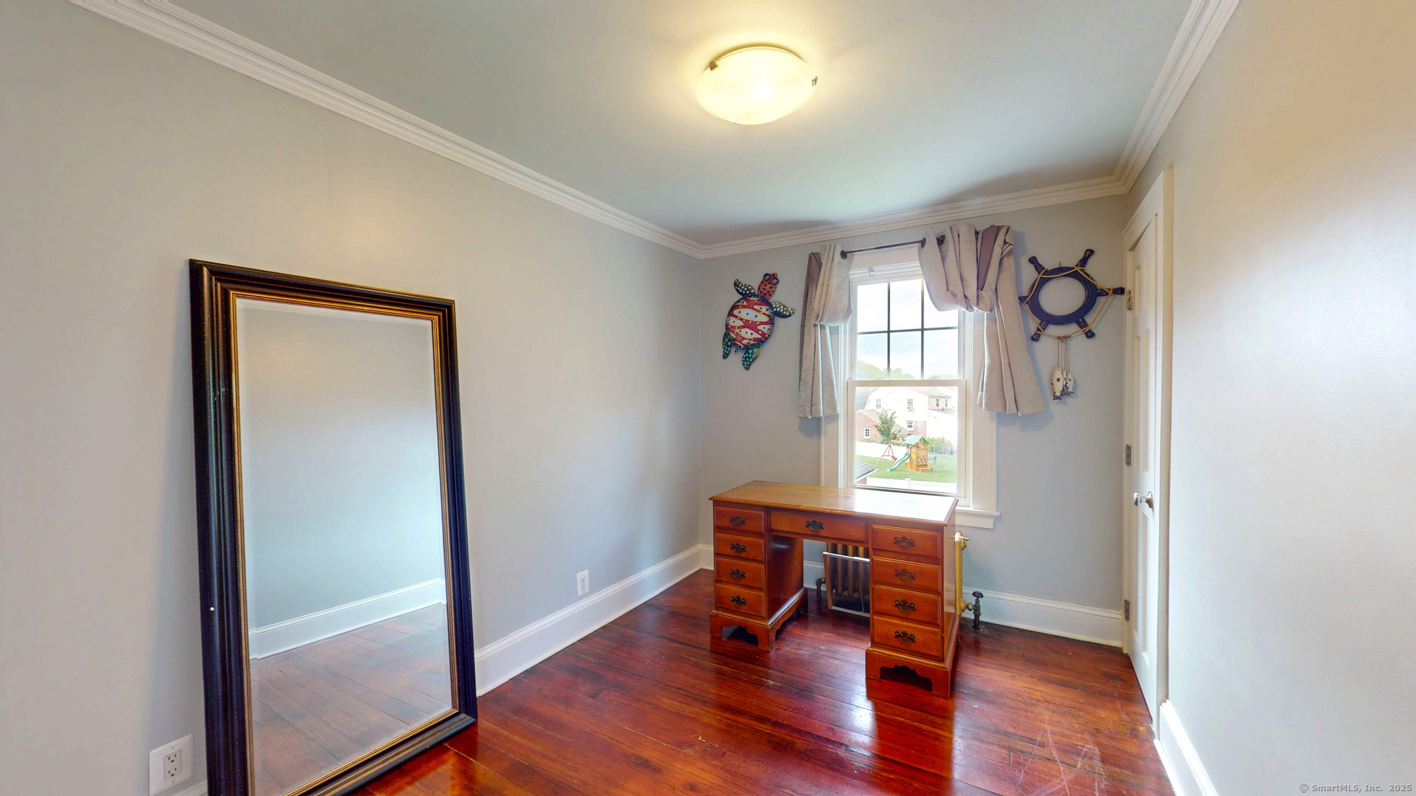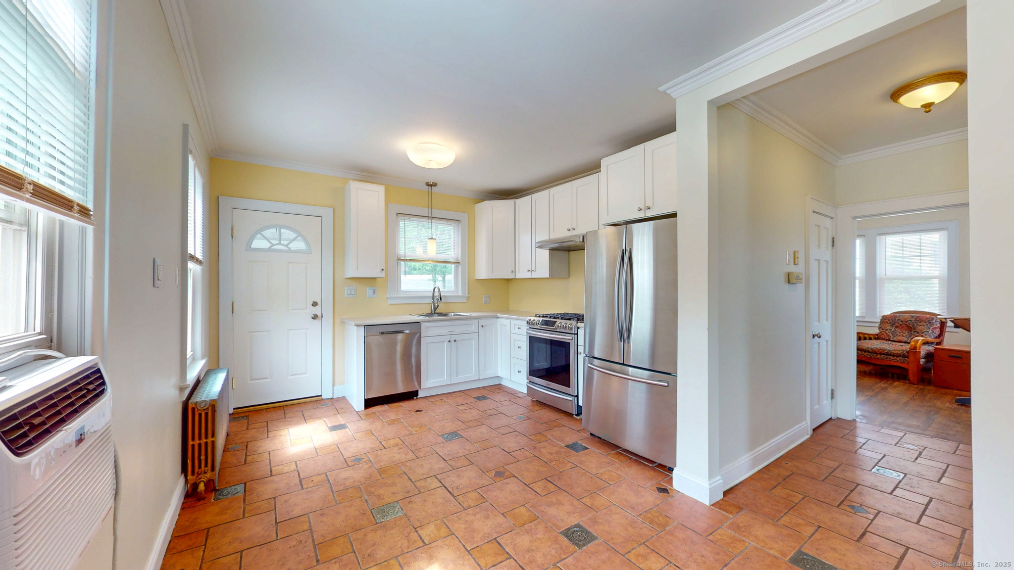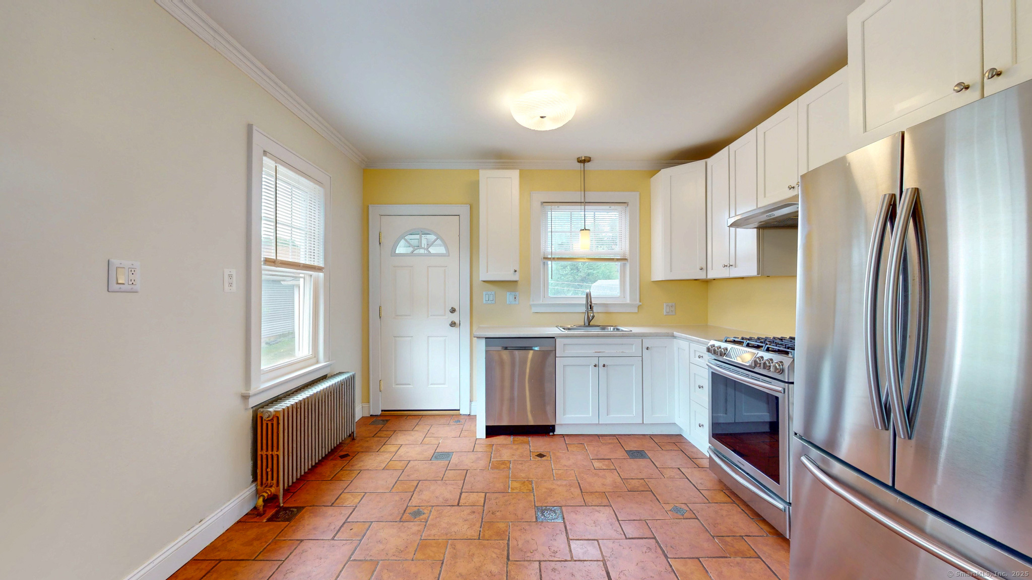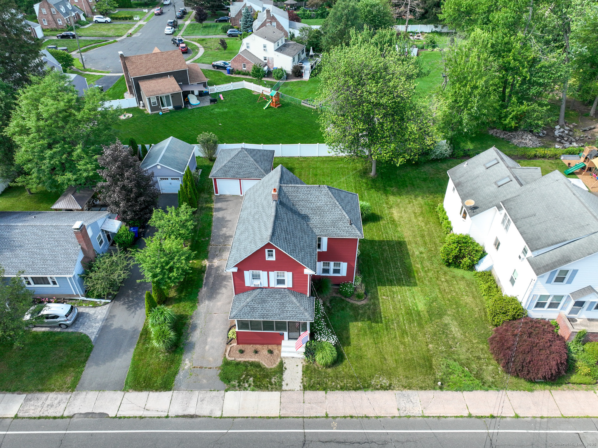 This charming four-bedroom, two-bathroom Colonial-style house perfectly blends historic architectural elements with modern comfort. The classic exterior features a symmetrical facade, a pitched roof, and exuding traditional curb appeal. The home offers a functional and inviting layout, with nine-foot ceiling giving an open spacious feel. Upgraded wiring, crown molding through out, updated modern light fixtures, custom energy efficient exterior doors, solid 6 panel wood doors. Both the front and rear entries offer mudrooms. A welcoming foyer leads into formal living, kitchen and dining area, with abundant natural light. The well-appointed kitchen boasts newer cabinets, Samsung stainless appliances, modern faucet, lig possibly a cozy family room or primary bedroom, and a convenient first-floor bathroom complete the main level. Upstairs, four generously sized bedrooms provide comfortable private spaces, including a master suite, along with a second full bathroom. Outdoor living is made easy with a desirable, flat yard that offers ample space for recreation, gardening, or relaxation. A practical two-car garage provides convenient parking and additional storage. One of the house's key highlights is its prime location, allowing for an easy walk to the town center, providing convenient access to local shops, restaurants, and amenities. This property is an ideal choice for those seeking a blend of classic design, functional living spaces, and a convenient, walkable neighborhood.