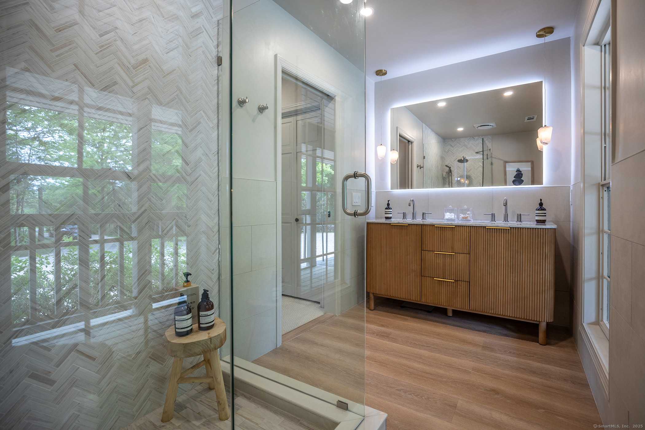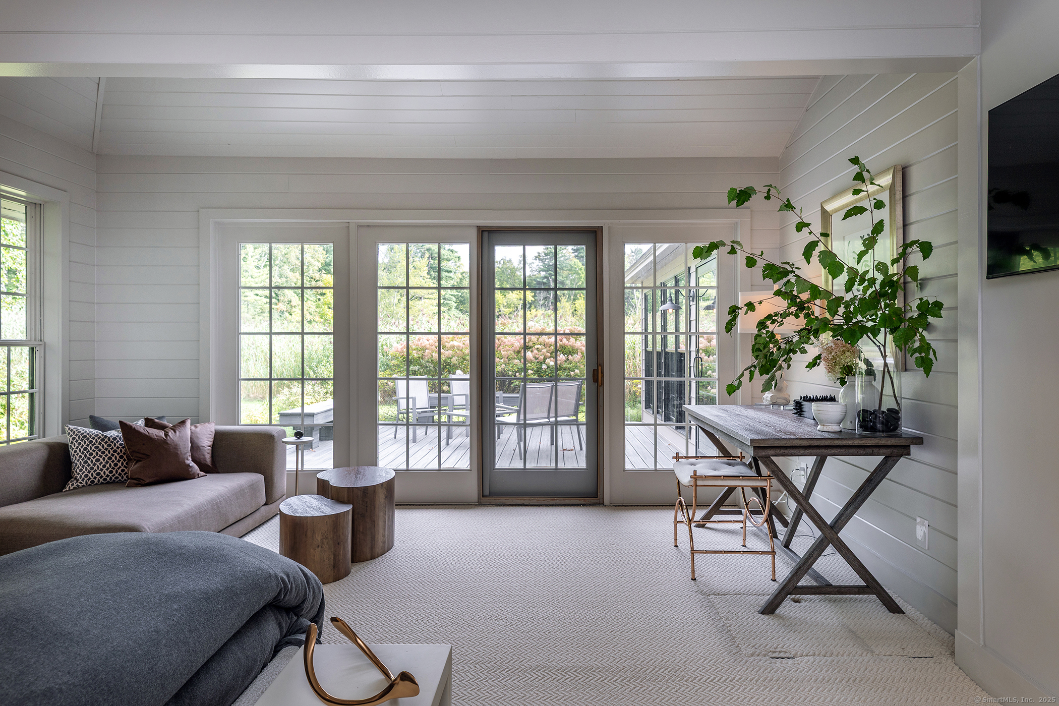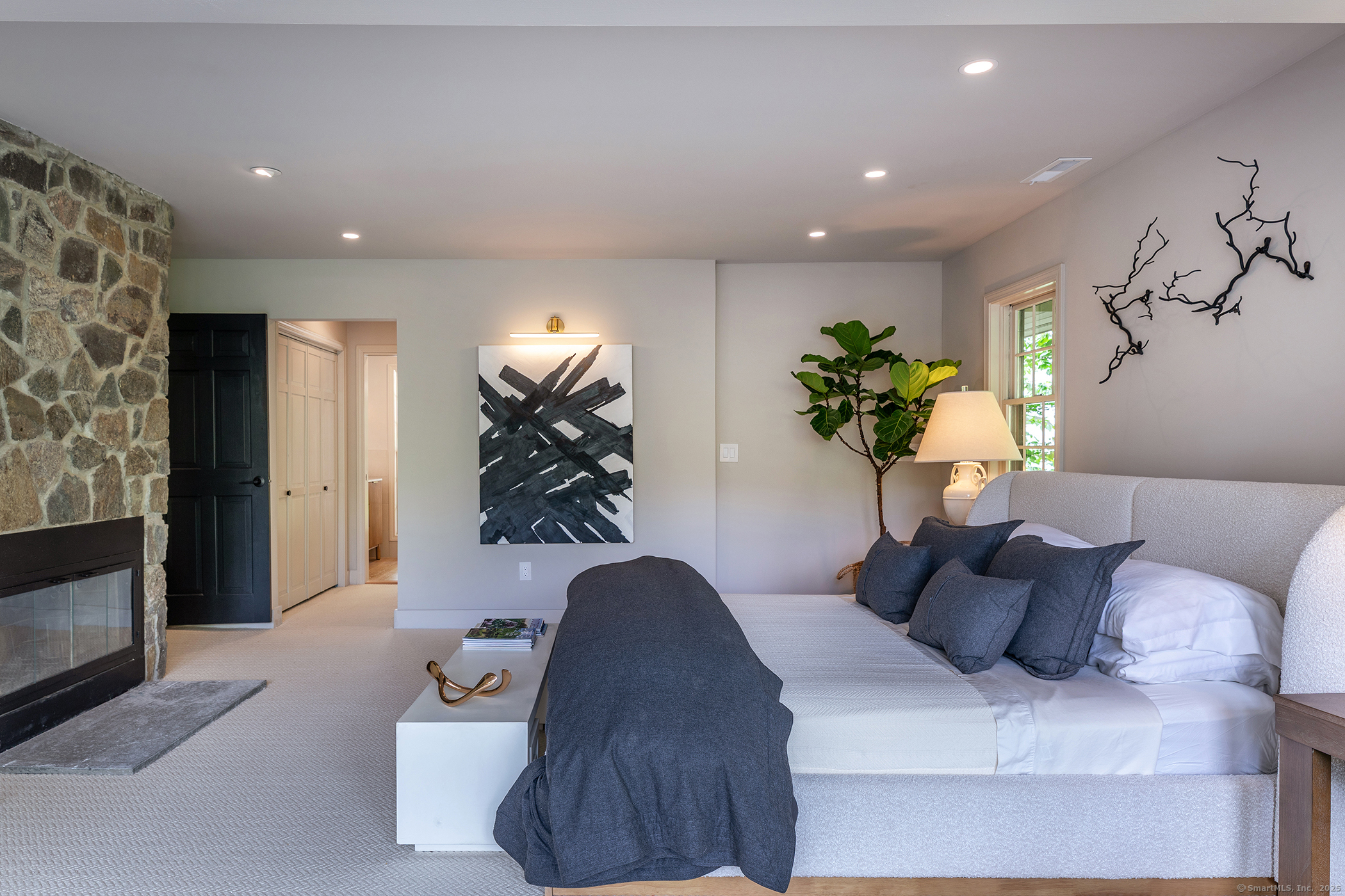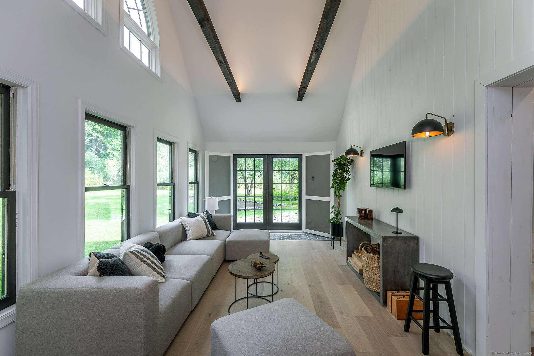 Contemporary elegance on one of Sharon's most prestigious addresses. A classic pea stone driveway leads to this newly renovated and glamorous 3 BDR/3+ Bath country home in a stunning natural setting with interiors designed by the NY-based firm Majordomo Lifestyle Architecture. Sleek sophistication abounds with gracious vaulted ceilings in the living room, anchored by a striking stone fireplace. The living room flows seamlessly into an expanded sunroom bathed in natural light - perfect for intimate dinners and grand entertaining with access to the patio. The updated eat-in kitchen serves as the heart of this modern masterpiece, with top of the line appliances and ample storage. Luxurious accommodations include an enlarged en-suite Primary BDR with fireplace on the main floor and access to the patio, and 2 spacious en suite bedrooms upstairs. Every space has been thoughtfully renovated to blend contemporary comfort with timeless charm. 2-car detached garage/barn offers extraordinary storage/work/studio spaces. Herrick Road places you at one of the finest locations in Sharon known for its exceptional estates and natural beauty. This home is a lifestyle statement in one of Litchfield County's most desirable communities. Enjoy this idyllic setting where cattails whisper in the breeze and privacy reigns supreme. Private schools nearby: (Hotchkiss, Kent School, Salisbury School, Millbrook School), skiing at Mohawk and Catamount, Sharon Playhouse, and Audubon. 2 hours to NYC.