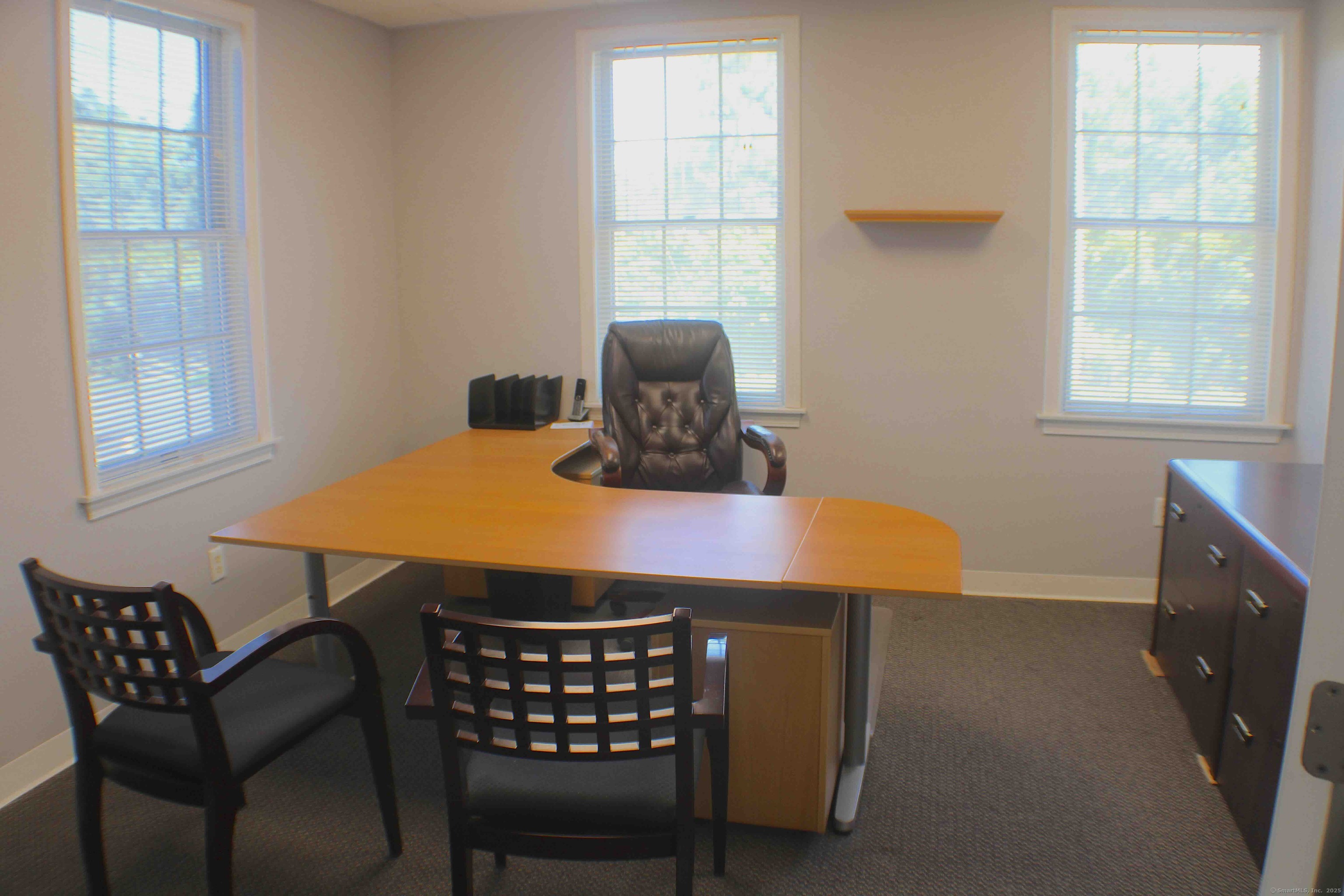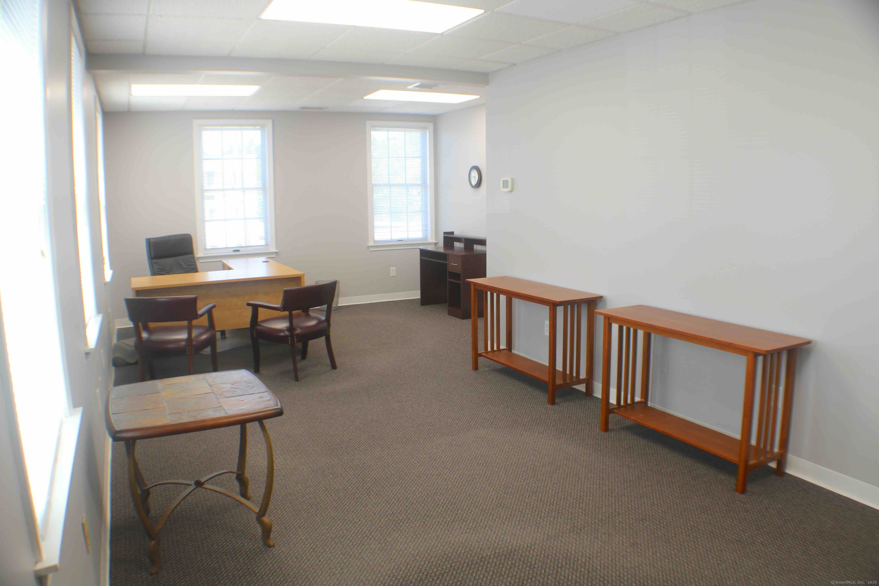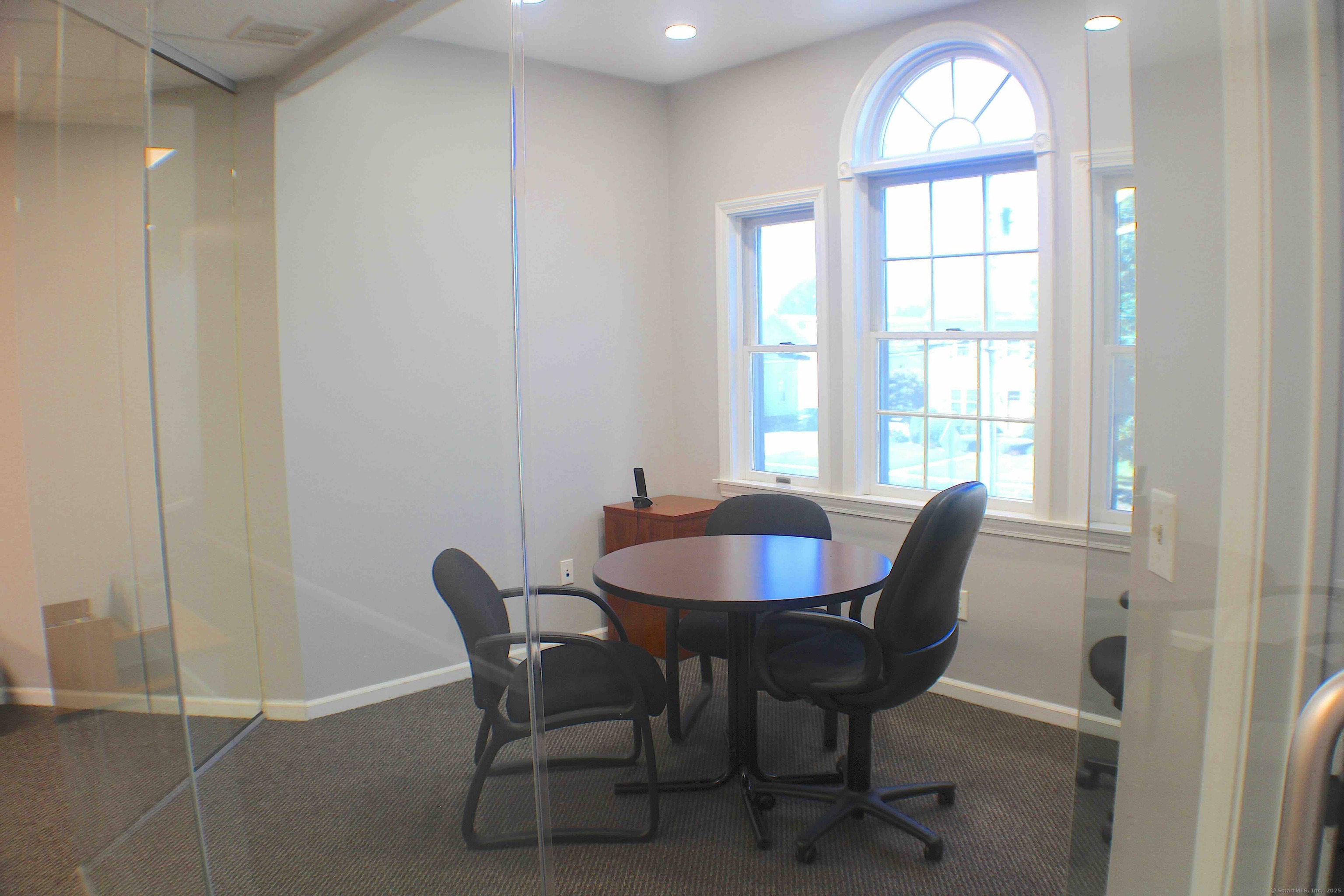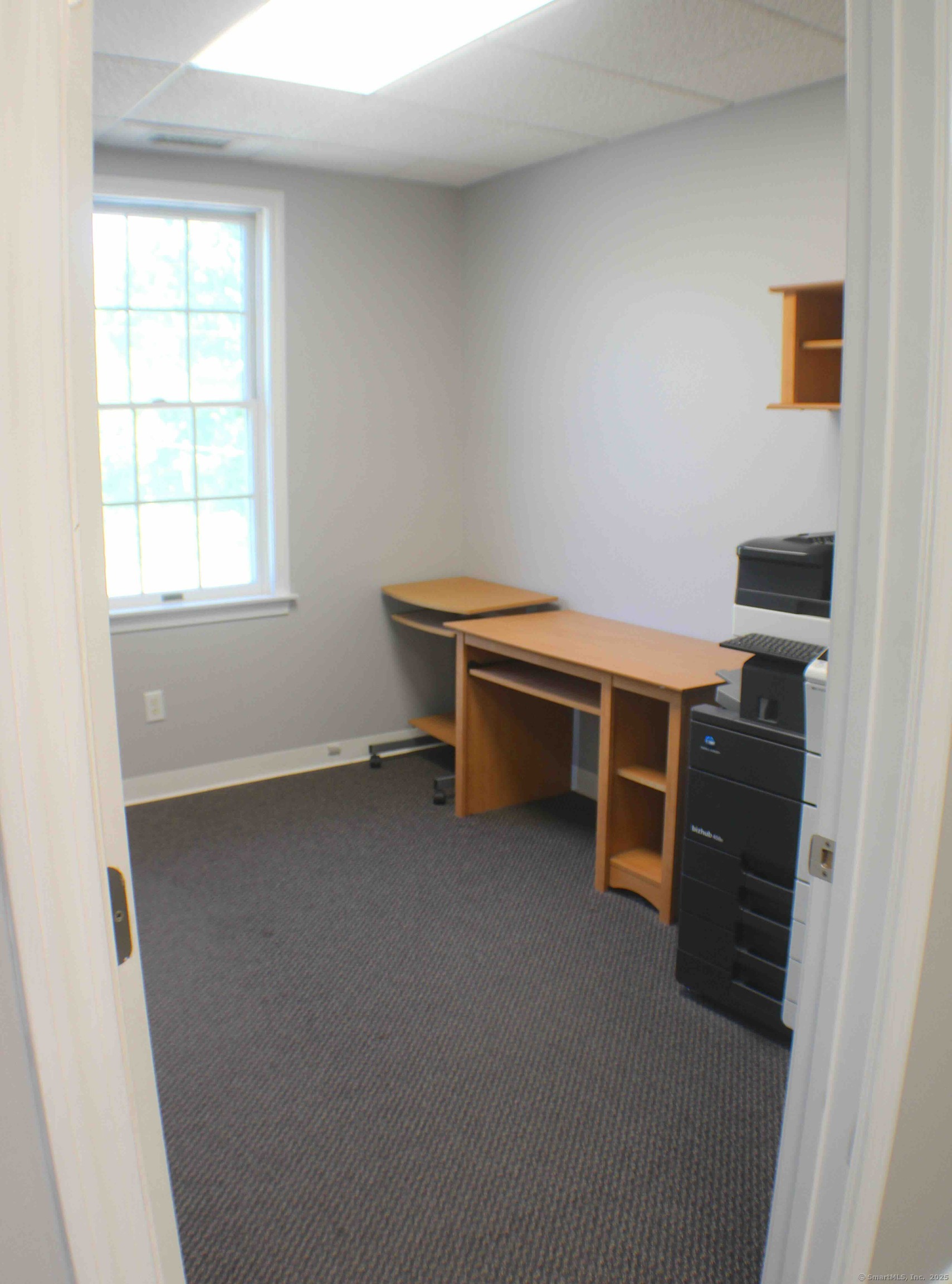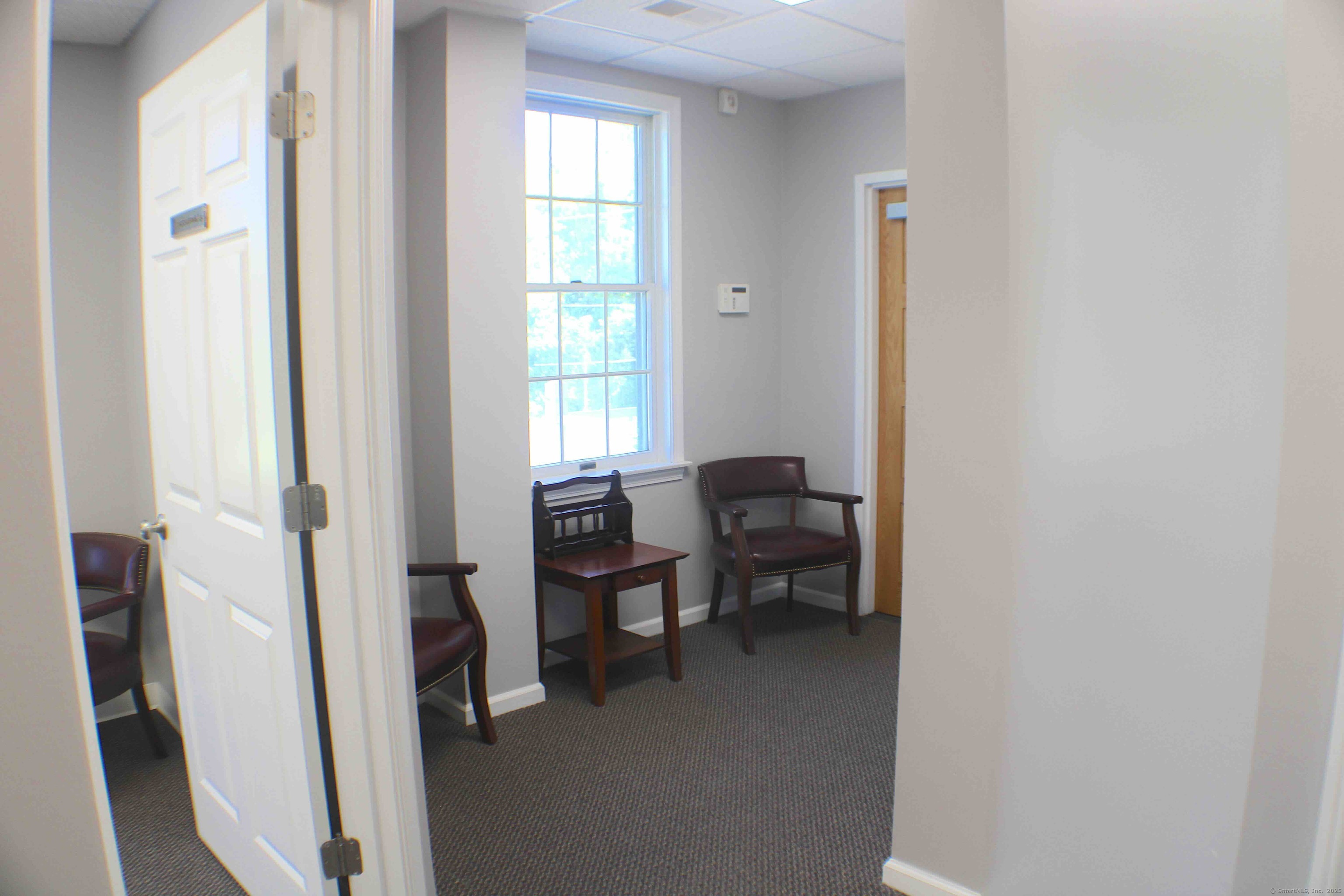 Move-in ready 1,972 SF office suite at 15 Maiden Lane, North Haven. This freshly updated second-floor space with elevator access features a large main office, glass-enclosed conference room, two private offices, kitchenette, reception/waiting area, copier/file room, and private men's and women's restrooms. Offered fully furnished (or delivered empty), the suite provides a professional setting on a quiet street just off Broadway with excellent access to I-91, Route 15, shopping, and town center. Offered at: $2,300/month plus utilities