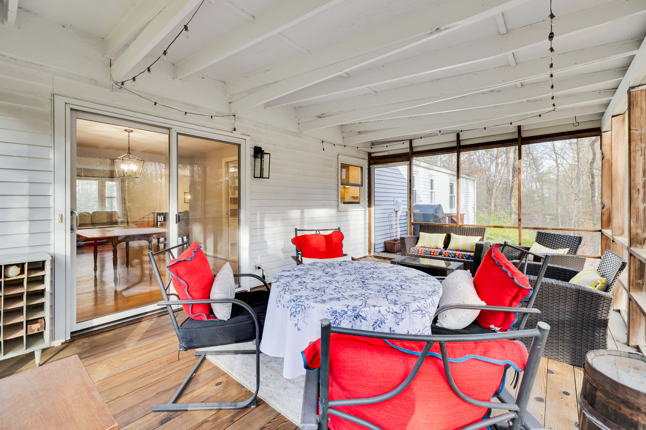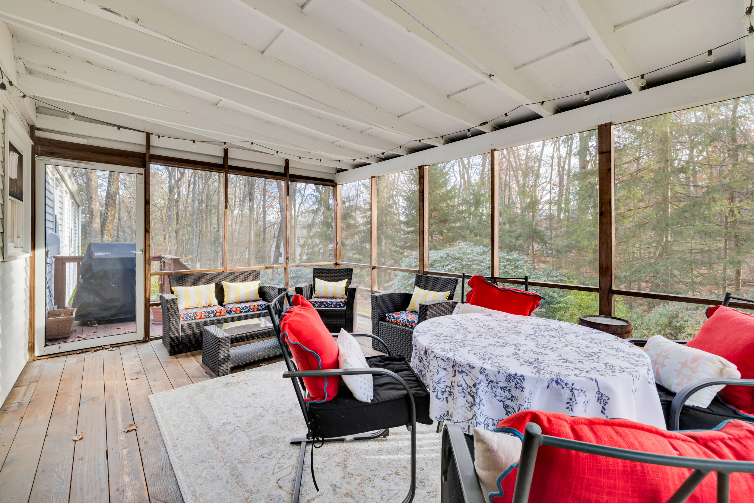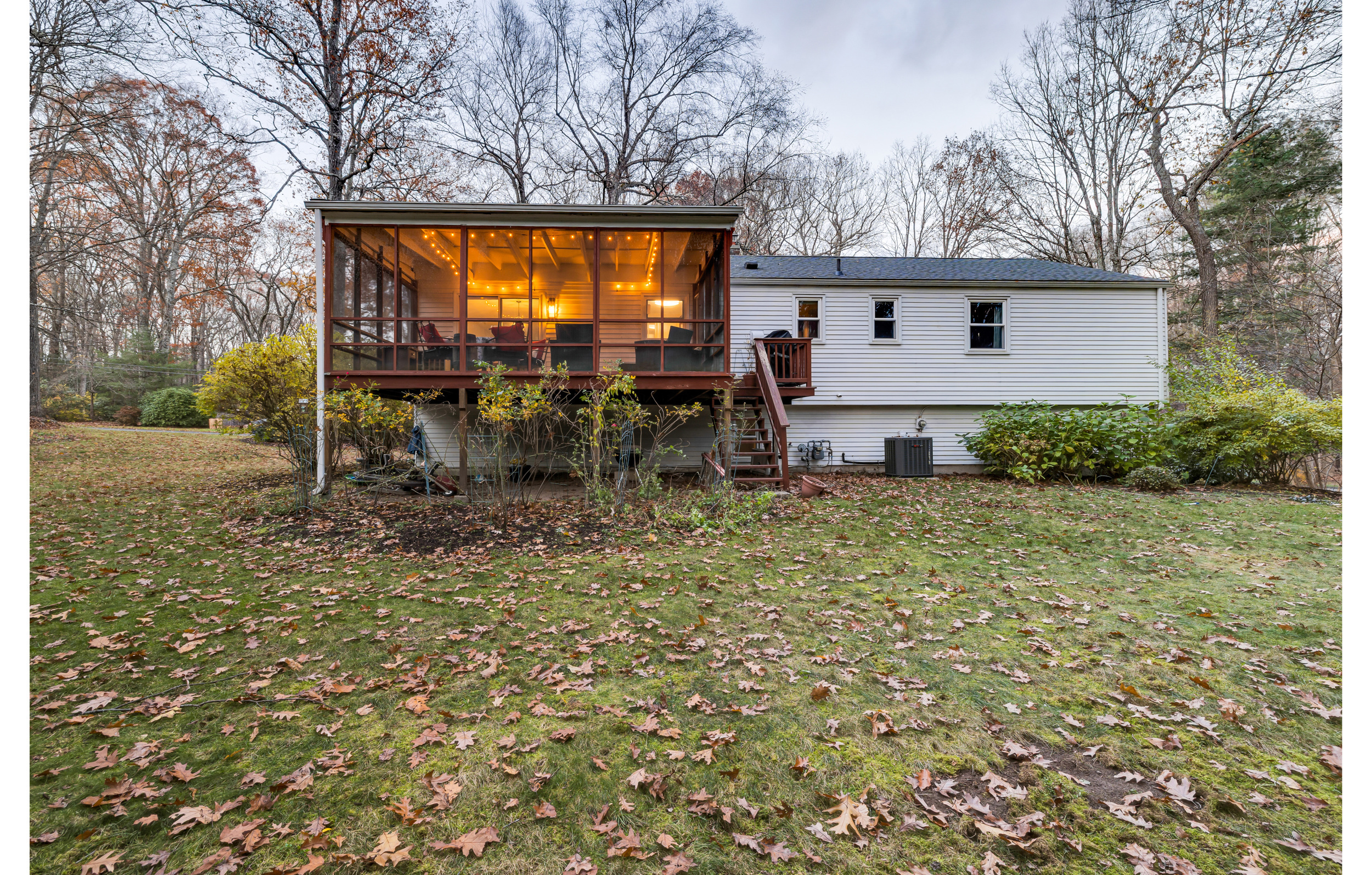 HIGHEST AND BEST DUE TUESDAY 11/25 BY 12 NOON. Nestled in a peaceful, established neighborhood, this charming home sits on a beautiful 1-acre lot offering both privacy and convenience. The open living and dining areas are filled with natural light, featuring hardwood floors and an easy flow into the enclosed porch-a year-round favorite spot for relaxing, entertaining, or enjoying views of the wooded backyard. The spacious kitchen includes plenty of cabinetry, tile flooring, and a built-in hutch for added storage and display. The home's thoughtful updates include a new roof (2023) and air duct cleaning (2025), ensuring comfort and efficiency. Outside, the expansive yard provides the perfect setting for family gatherings, playtime, or simply taking in the quiet surroundings. A screened-in porch and back deck extend the living space outdoors, blending comfort and nature. Located just minutes from Avon, Canton, and Simsbury, residents enjoy quick access to local shopping, restaurants, and everyday amenities while coming home to a serene suburban setting.
