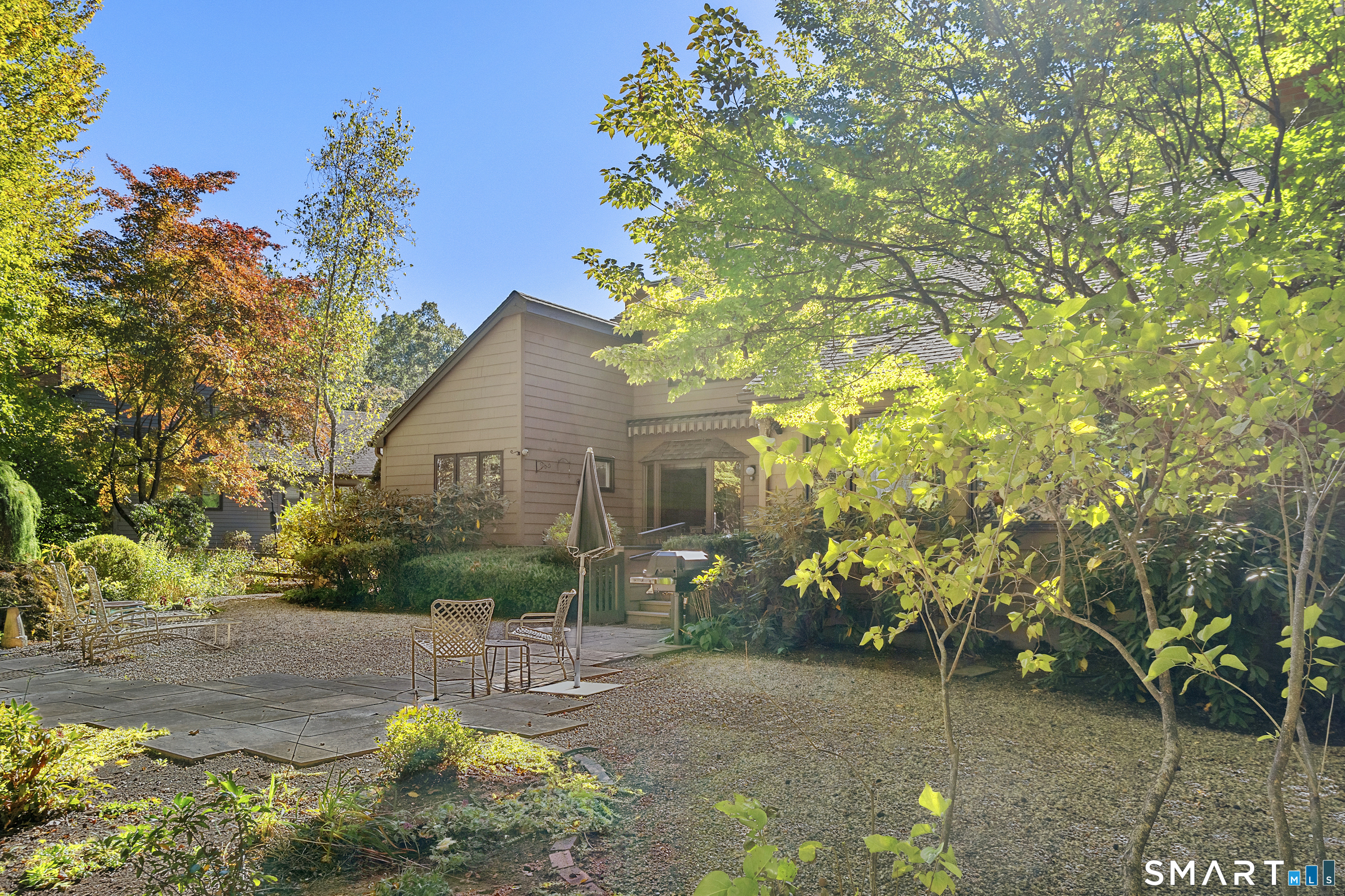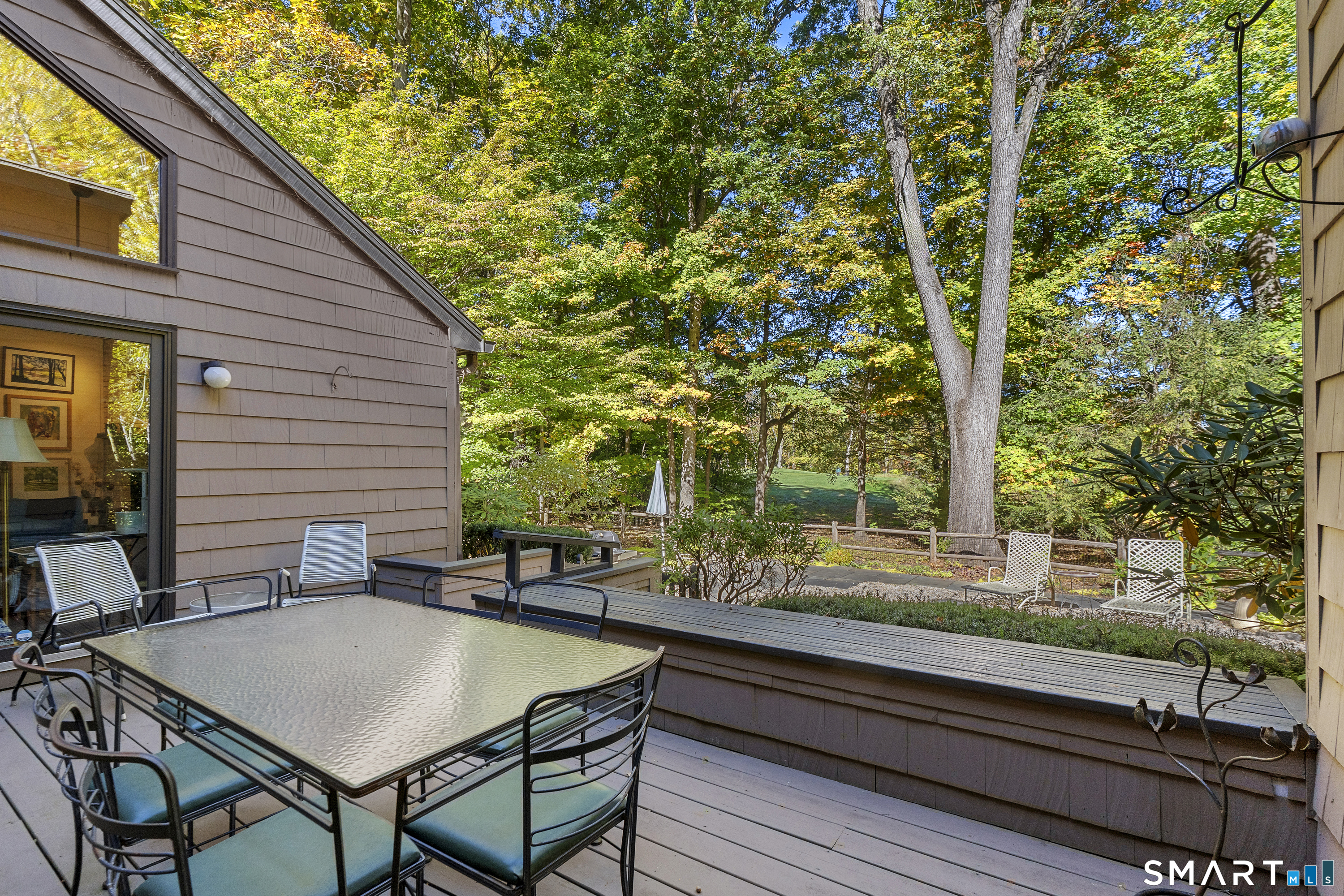 Best/Final offers due Wed 3/25 by 5pm. Freestanding condominium offering bright, sun-filled spaces and easy first-floor living. The welcoming living room showcases a vaulted ceiling and built-ins, creating an open and airy feel. It flows seamlessly into the dining room, making entertaining effortless. The eat-in kitchen with stainless steel appliances offers an island, ample cabinetry and connects directly to the family room with a gas fireplace. Sliding doors lead to a deck with retractable awning and gas grill overlooking a beautifully landscaped fenced in backyard with scenic golf course views-an ideal setting for relaxing or hosting gatherings. The spacious primary bedroom with new carpet is on the main level overlooking the scenic backyard, large walk in closet and full bathroom with heated floors. The main level includes a convenient laundry area, pantry storage, half bath and attached 2 car garage. Upstairs, you'll find two additional bedrooms, each with its own en suite bathroom, offering comfort and flexibility for guests, home office space, or hobbies. Incredible storage throughout and 2 zone gas heat. The large unfinished basement provides excellent storage, including a large cedar closet, and has potential for future expansion. This is a rare opportunity for low-maintenance living in a freestanding home with thoughtful design, abundant natural light, and picturesque surroundings. Special district tax is $2191.09 quarterly.