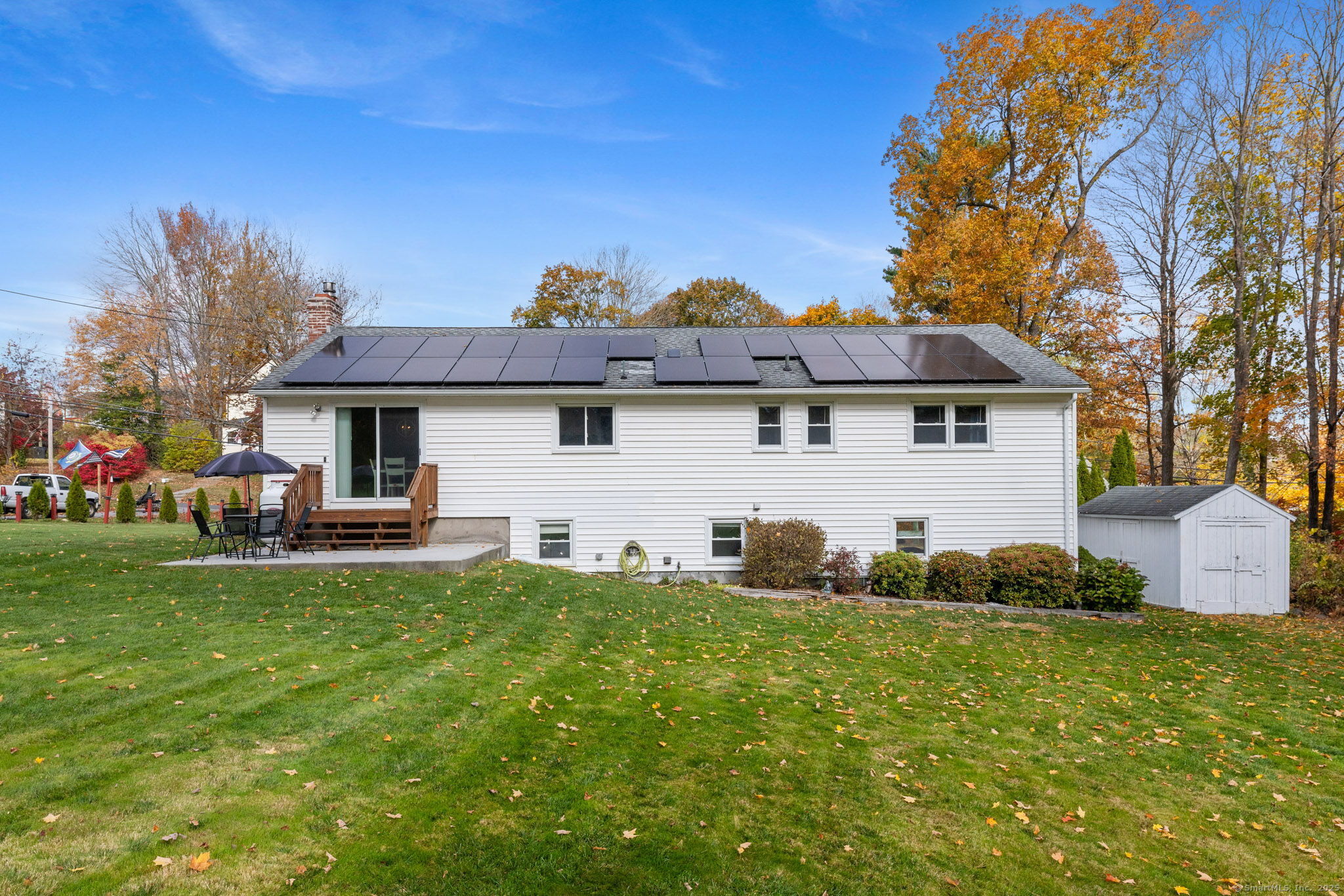 Welcome to 6 E. Orchard Street in Plymouth, where comfort, style & practicality come together in this immaculate oversized raised ranch. Perfectly situated on a quiet street next to a park, this home offers a peaceful setting that's hard to find. Step inside to discover a freshly painted interior that radiate warmth & care. The kitchen features tile flooring, plenty of cabinetry, & flows easily into the dining area with hardwood floors, creating a natural space for gatherings. The inviting living room, with its bay window, fills the home with soft natural light. The bedrooms are generously sized, while both full bathrooms are tastefully updated for everyday convenience. The lower level is an absolute standout with built-in bookcases, cabinets, & a separate room ideal for an office, craft room, guest space, or potential in-law setup. Laundry hookups on both levels make life easy, & the basement also offers plenty of storage. Outside, enjoy the brand new 2023 driveway, beautifully manicured yard, & a lovely patio that's perfect for relaxing or entertaining while taking in the serene surroundings. Additional updates include a fireplace for cozy evenings, & solar panels that eliminate your Eversource bill for just $360 a month. With an amazing backyard, quiet location, & move-in-ready condition, this Plymouth gem truly shines as a perfect blend of efficiency, charm & comfort.