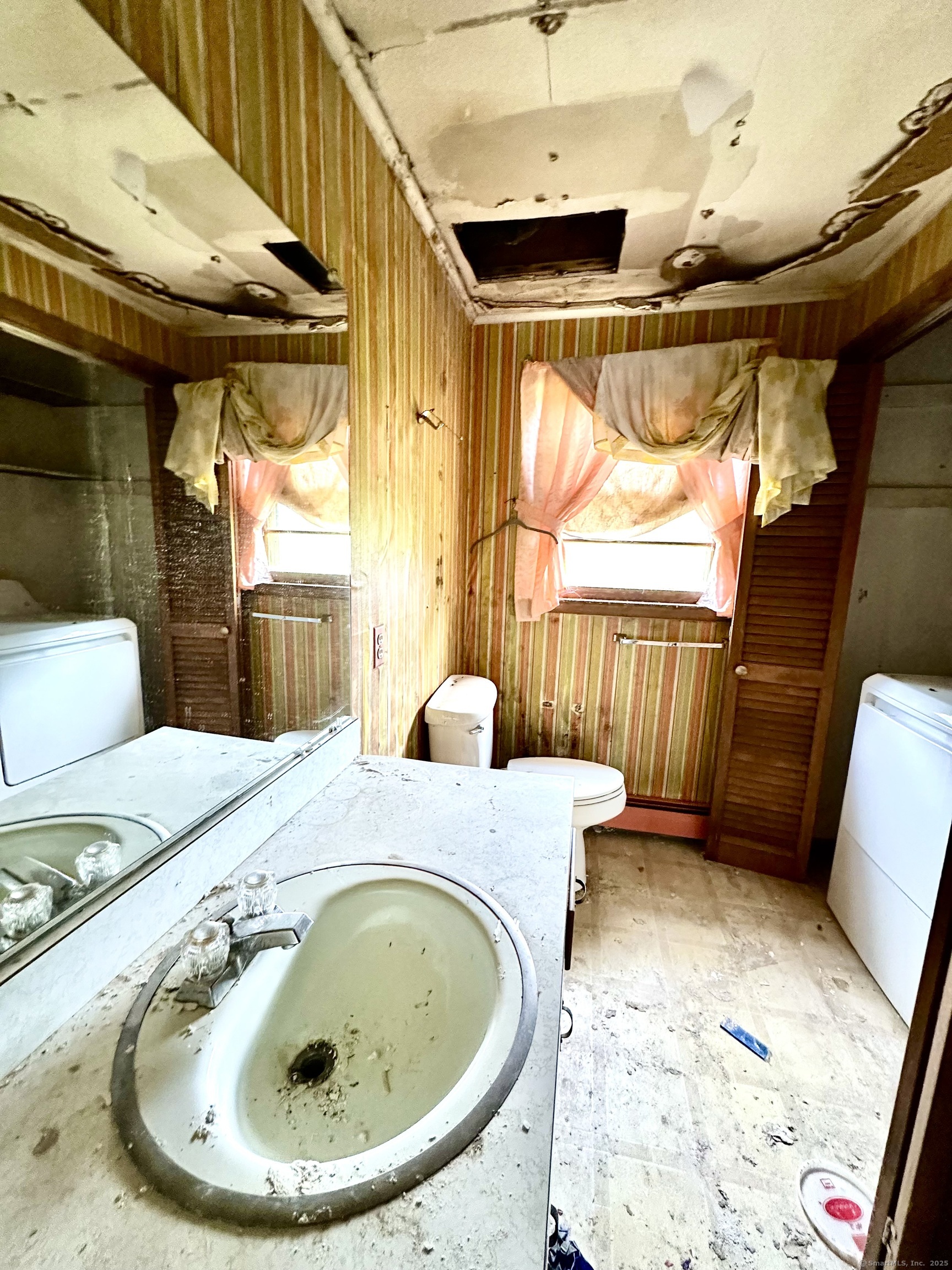 Attention investors! Looking for a winter project? This is it. This 2200 square foot Colonial with 4 bedrooms and 2.1 baths sits on nearly an acre of level land. The main level has a spacious living room, dining room, family room and kitchen, along with a half bath with laundry area. Upstairs are four generously sized bedrooms, all with good closet space, along with two full bathrooms, one of which is located in the primary bedroom. The primary also has a large walk in closet. The home has gas heat and hot water and a two car attached garage. Located in a quiet yet convenient location. Come explore the upside of this one. Possible mold present. Enter at your own risk.