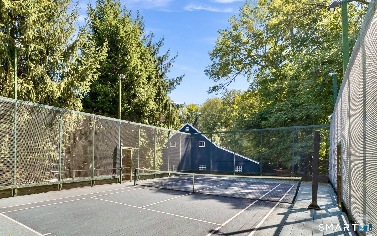 A storybook entrance framed by classic stone walls opens to four flat, park-like acres leads you to this thoughtfully updated five-bedroom Colonial layered with warmth, character, and the kind of detail that make a house feel instantly welcoming. The light filled chef's kitchen flowing seamlessly into a family room with fireplace and French doors open to the terrace, heated pool, spa, and paddle court - effortless indoor outdoor living. Upstairs offers a light filled, vaulted primary bedroom suite plus 3/4 additional bedrooms and rear staircase to the spacious mudroom and side entrance. A gracious first-floor guest suite is perfect for family and friends. The finished lower level adds flexible space for exercise or play. The stunning post-and-beam barn - with room for 4+ cars and an oversized loft - completes the picture.Warm, inviting, and undeniably special. A true New England gem. Prepare to fall in love.