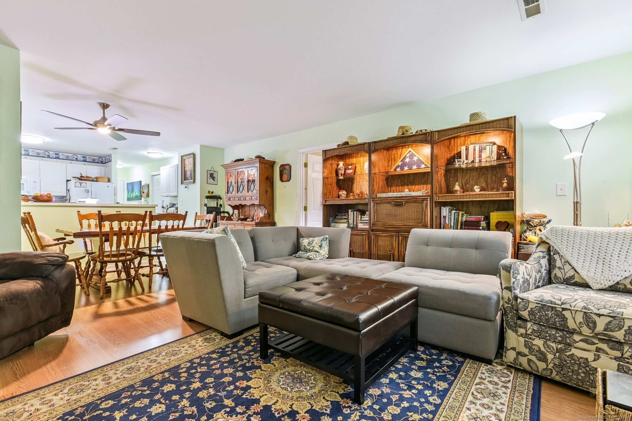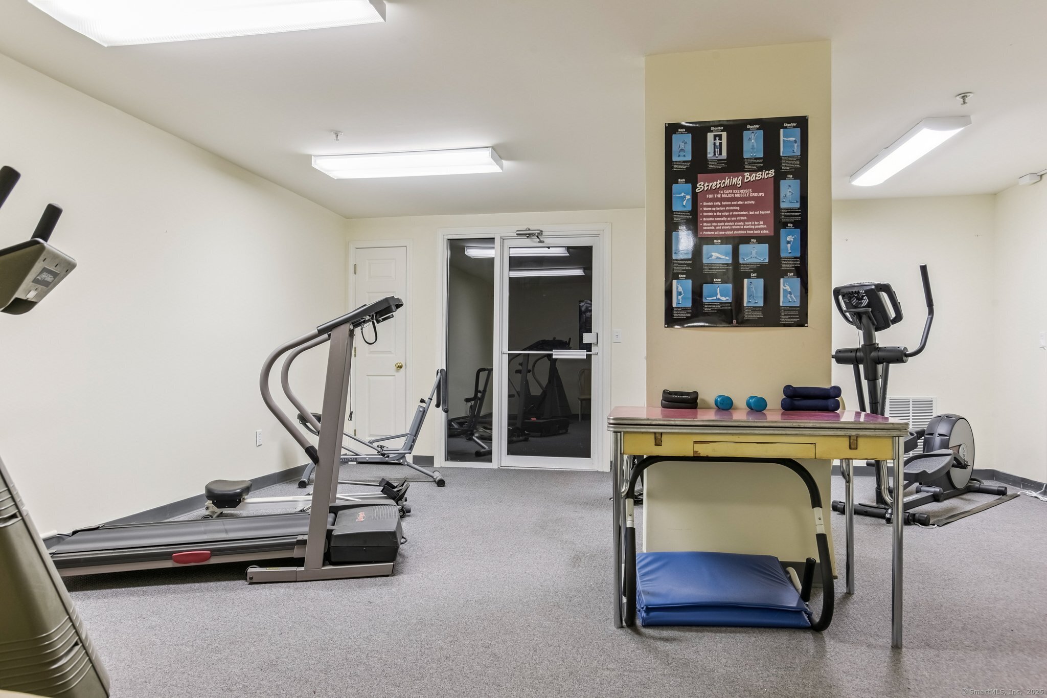 Welcome to The Commons at Mill River! This bright and spacious 2-bedroom, 2-bath condo offers an open floor plan designed for easy living, all without the hassle of exterior maintenance. Step inside to find abundant natural light, double French doors leading to a screened-in porch with peaceful, wooded views, perfect for morning coffee or quiet evenings. The updated kitchen features a movable island, perfect for flexible dining or entertaining, and the home includes new windows, updated showers, central air, and in-unit laundry for added comfort and convenience. This well-maintained community offers an elevator, fitness center, and recreation room, giving you the best of both comfort and community. Ideally located just minutes from the Hamden Plaza, restaurants, and shopping, and with easy access to the Wilbur Cross Parkway, this condo blends convenience, privacy, and low-maintenance living, all in one inviting space.