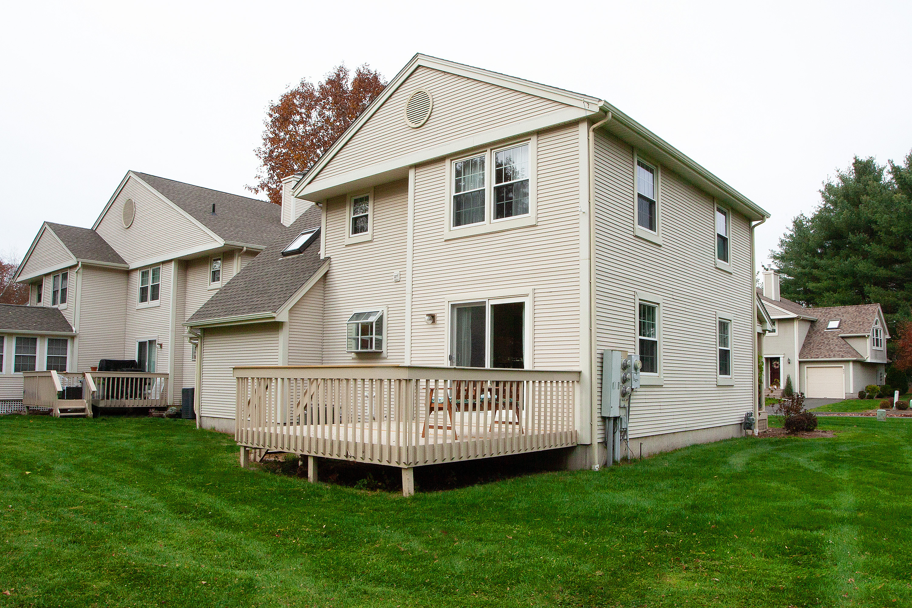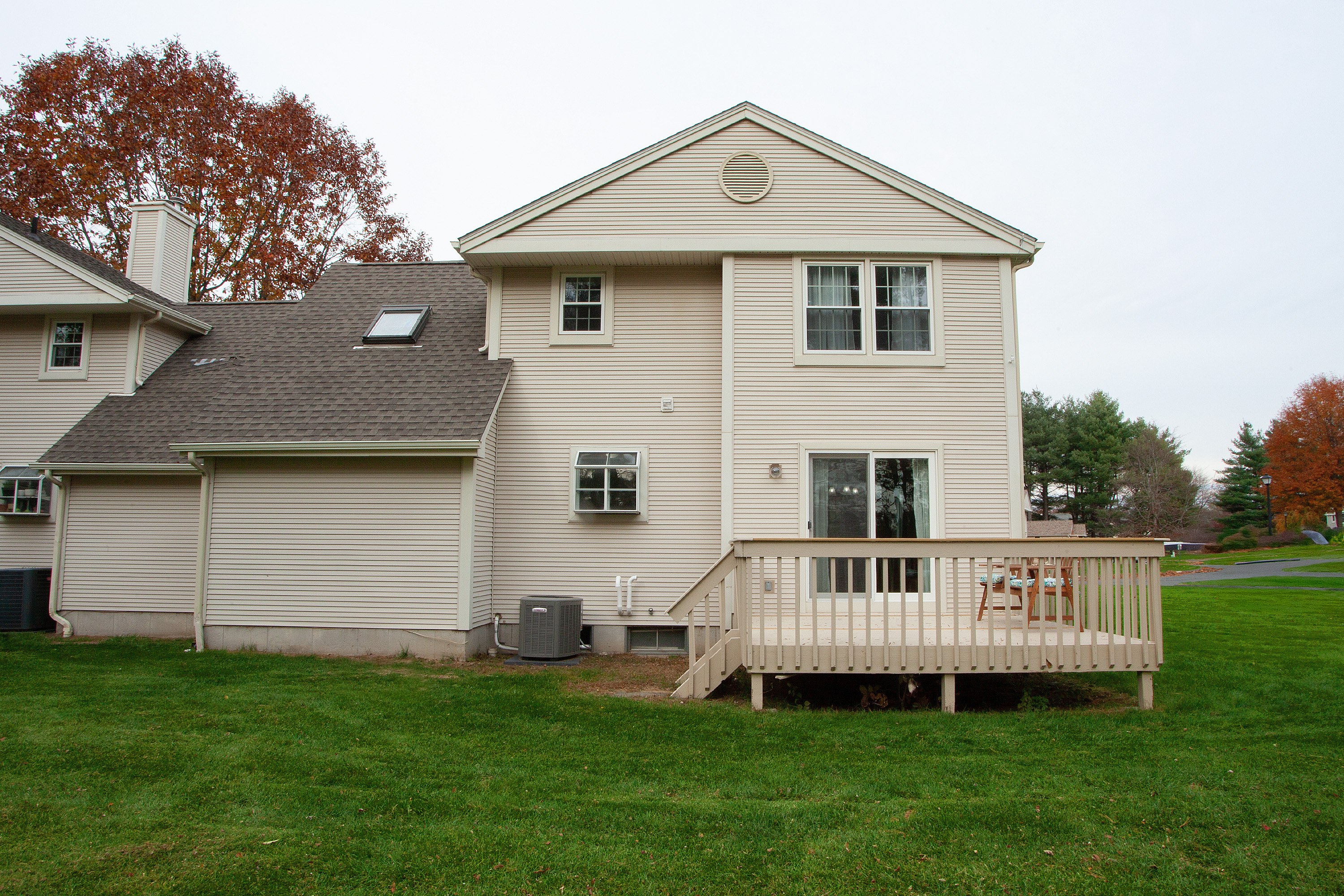 Welcome to this spacious end-unit condo offering over 1,400 square feet of comfortable living space in the desirable MeadowView community. This inviting home features 2 bedrooms, 2.5 baths, and a versatile loft, perfect for a home office or den. The main level has gleaming hardwood floors, a bright living room with a cozy fireplace, and a dining area with sliders leading to a large deck-ideal for relaxing or entertaining. The kitchen opens seamlessly into the main living areas, creating a warm and functional flow. Upstairs, you'll find two generously sized bedrooms, including a primary suite with a private en suite bath, plus the loft space that adds even more flexibility. Additional highlights include a full basement, attached garage, central air, and a new hot water heater (2024). Enjoy the beautifully maintained outdoor spaces, a welcoming covered front porch, and the peace of mind that comes with condo living. There's nothing to do but move in and enjoy everything MeadowView has to offer!
