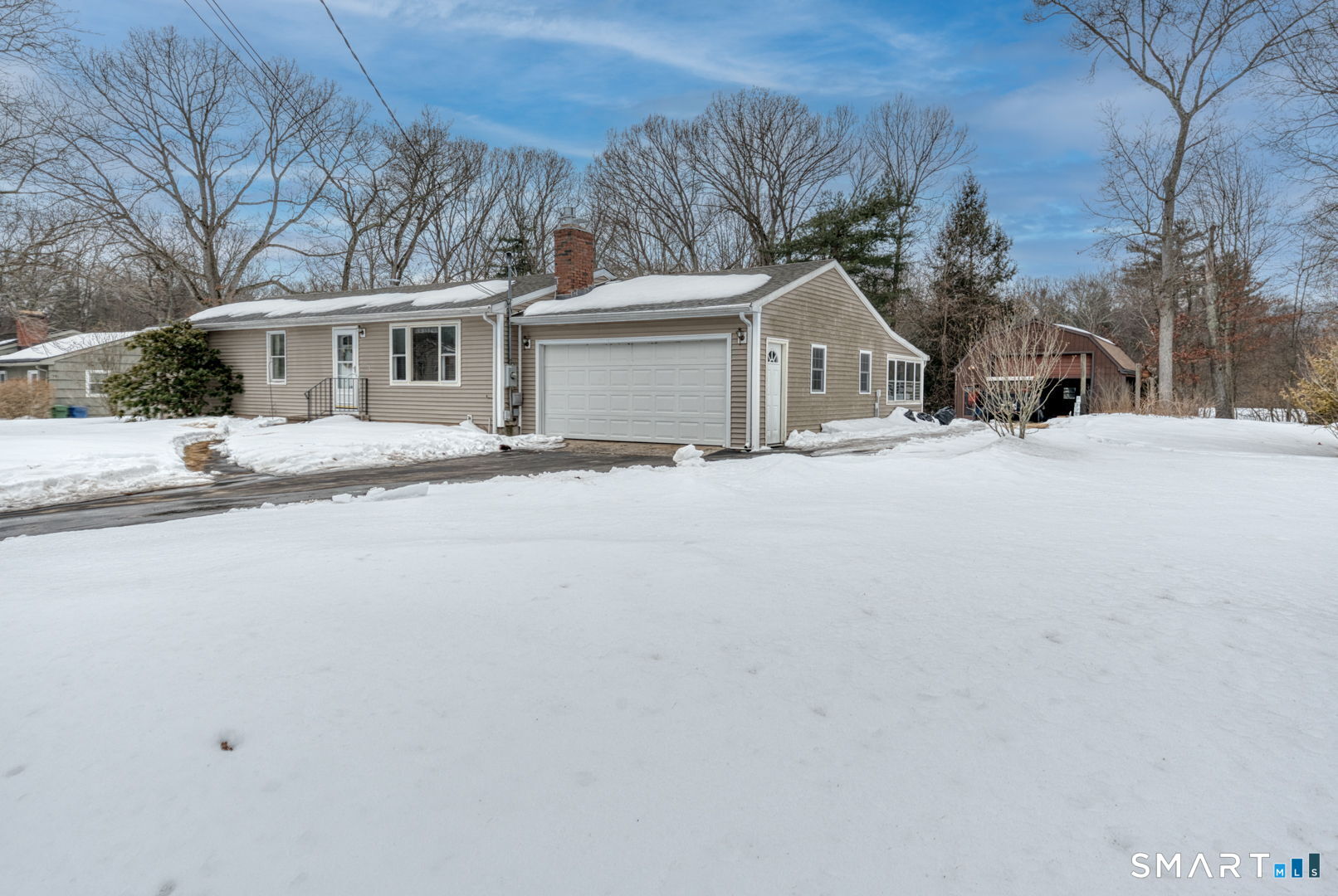 Set on a beautiful level lot with many features. Ranch style home with sunroom and finished lower level. Features: 3 bedrooms, 2 baths, and 2 car garage. Attached sunroom off remodeled kitchen and finished lower level for extra living space. Living room with gas fireplace and wood flooring Oversized barn for the hobby enthusiast sits far back from the home. So many uses for this building. Property is being sold in as is Condition.