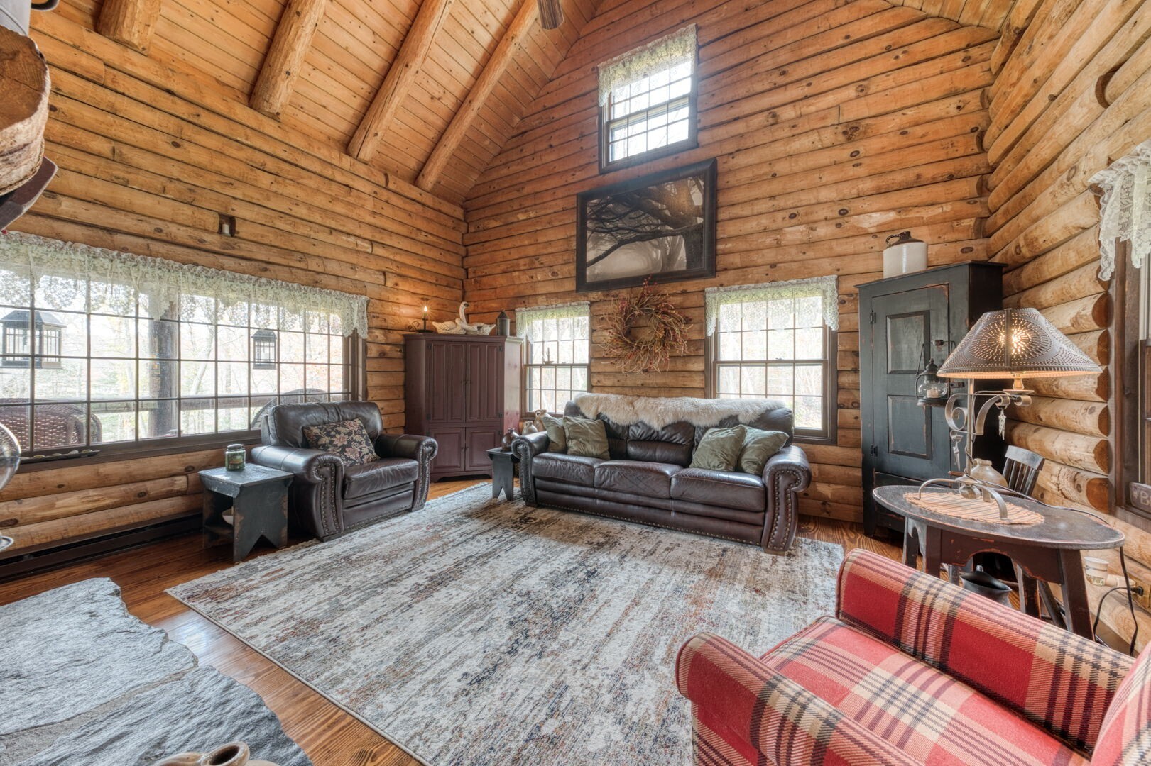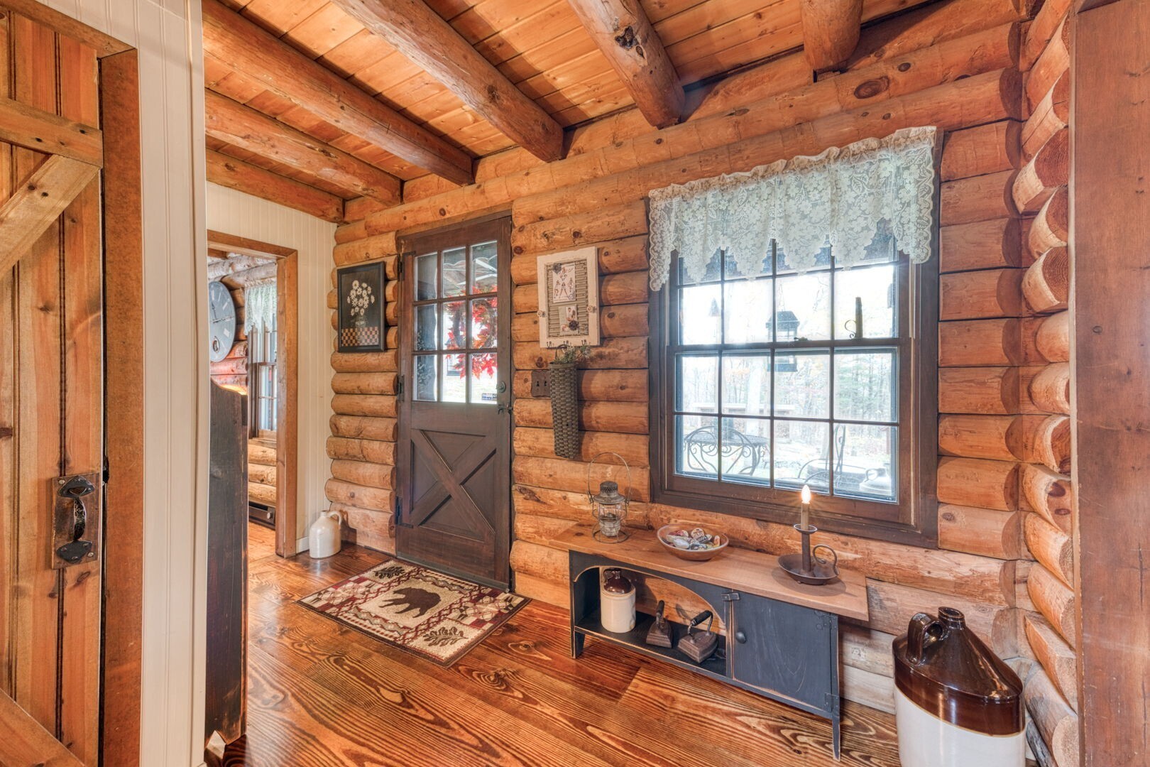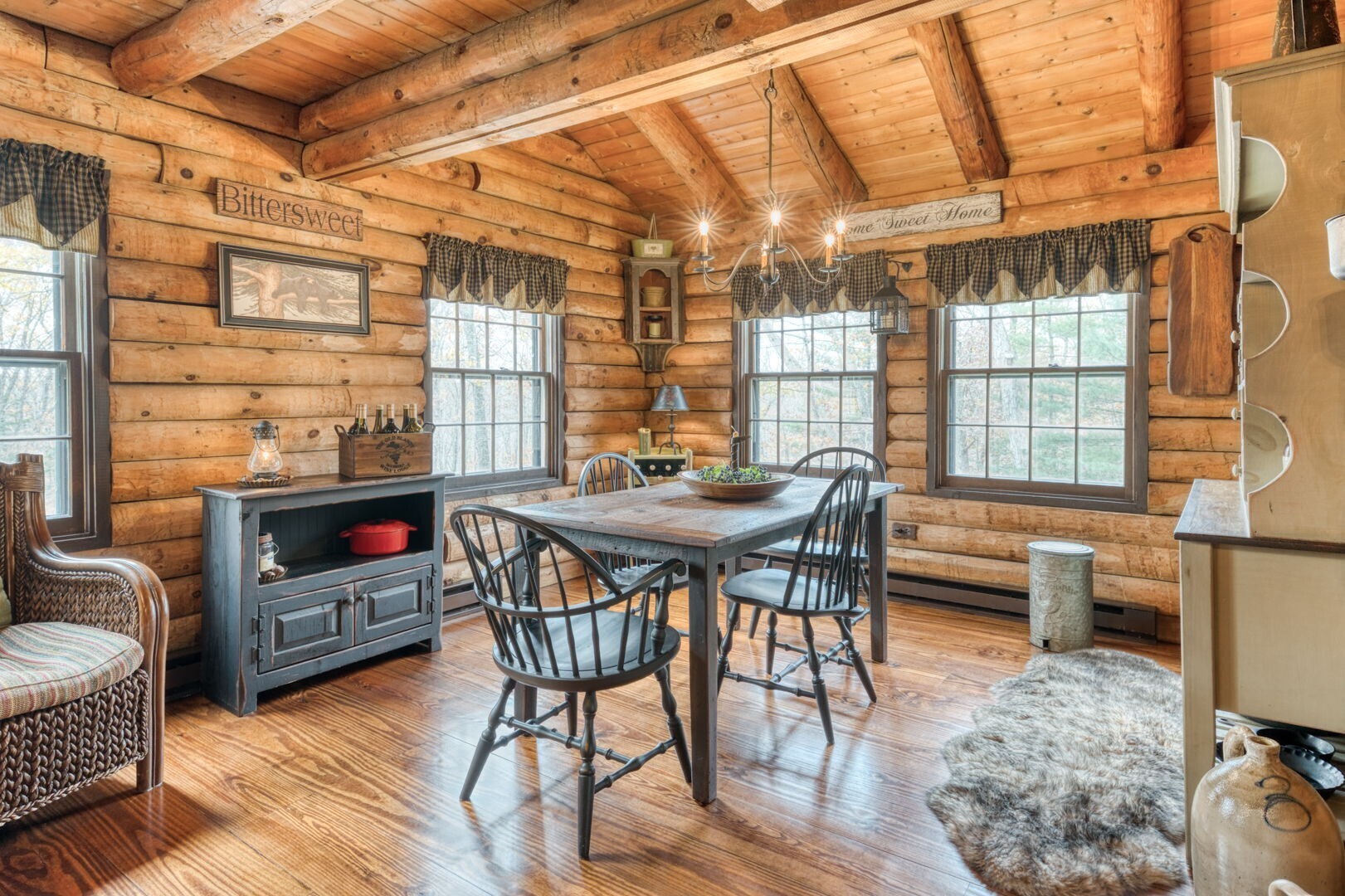 HIGHEST AND BEST BY 10:00 A.M. THURSDAY 11/13. Quintessential Log Home Retreat on Nearly 3 Acres! Welcome to this beautifully updated log home offering timeless charm and modern comfort. Featuring southern yellow pine flooring throughout, a striking center fireplace, and newly renovated bathrooms, this residence blends rustic elegance and custom touches, including hand-made interior railings using wood sourced directly from the property. The kitchen boasts granite countertops, a farmhouse sink, and ample cabinetry. Have your morning coffee by the warm glow of a propane stove, while taking in the natural setting just outside your window. Outside, you will find nearly 3 acres of gardens and beautiful stonewalls, a relaxing hot tub area, and covered porches with ceiling fans-perfect for year-round enjoyment. An adorable shed with a cupola and rooster weathervane adds character and utility. The property offers exceptional privacy and a soothing atmosphere, yet remains conveniently close to Rte 6 and 395. If you are seeking a peaceful escape, an ideal work- from- home spot or a place to launch all your outdoor recreational and gardening dreams, this home delivers tranquility, style, and convenience in one perfect package.