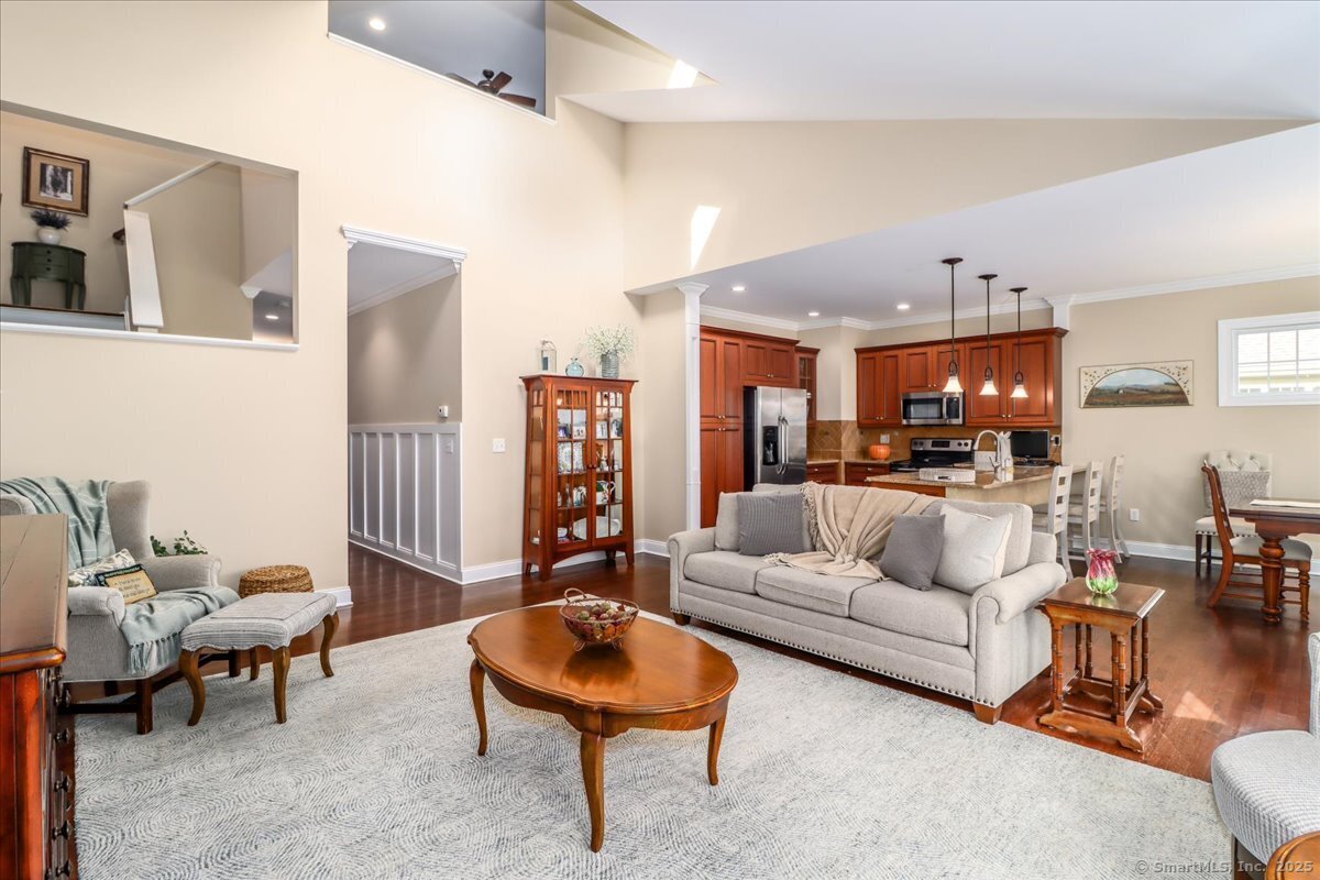 Welcome to 184 Kyles Way - a beautifully maintained & immaculate townhouse offering comfort, style and convenience in one of Shelton's most desirable communities - Crescent Village! This spacious 2-bedroom townhome spans over 2,100 square feet and features an open and inviting layout - perfect for both everyday living and entertaining. The main level includes a bright living area with a dramatic vaulted ceiling & water views, as well as a walkout to a private deck. A well-appointed kitchen includes ss appliances, custom cabinetry with tons of pullout storage plus recessed & pendant lighting. Of course there's a perfectly convenient main-level primary suite with full bath and 2 walk in closets, ideal for guests or first-floor living. Off the foyer the half bath, laundry and glass paned barn door to the lower level rounds off this floor. Upstairs, you'll find a 2nd primary suite with a private bath, walk-in closet and versatile loft area that can serve as a home office or den. The lower level adds even more flexibility with a huge finished family room complete with a half bath and walkout to an outdoor patio. With 2 full and 2 half baths, an attached 2 car garage, and a peaceful setting, this home truly has it all. Enjoy low-maintenance living with close proximity to shopping, dining, and major highways. MULTIPLE OFFERS HAVE BEEN RECEIVED. HIGHEST AND BEST DUE MONDAY 11/9/25 AT 5PM