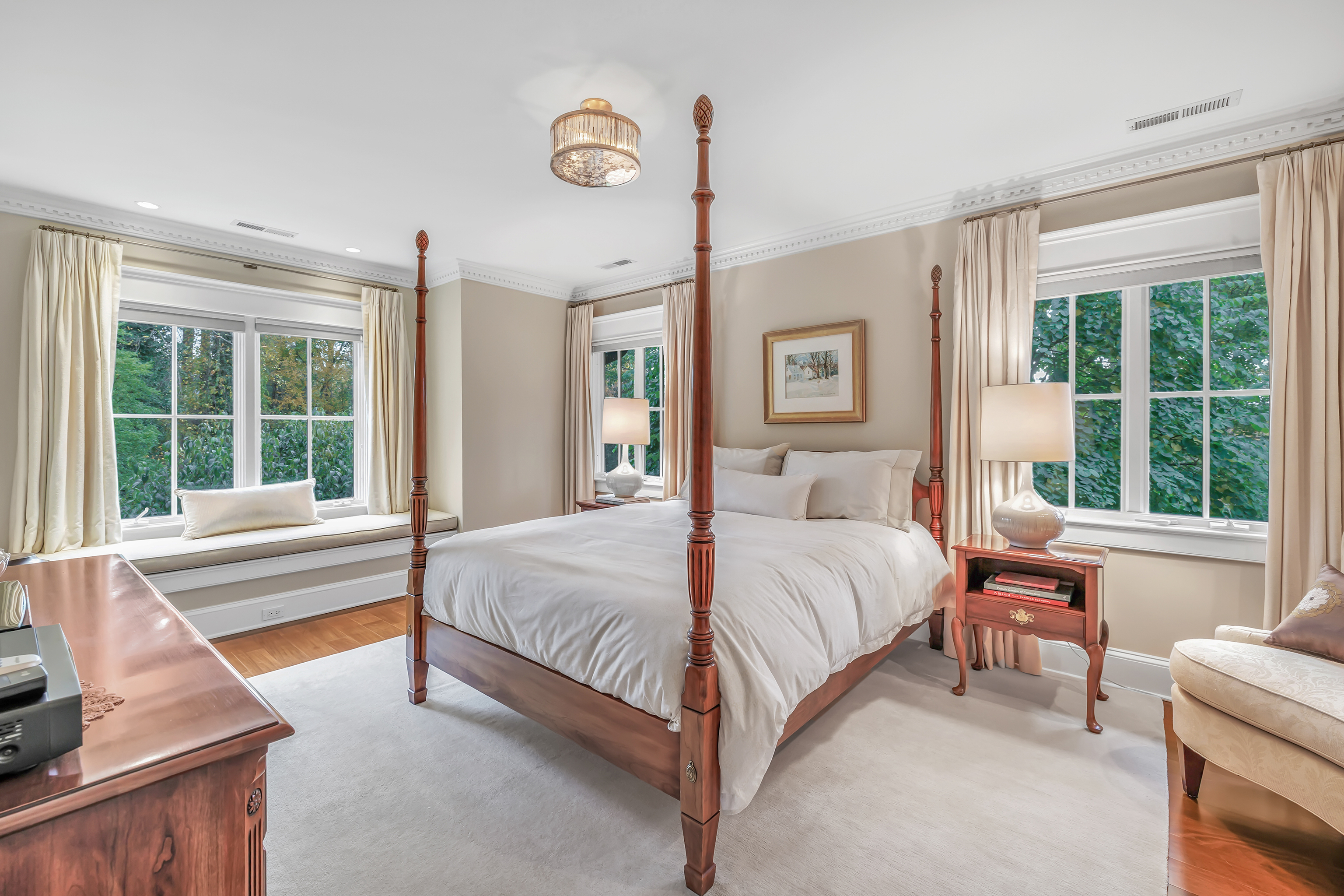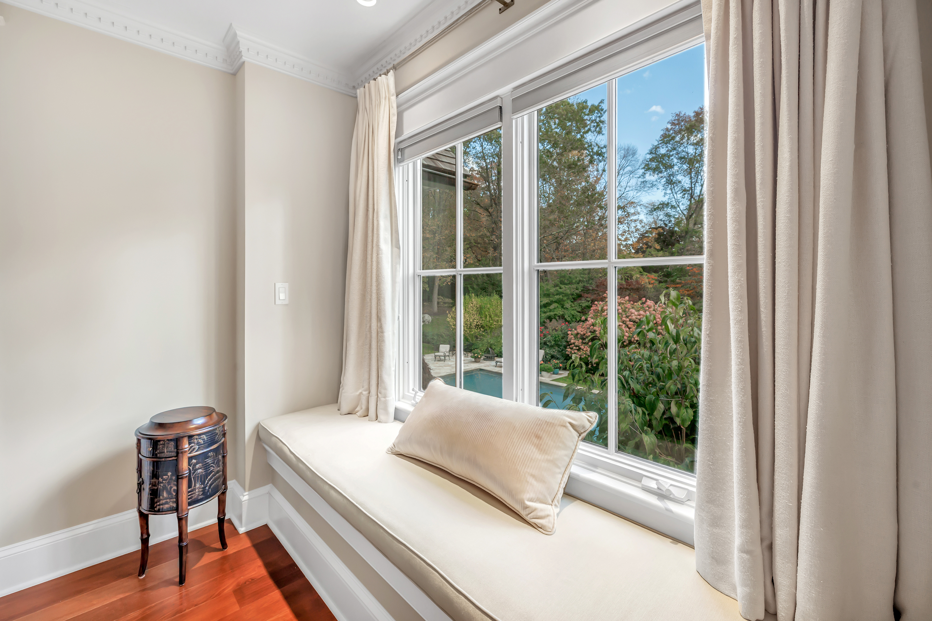 Tucked away on a picturesque property with a peaceful pond and complete privacy, this custom-built home is truly exceptional. From the moment you step onto the welcoming front porch, you'll feel the warmth and quality throughout. The sunlit kitchen is beautifully appointed with top-of-the-line appliances and a built-in banquette by the cozy fireplace, opening seamlessly to the inviting family room with a stunning fireplace & French doors to the patio. Entertain effortlessly in the elegant dining room w/ butler's pantry & spacious living room. A first-floor office w/ pocket doors offers a quiet retreat for work or study. Upstairs, the primary suite is a sanctuary w/ vaulted ceilings, a private sitting room, balcony overlooking the pond, and a luxurious spa-like bath. Three additional bedrooms, two full baths, & a bright laundry room complete the second floor. A private three-room suite off a separate entrance - including a family area, bedroom, full bath, and loft - provides perfect flexibility for guests, in-laws, or family members. The lower level offers a gym, full bath & sauna for healthy living. Outside, enjoy a resort-like lifestyle with a stunning 50-foot pool w/auto cover, mature landscaping, and breathtaking gardens. Set on 2.69 beautifully landscaped acres in a premier multi-million-dollar neighborhood convenient to everything beautiful Westport offers. This special home presents the perfect blend of elegance, comfort, quality & natural beauty - a true masterpiece.