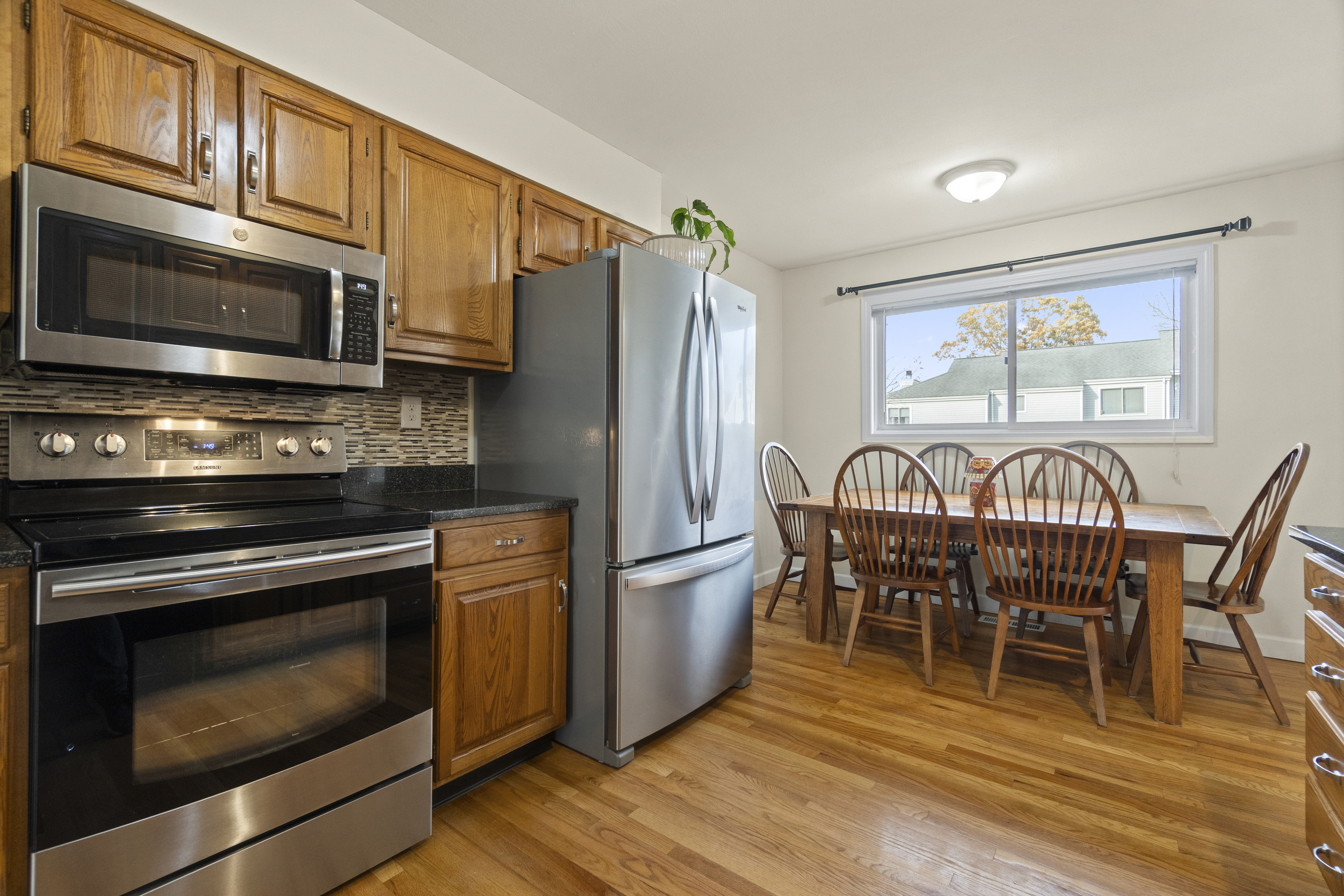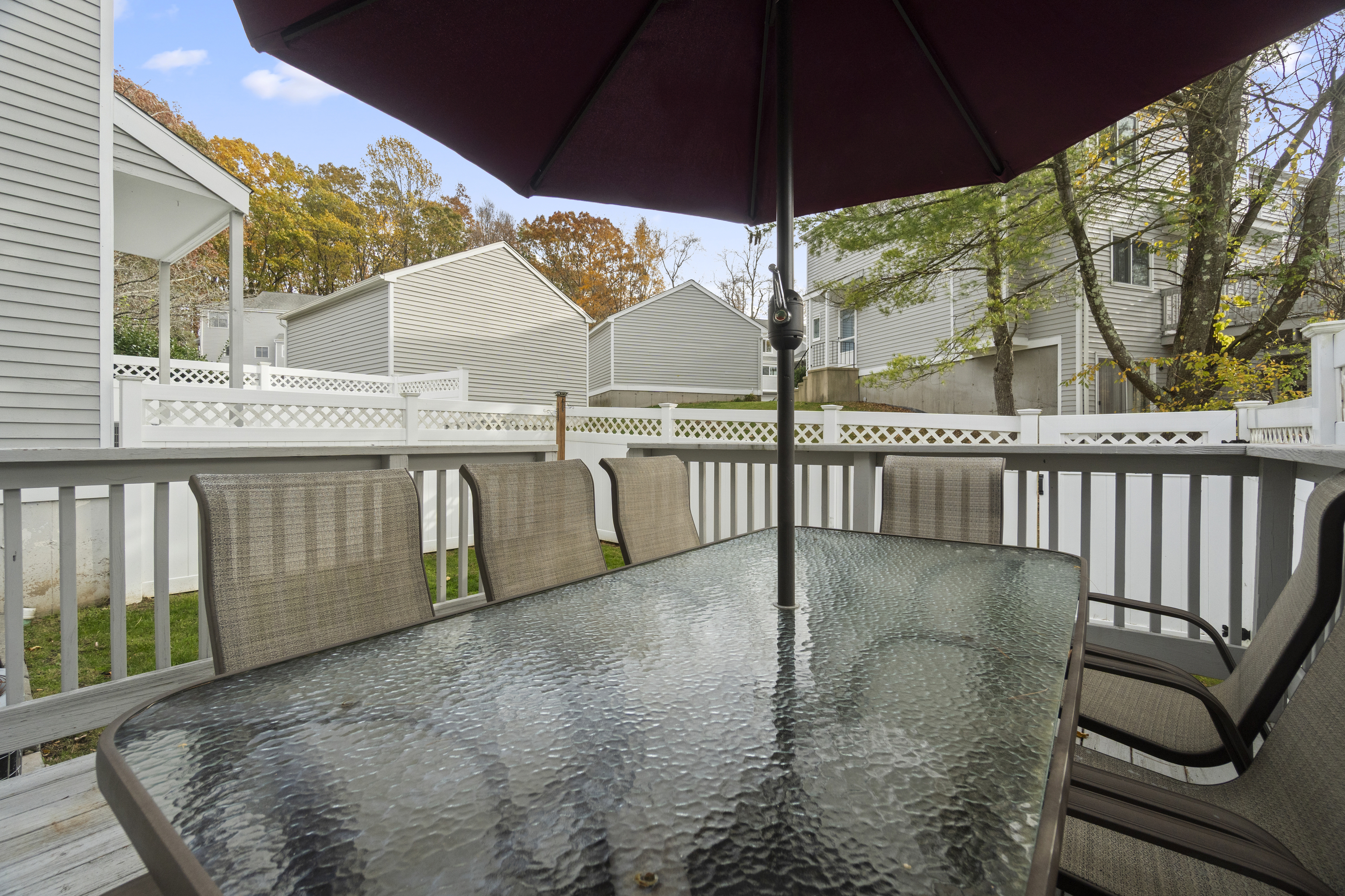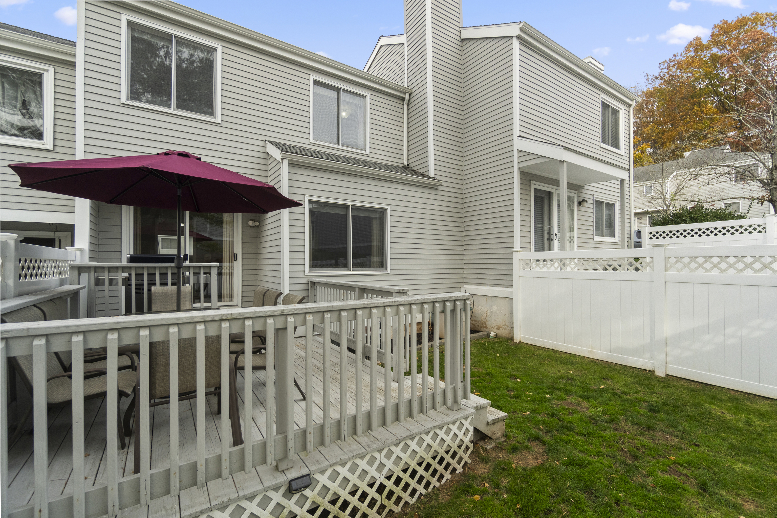 Final & Best due Thursday, November 13th at 10:00 AM. Welcome home to this beautifully updated townhouse where comfort, design, and functionality meet in perfect harmony. Step inside to a welcoming foyer with the laundry room to your left and an inviting eat-in kitchen just beyond-bright, modern, and thoughtfully renovated with quartz countertops, stainless steel appliances, and space to enjoy your morning coffee in the sunlight. Continue into the open living and dining area, where hardwood floors gleam and light pours through sliding glass doors to a private two-tiered deck leading into a fenced-in backyard with 6-foot vinyl fencing and a gate to the common green space-ideal for entertaining or relaxing outdoors. A half bath and coat closet complete the main level. Downstairs, the finished lower level offers endless flexibility-a personal gym, playroom, second living area, or even a fourth bedroom-with additional storage and temporary exterior wall-to-wall shelving. Upstairs, you'll find a serene primary suite with three closets and a custom en-suite featuring double vanities and a floor-to-ceiling tiled shower. Two additional generously sized bedrooms and another full bath and linen closet complete the upper level. Central air, gas heat, tankless hot water, detached garage, and a community pool and clubhouse complete the picture. Final & Best due Thursday, November 13th at 10:00 AM.