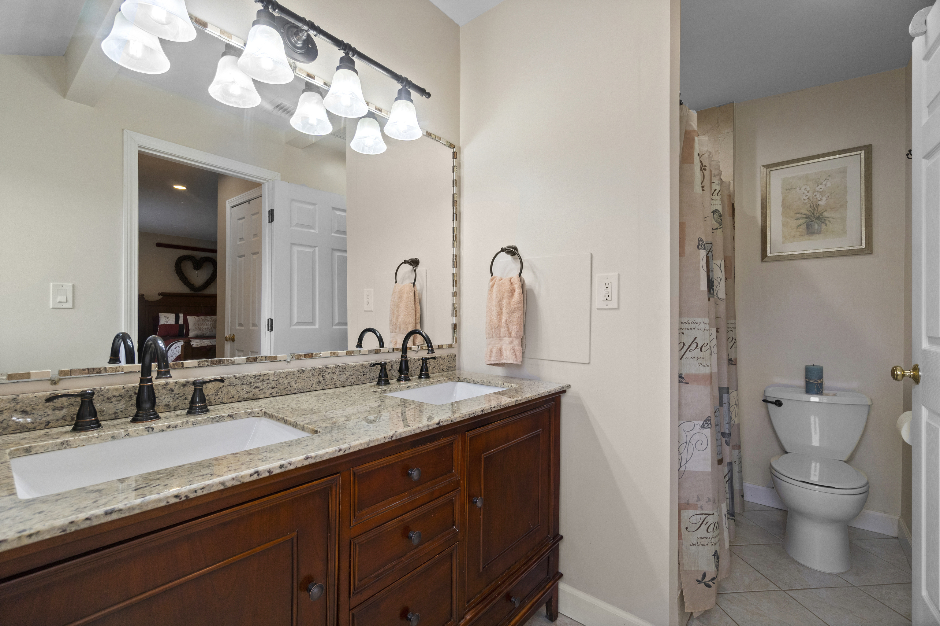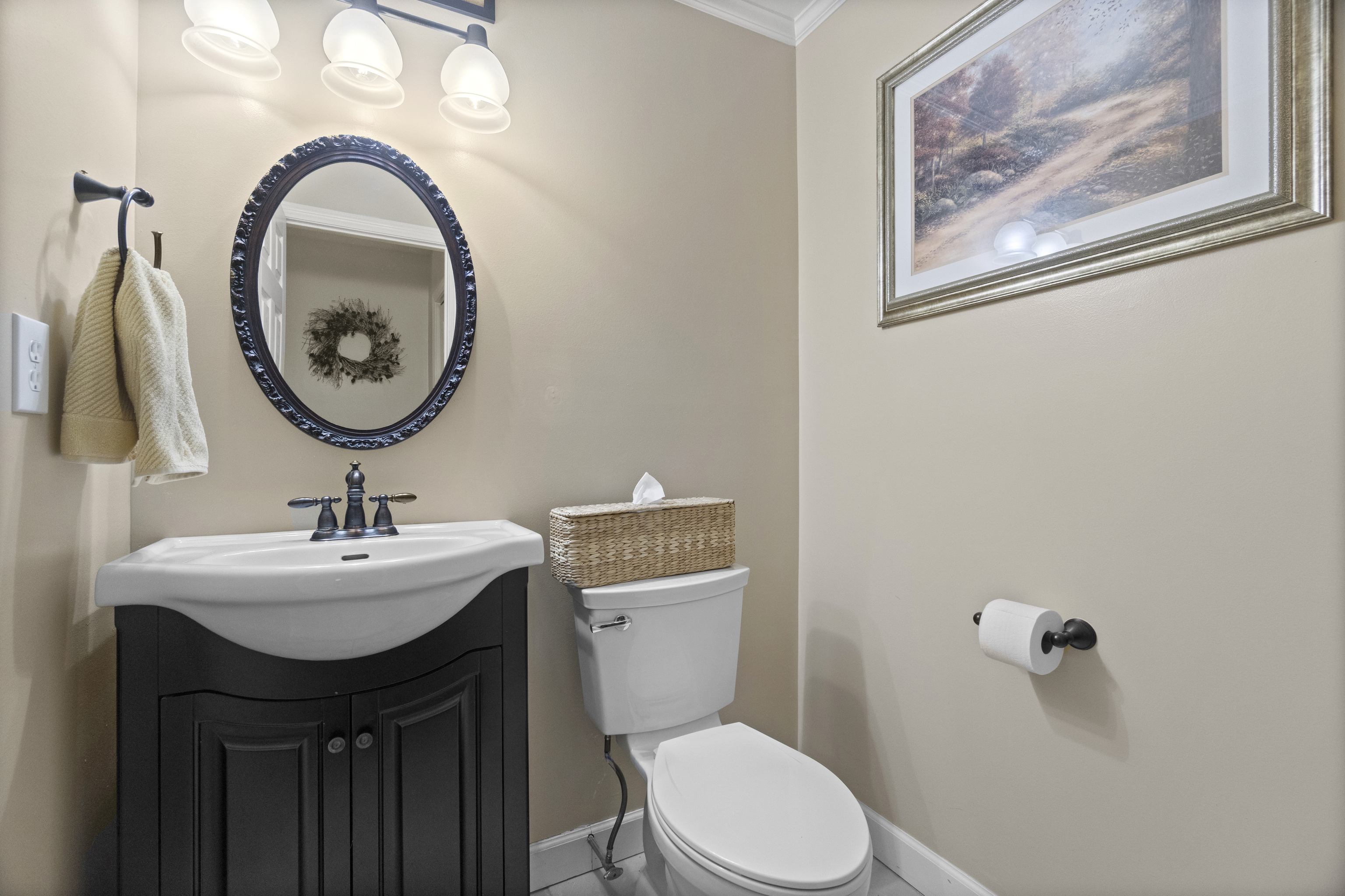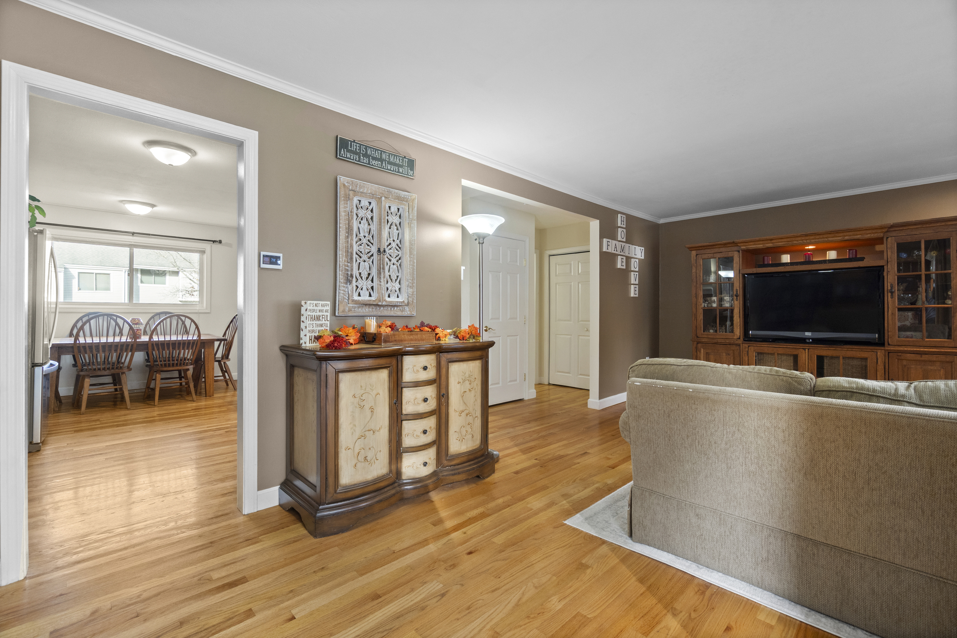 Final & Best due Thursday, November 13th at 10:00 AM. Welcome home to this beautifully updated townhouse where comfort, design, and functionality meet in perfect harmony. Step inside to a welcoming foyer with the laundry room to your left and an inviting eat-in kitchen just beyond-bright, modern, and thoughtfully renovated with quartz countertops, stainless steel appliances, and space to enjoy your morning coffee in the sunlight. Continue into the open living and dining area, where hardwood floors gleam and light pours through sliding glass doors to a private two-tiered deck leading into a fenced-in backyard with 6-foot vinyl fencing and a gate to the common green space-ideal for entertaining or relaxing outdoors. A half bath and coat closet complete the main level. Downstairs, the finished lower level offers endless flexibility-a personal gym, playroom, second living area, or even a fourth bedroom-with additional storage and temporary exterior wall-to-wall shelving. Upstairs, you'll find a serene primary suite with three closets and a custom en-suite featuring double vanities and a floor-to-ceiling tiled shower. Two additional generously sized bedrooms and another full bath and linen closet complete the upper level. Central air, gas heat, tankless hot water, detached garage, and a community pool and clubhouse complete the picture. Final & Best due Thursday, November 13th at 10:00 AM.