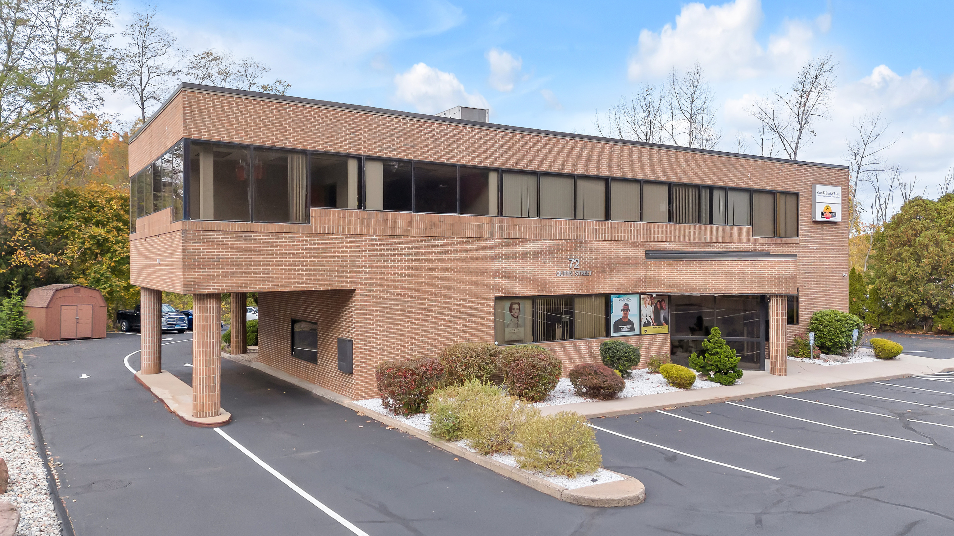Exceptional opportunity to lease 1,944 SF of professional office space at 72 Queen Street, Southington's premier commercial corridor. Offered at $14/SF NNN, this second-floor suite is highly efficient, with a move-in-ready layout perfect for a variety of professional uses. The space is fully accessible via elevator and features a functional design that includes four (4) private offices, a dedicated conference room, and a large, open area ideal for cubicles or a collaborative workspace. Tenants benefit from well-maintained common areas, including a shared breakroom with a kitchenette and three restrooms, one of which is uniquely equipped with a shower. There is ample on-site parking with 49 spaces, ensuring convenient access for employees and clients. Its unbeatable location on Route 10 offers outstanding visibility and is less than a minute from I-84, placing it at the very heart of central Connecticut's bustling retail and business hub.