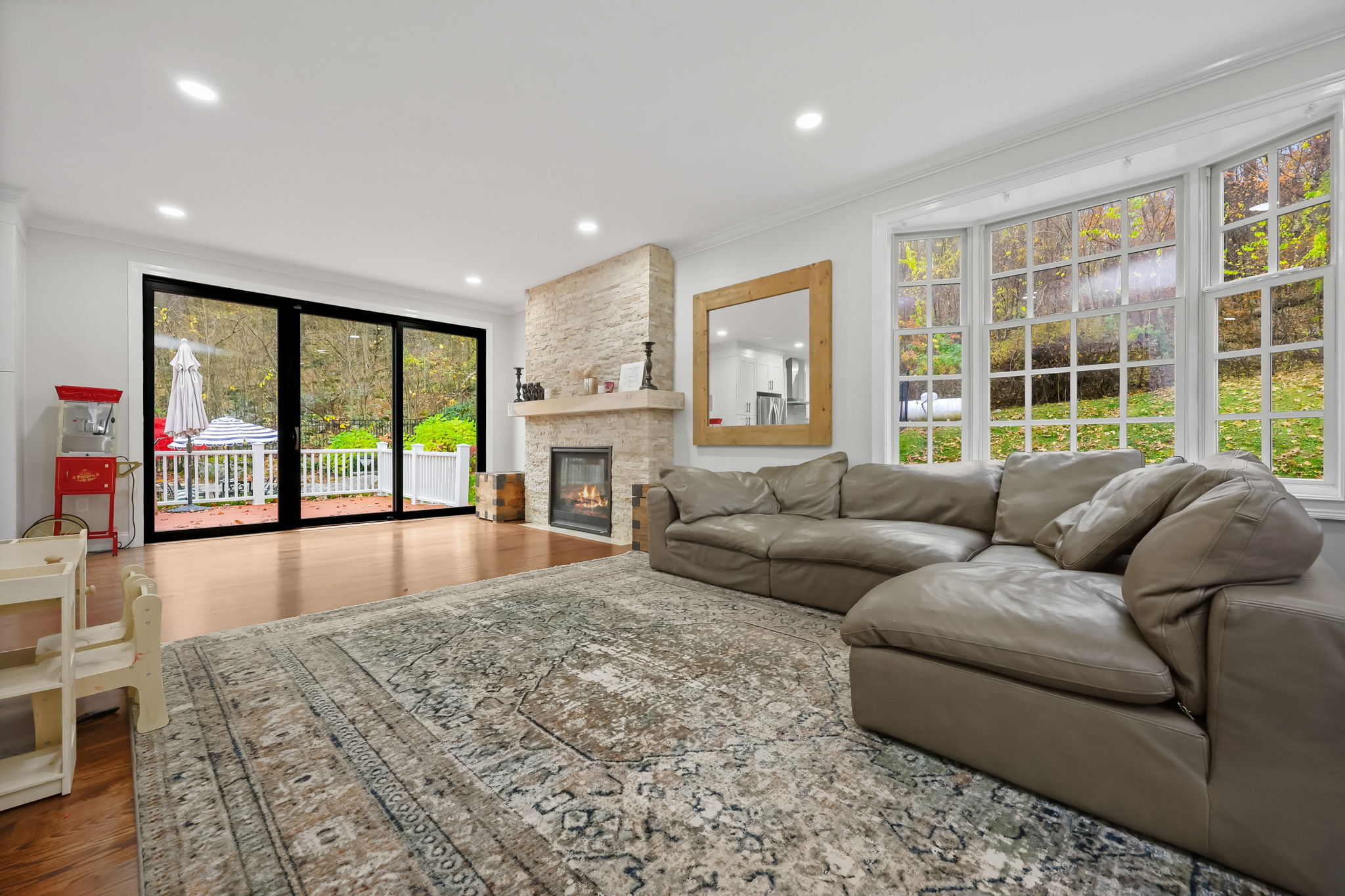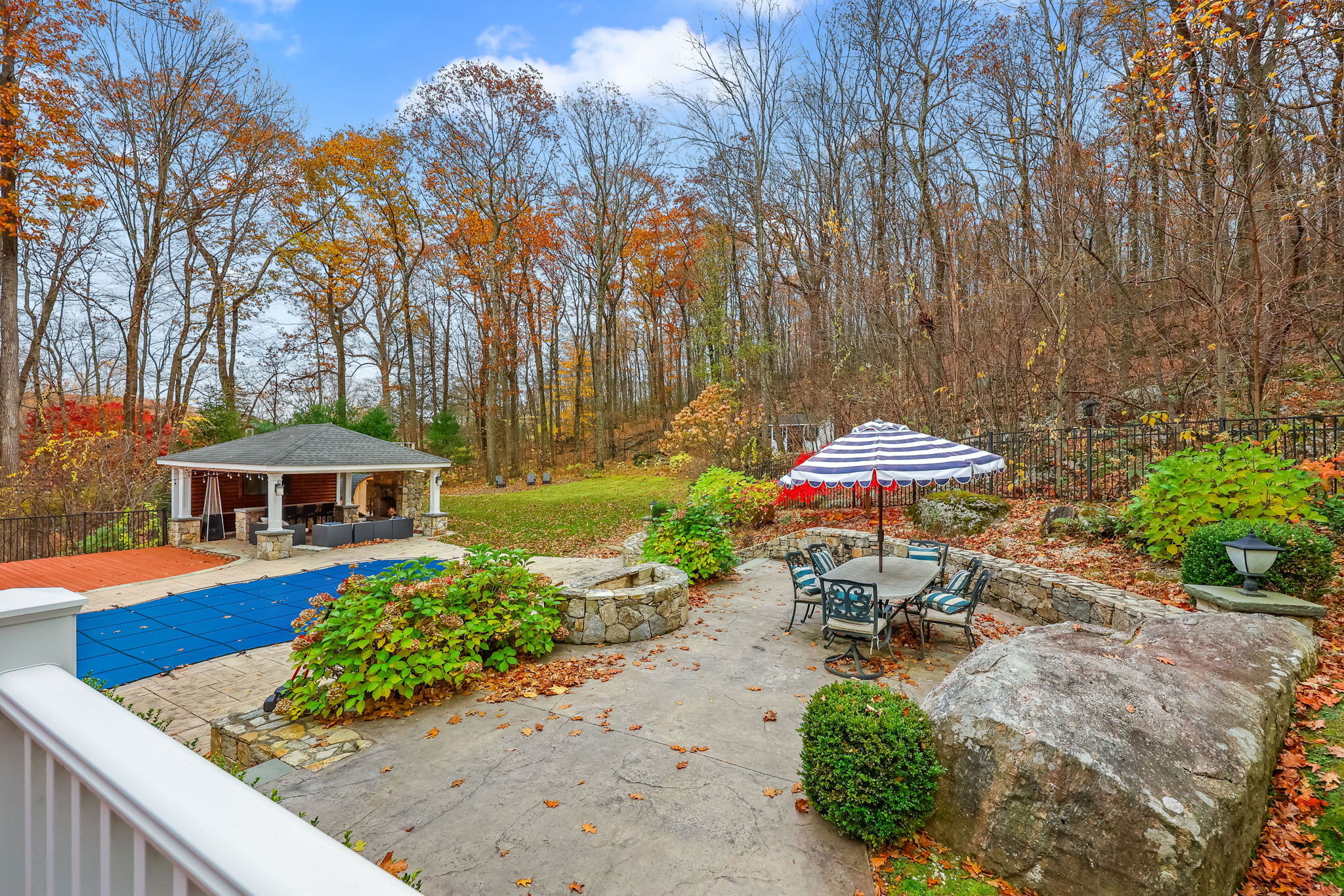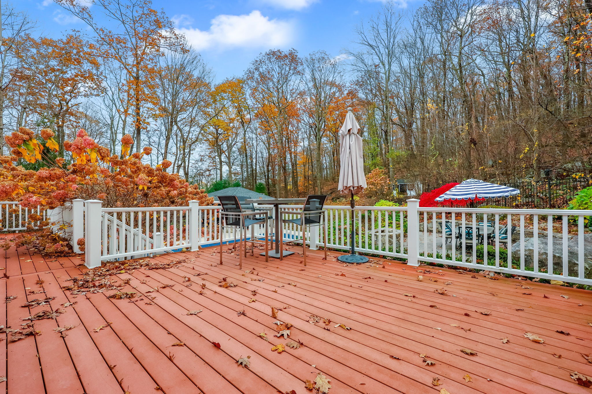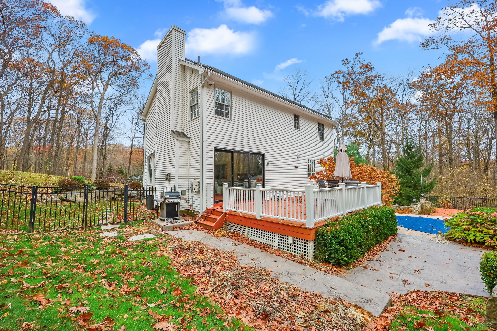 Stunning Renovated Colonial Retreat with Heated Pool & Cabana! Welcome to 3 Alexandra Drive, a beautifully renovated white Colonial tucked away on a private lot in one of New Fairfield's most desirable neighborhoods. This home perfectly blends classic charm with modern luxury, offering all the amenities you've been dreaming of! Step inside to a bright, inviting interior featuring a sophisticated color palette and thoughtful updates throughout. The renovated kitchen boasts stainless steel appliances, a center island with seating, and opens seamlessly to the family room with a cozy gas fireplace and an 8' slider leading to the expansive back deck-ideal for indoor-outdoor living. The dining room with French doors provides the perfect setting for formal gatherings, while the mudroom entry includes laundry and a convenient powder room. Upstairs, the primary suite impresses with two walk-in closets and a stunning spa-like bathroom. Two additional spacious bedrooms and a stylish full bath complete the upper level. The finished lower level offers a versatile den/rec room with a custom dry bar and built-ins. Step outside to your private backyard oasis designed for entertaining: an expansive deck and patio area, heated pool, outdoor cabana with fireplace and TV, and a luxurious outdoor sauna. This property truly has it all-comfort, style, and resort-like living right at home. Additional features include a 2-car garage, professional landscaping, all while being close for commuting.