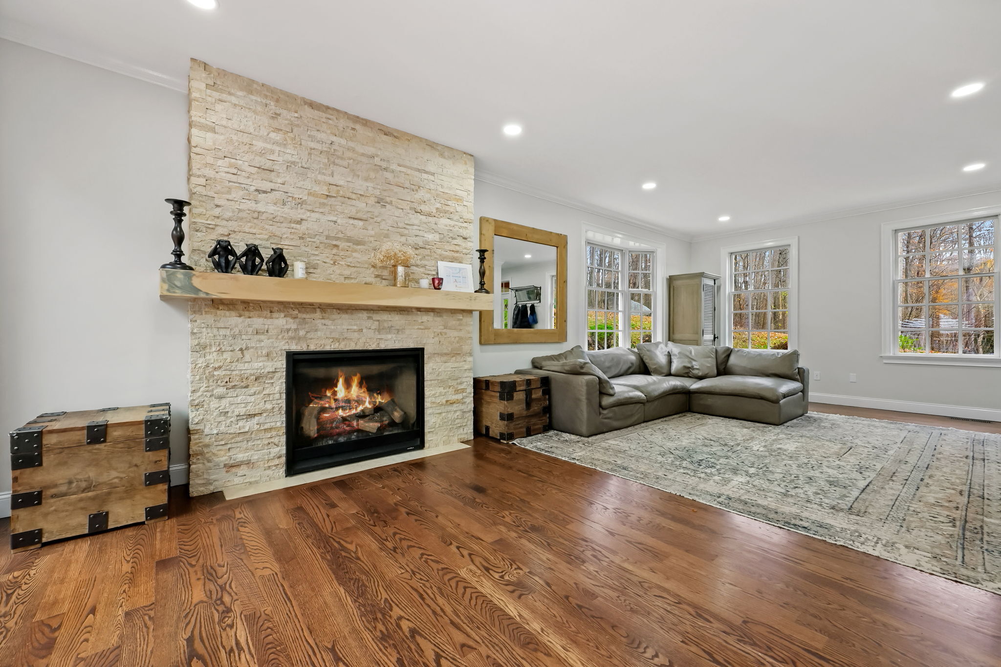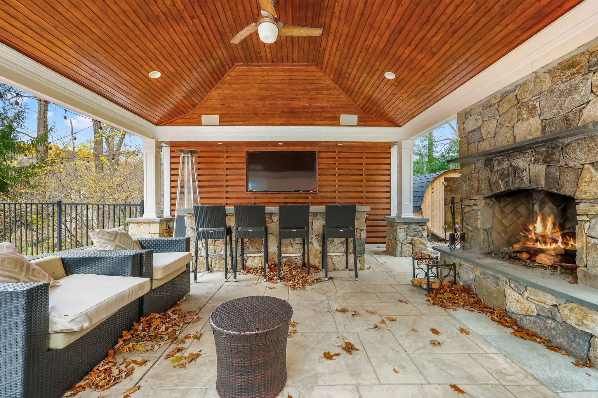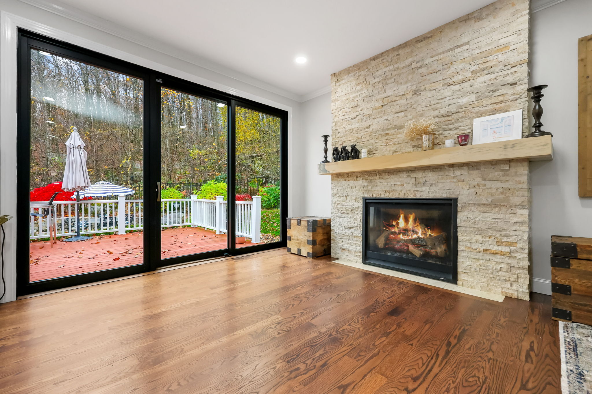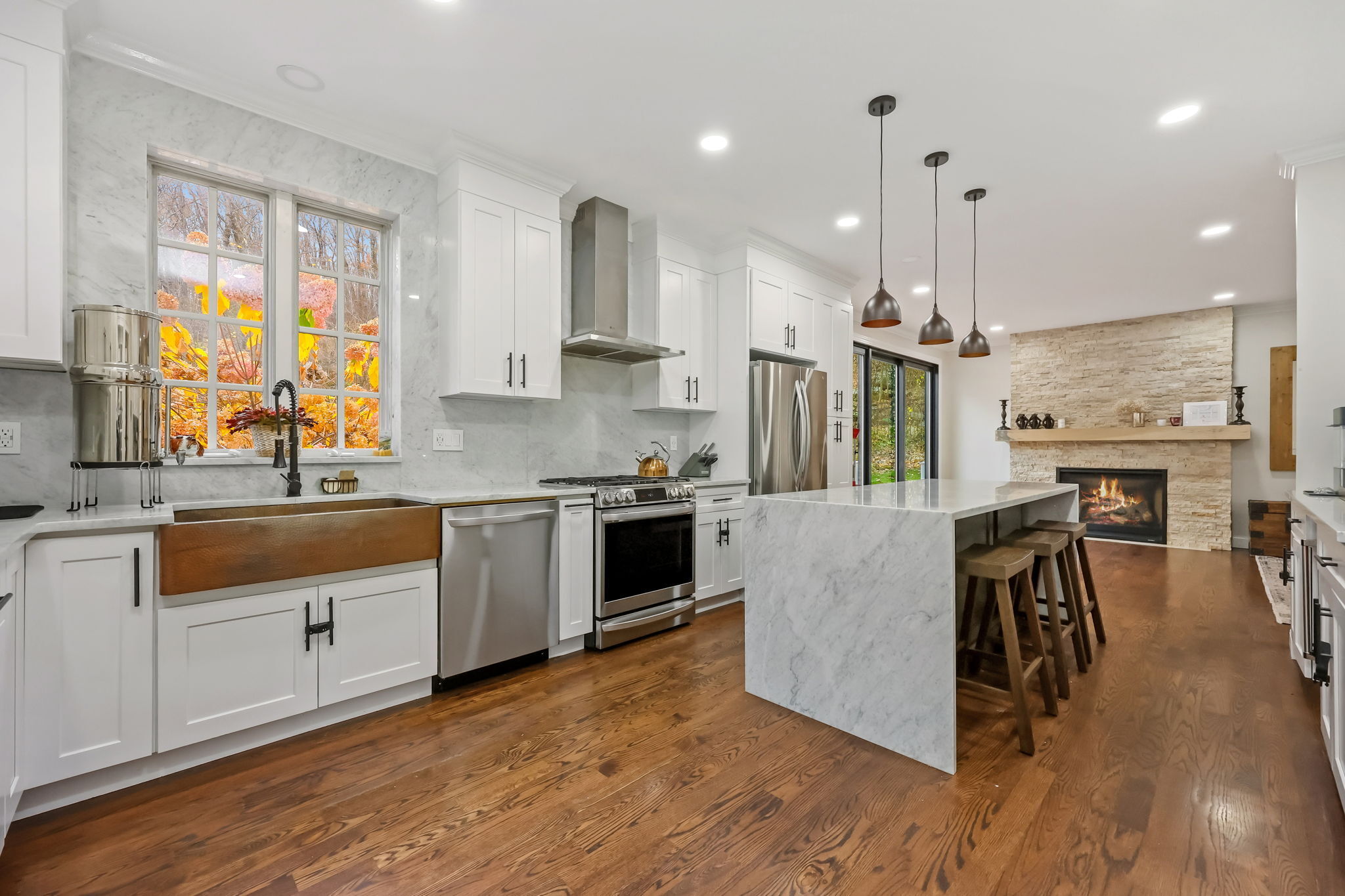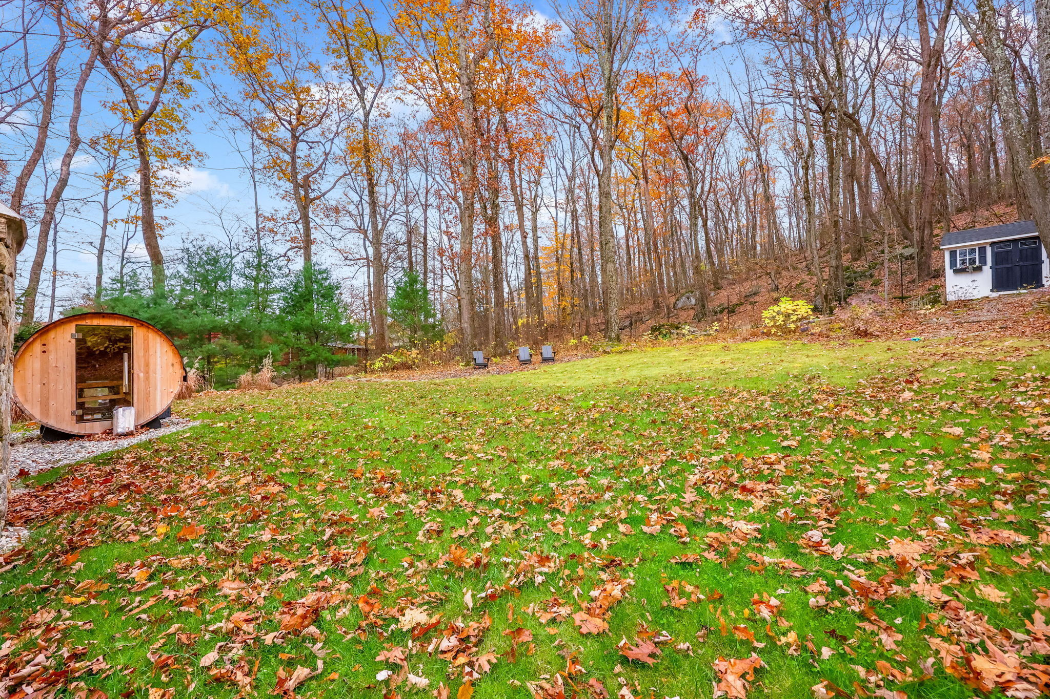 Stunning Renovated Colonial Retreat with Heated Pool & Cabana! Welcome to 3 Alexandra Drive, a beautifully renovated white Colonial tucked away on a private lot in one of New Fairfield's most desirable neighborhoods. This home perfectly blends classic charm with modern luxury, offering all the amenities you've been dreaming of! Step inside to a bright, inviting interior featuring a sophisticated color palette and thoughtful updates throughout. The renovated kitchen boasts stainless steel appliances, a center island with seating, and opens seamlessly to the family room with a cozy gas fireplace and an 8' slider leading to the expansive back deck-ideal for indoor-outdoor living. The dining room with French doors provides the perfect setting for formal gatherings, while the mudroom entry includes laundry and a convenient powder room. Upstairs, the primary suite impresses with two walk-in closets and a stunning spa-like bathroom. Two additional spacious bedrooms and a stylish full bath complete the upper level. The finished lower level offers a versatile den/rec room with a custom dry bar and built-ins. Step outside to your private backyard oasis designed for entertaining: an expansive deck and patio area, heated pool, outdoor cabana with fireplace and TV, and a luxurious outdoor sauna. This property truly has it all-comfort, style, and resort-like living right at home. Additional features include a 2-car garage, professional landscaping, all while being close for commuting.