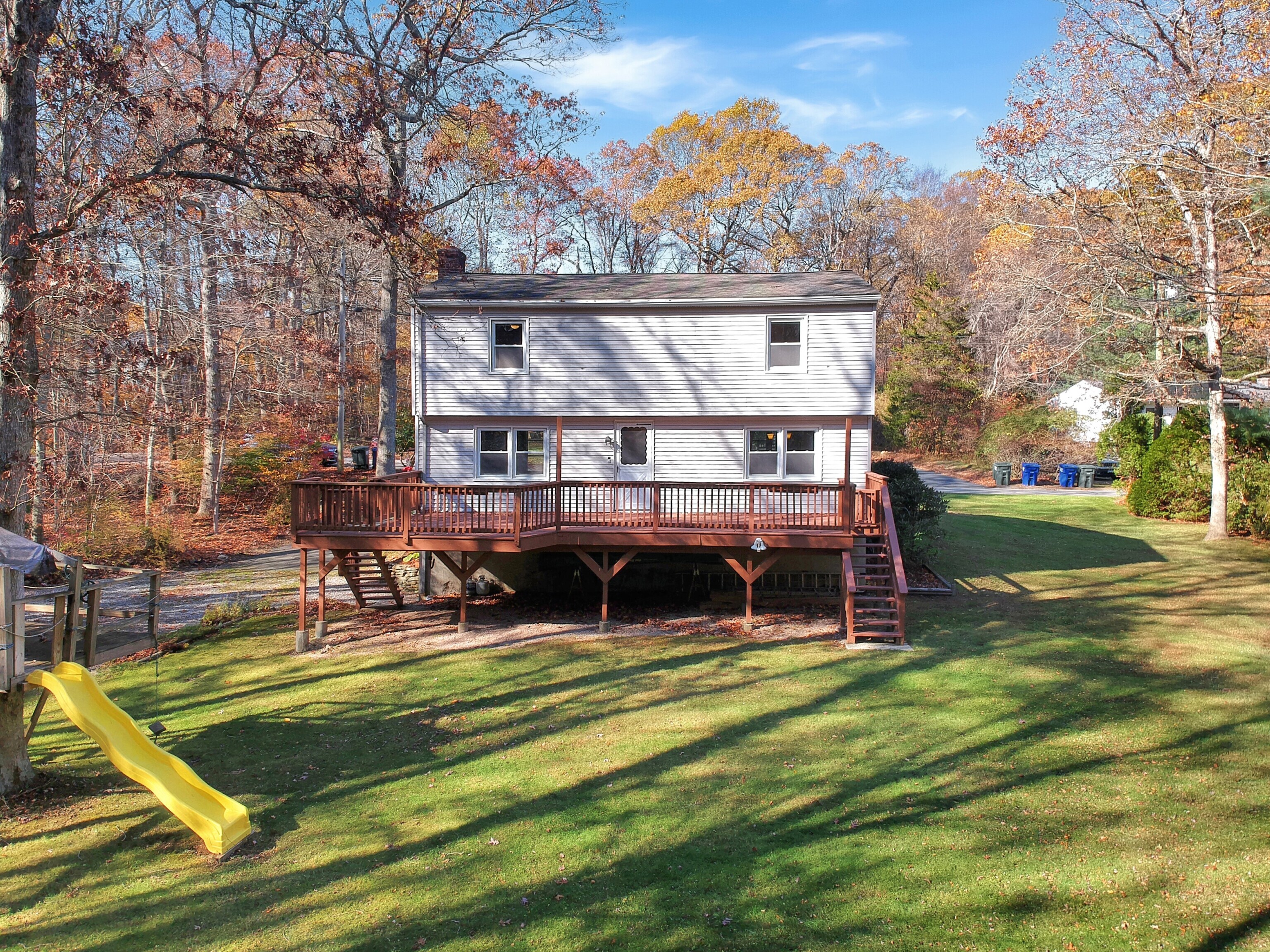 Take a 3D Tour or Enjoy a Video Walkthrough 24/7! Welcome to this 1,700 SF 4 Bedroom 1.5 Bath Colonial at the end of a low traffic cul-de-sac in the Ledyard Center area, close to the library, shopping, and quick routes to I-95 or I-395. The maintenance-free exterior and 1-car under garage make ownership easy. Inside, you will find hardwood flooring in the front-to-back Living Room with a wood-burning fireplace, and in all 4 Bedrooms. The Kitchen has great cabinet space and opens to the Dining area, which overlooks the private level backyard and large deck, ideal for outdoor entertaining. The upper level offers 4 Bedrooms and a spacious full Bath with double sinks and a skylight that brings in natural light. The unfinished walkout basement provides expansion or storage options and connects to the garage. The home is heated by an oil-fired baseboard hot water system and is served by a private well and septic system. Located at 19 Center Dr, Ledyard. NEXT STEPS: Schedule your private showing today!