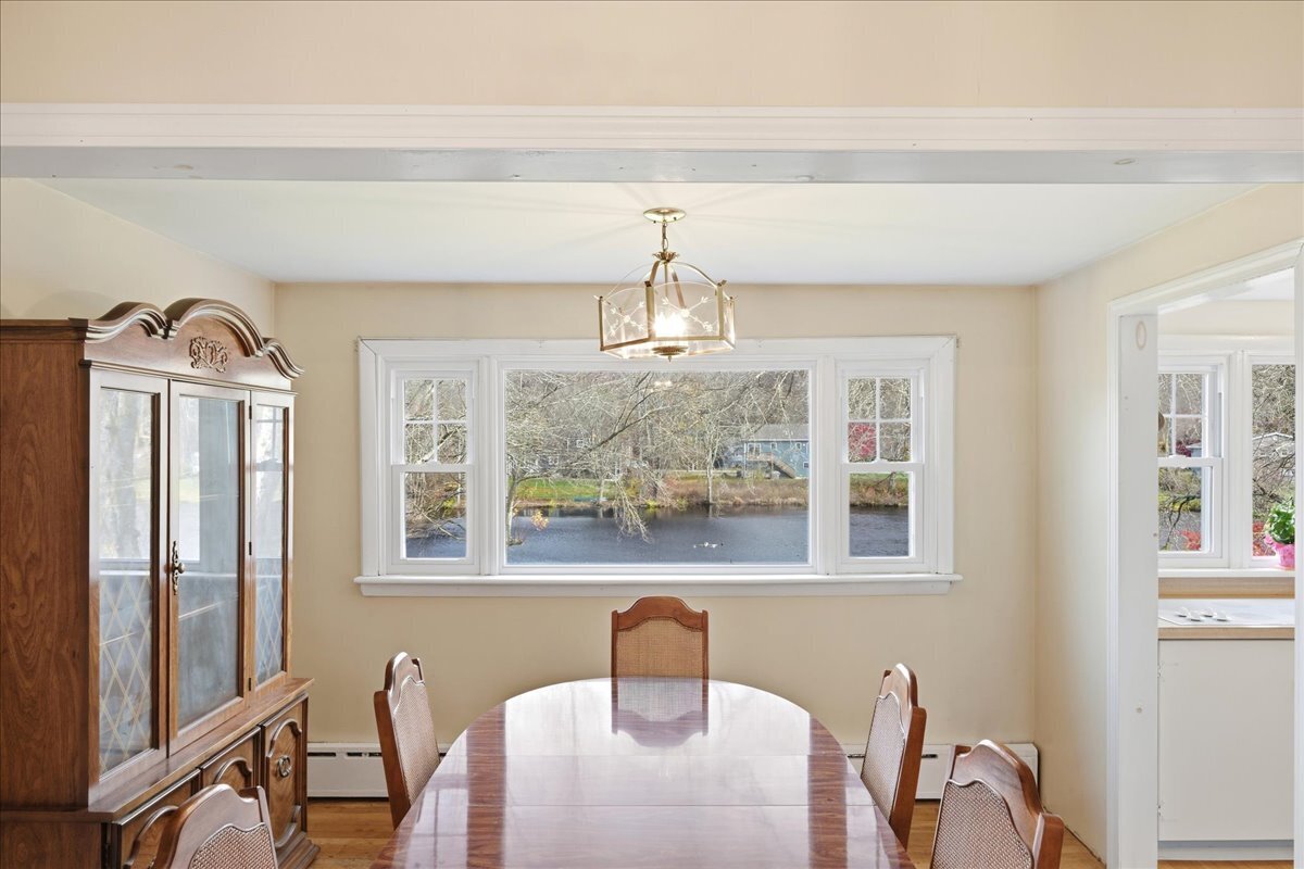 WOW! Are you looking for a charming home in a peaceful location? Imagine waking up every day to beautiful water views from this lovely 4-bedroom, 2-bath Cape on the quiet border of Smith Pond. Nestled on a serene dead-end road, this home offers both tranquility and convenience-just minutes from the submarine base, major highways, and shopping. Inside, you'll discover spacious rooms with beautiful hardwood flooring and a warm, welcoming layout. The first-floor primary bedroom plus three additional bedrooms provide plenty of space for your family or guests. The partially finished lower level is perfect for a recreation room, home gym, or hobby space-whatever suits your lifestyle. And for outdoor fun, grab a little kayak or johnboat and toodle around on the pond, or watch the geese cruise by from the inviting three-season room-ideal for relaxing evenings or entertaining friends. Plus, the attached garage provides extra storage and ease of living. This home is being sold as-is, offering you a fantastic opportunity to personalize and make it your own. Waterfront living, flexible space, and a prime location-all in one-this could be the perfect place for you. Don't miss out on this opportunity-your new home could be right here!