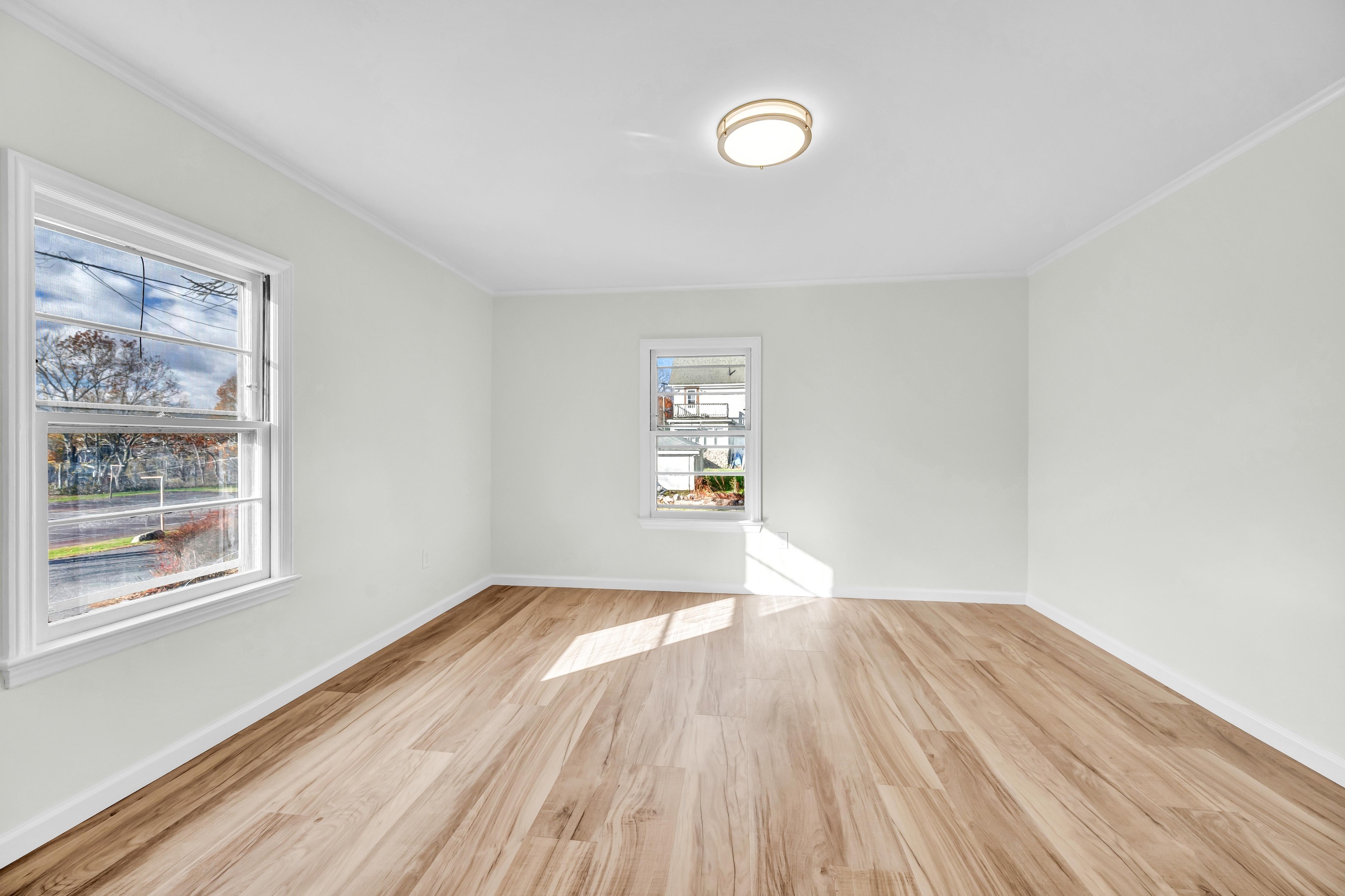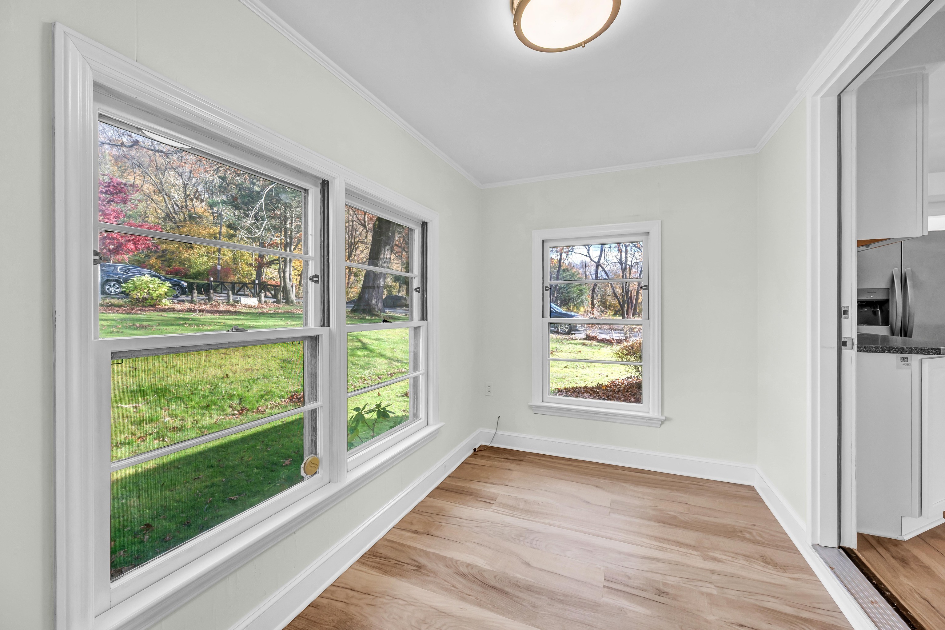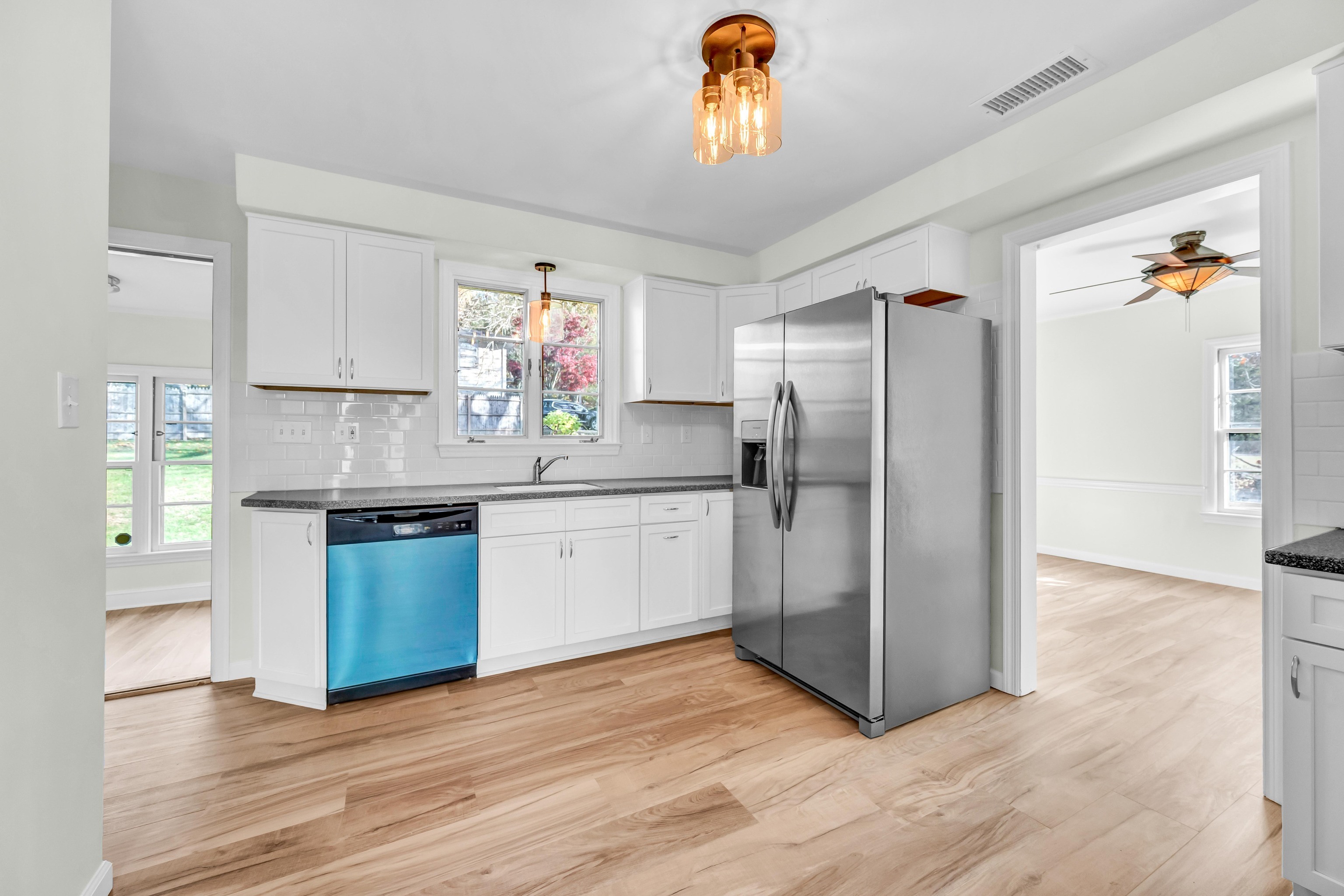 Welcome to 19 Lenox Street - a stunning, fully renovated 3-bedroom, 2-bath ranch that feels like new construction, but without the new construction price tag. Offering exceptional value and craftsmanship, this home is tucked away on a beautiful, sprawling corner lot just steps from Fulton Park's pool, tennis/basketball courts, and scenic walking paths - the essence of a resort-like lifestyle. Step inside to discover gorgeous new flooring (25'), fresh paint (25'), and a fabulous floor plan. The spacious living room, anchored by a classic fireplace, flows seamlessly into the formal dining room. Enjoy every aspect of a brand-new kitchen featuring new cabinetry, corian countertops, and stainless-steel appliances (25'). Off of the kitchen is a lovely sunroom that overlooks a park-like backyard and a breezeway that connect to the 2-car garage. The main level offers two generous sized bedrooms and luxurious new bath. The finished lower level expands your living space with a large family room, a third oversized bedroom, and brand-new modern-luxe full bath - ideal for guests or in-law suite. With all-new systems (25') in place - AC/Heat Pump Split System, Electrical, Insulation & Hot Water Heater - the new owner will enjoy the peace of mind and excitement of being the first to live in the home post-renovation.