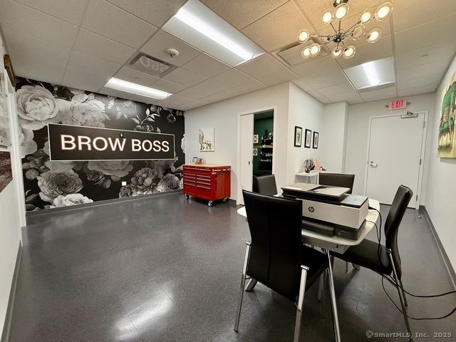Modern, Flexible Office Suite - Ideal for Stylists, Beauticians, Startups, or Small Businesses. 759 sq. ft. third-floor suite in a professional, amenity-rich building located at the high-visibility intersection of Trap Falls Road and Bridgeport Avenue. This space is perfect for anyone who wants to grow their business and is seeking a polished and convenient location. Suite Highlights: Base rent + NNN lease CAM charges: $7.73 per sq. ft. Electric: $1.60 per sq. ft. Covered and uncovered parking. Three elevators in the main lobby. Restrooms on every floor. Enjoy a wide range of on-site amenities including A cafeteria for quick meals or client meetups A fitness center, On-site property management for responsive service. Multiple restaurants and cafes, Health clubs and gyms, A daycare center-a valuable perk for working professionals A conference center seating up to 200-ideal for trainings or events. Tenants receive golf perks at Brownson Country Club and Connecticut Golf Course-perfect for networking or relaxing after hours. Whether you're a stylist looking for a boutique setting, a beauty or wellness professional seeking a central, upscale location, or a business owner wanting modern amenities and accessibility, this space offers the perfect blend of function, visibility and convenience.