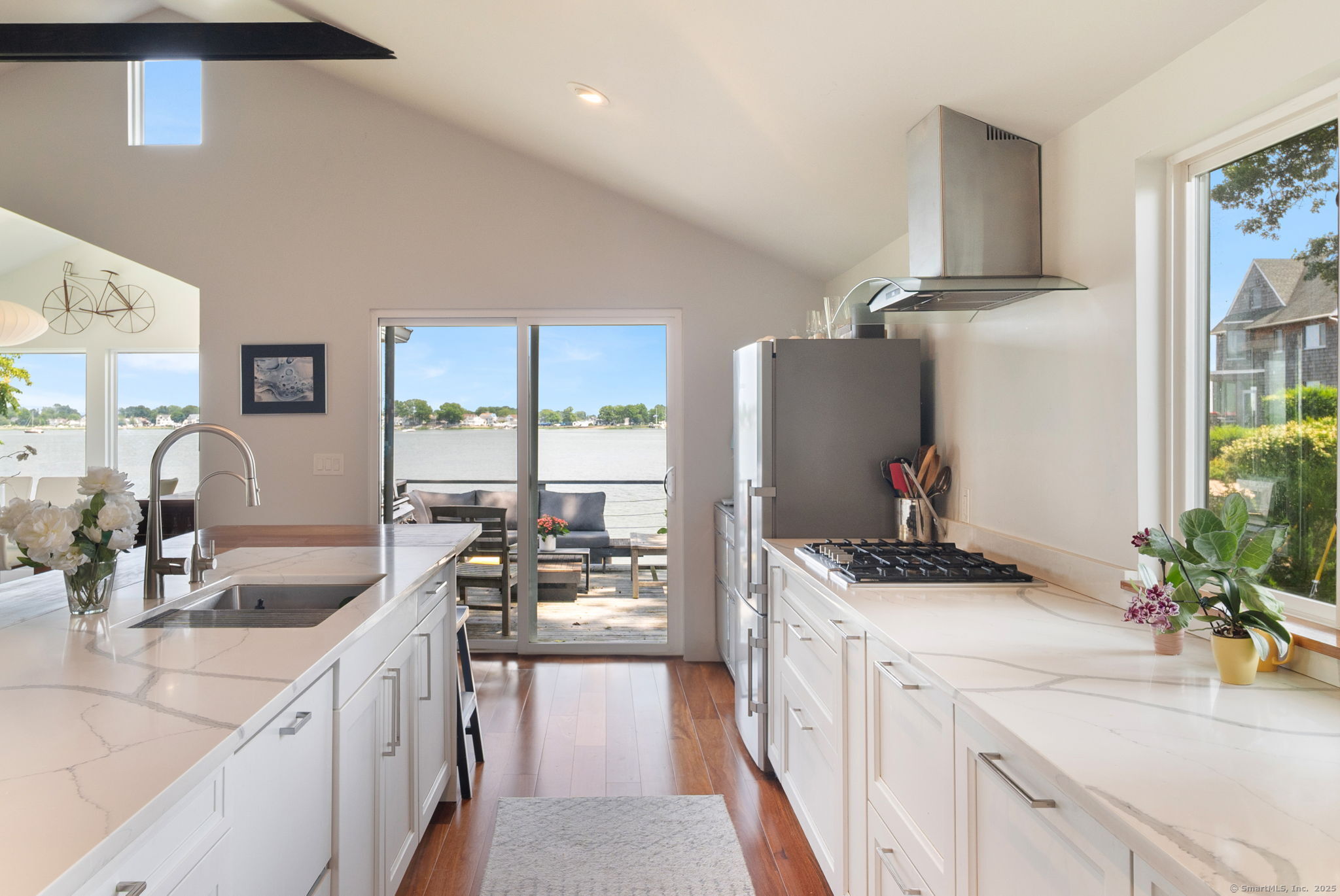 Experience the best of Connecticut coastal living in an environmentally sustainable and stylish package! Energy-efficient, European-inspired home blends the best of urban and coastal lifestyles, tucked away in a friendly, tree-lined neighborhood with plenty of yard space for privacy and fun. Wake up with the sun rising over the harbor, and take your morning coffee on your private deck, watching the oyster boats while listening to the osprey, seabirds, and songbirds begin their morning routines. Every morning is a new tapestry of color. Tune into nature's rhythms and take advantage of 8 total hours of high tide: your kayak and paddle boards await. Paddle over to swim off Peach Island, just minutes away. Or if city life draws you, explore downtown SONO's excellent restaurants and eateries - not to mention its live music, art, culture and oyster festivals - all just a mile away. Need to commute to NYC or New Haven for work, or want to visit their countless cultural opportunities? Highway 95 and MetroNorth's direct train to Grand Central are just a 5-minute's drive, and parking is easy. Come home after a long day, enjoy a cool drink as you put your feet up on the lounge deck, check out what's blooming in the garden, watch the setting sun set the harbor aglow as you grill up something special. Or take advantage of the Master Chef Miele oven and enjoy the open-concept dining/living area with friends while it doe