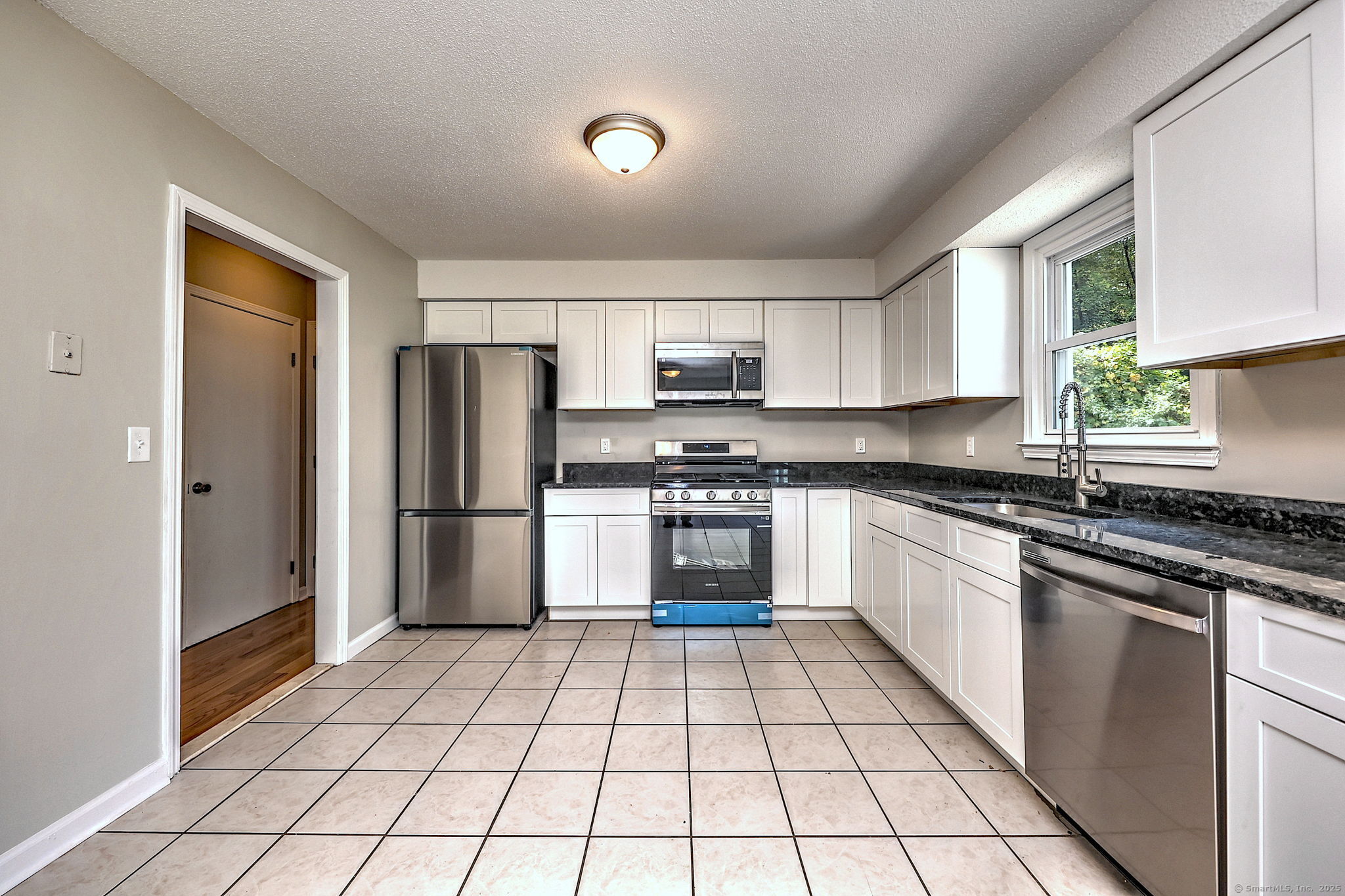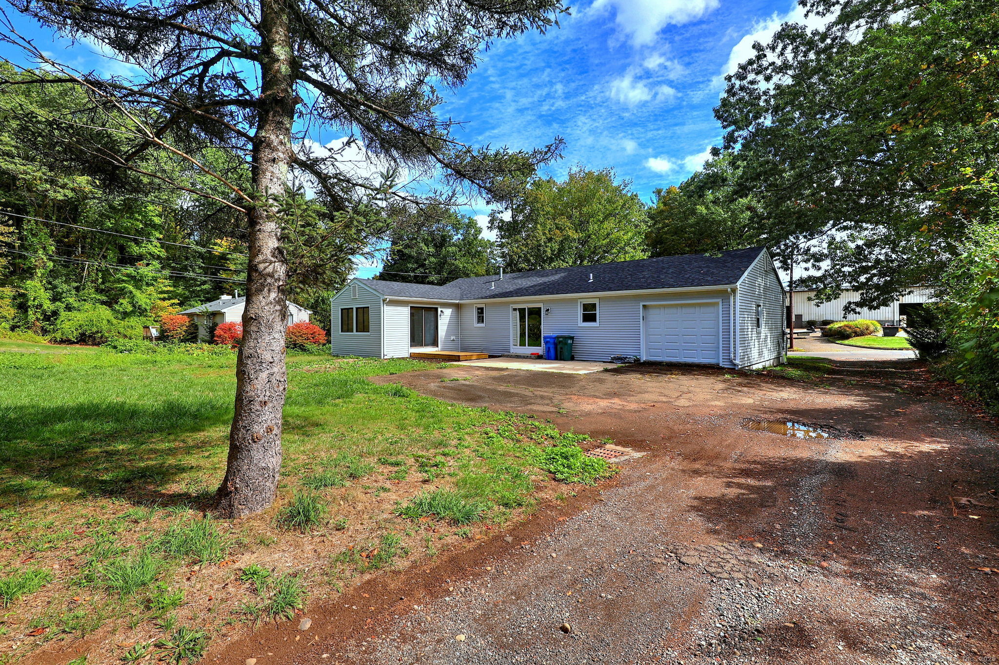 DECEIVING FROM THE EXTERIOR, THIS COMPLETELY RENOVATED AND MOVE-IN READY HOME IS PRICED TO SELL! A ONE-CAR REAR-ENTRY ATTACHED GARAGE with direct access to the interior! Be the very first to call this stylish ranch home yours! Offering over 1500 square feet, 3 bedrooms and 2 full baths - including a private ensuite in the primary - this home boasts gleaming NEW HARDWOOD FLOORS, a bright white NEW KITCHEN with NEW STAINLESS APPLIANCES, and a slider opening to a concrete patio for seamless indoor-outdoor living. Other major upgrades include a brand NEW ROOF, NEW VINYL SIDING, NEW WINDOWS (except primary), NEW FURNACE, NEW CENTRAL AIR and NEW HOT WATER HEATER. A one-car attached rear entrance garage with a storage room, plus a spacious unfinished basement ready for your finishing touches, adds practicality and extra space. Set on an almost half-acre leveled lot with a circular driveway for additional parking, there's plenty of room to play, entertaining, and maybe add a pool! Close to Sleeping Giant State Park, Farmington Canal Trail, Eli Whitney Museum, and New Era Gymnastics. Perfectly located just minutes to RT-15, shopping, restaurants, and close to Quinnipiac University, all things Yale and Albertus. Don't miss your chance to be the first to live here!