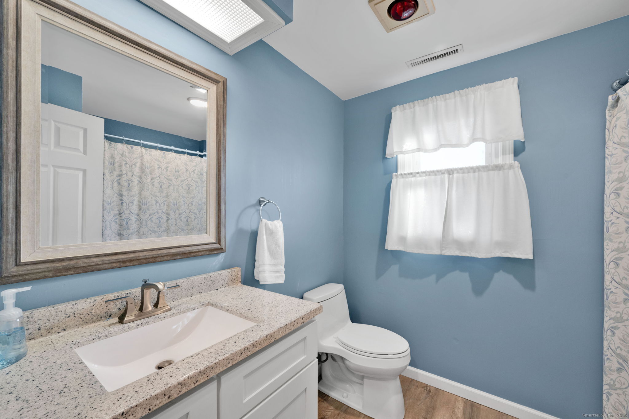 Highly sought after neighborhood location in the heart of South Windsor for this well-maintained 3 bed, 2 1/2 bath colonial home. Pride of ownership abounds with an open, bright, and inviting layout with a modern paint palette and beautiful hardwood flooring throughout. Sun-filled family room with wood stove opens to the REMODELED kitchen with stylish white cabinets, granite counters, and stainless steel appliances. Formal living and dining rooms flank the entrance foyer. Upper level features all three bedrooms including the primary suite with walk-in closet and dedicated full bath. Large 16x28 deck overlooks open and level backyard with storage shed. Unfinished lower level offers plenty of storage or expansion potential. Located in the highly desirable PR SMITH ELEMENTARY SCHOOL DISTRICT. Tranquil setting with city water/sewer, generator hook-up, and central air but convenient to Evergreen Walk, Costco, Whole Foods, Club Studio, Tri City, Buckland Mall, and I-84 for easy commute to Hartford, UConn or Bradley Airport.