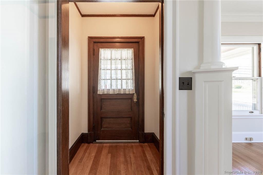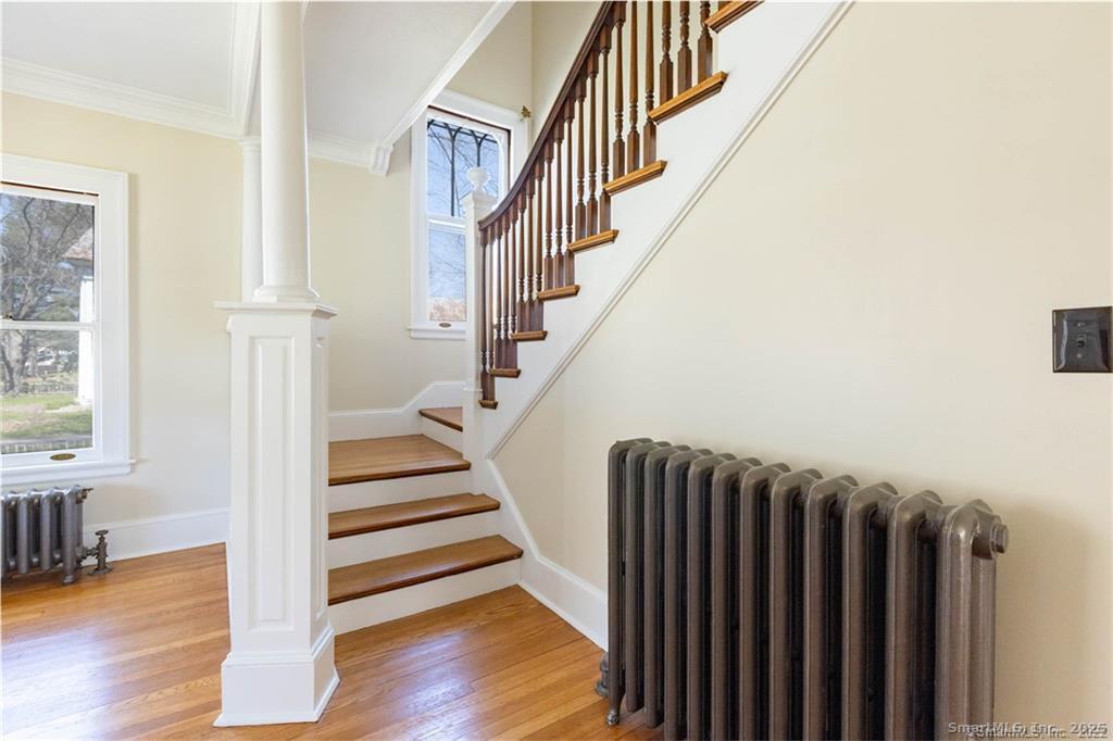 Historical Registered Chapin House on the green of Historic Pine Meadow, a Colonial Antique revival built by one of the founding fathers of New Hartford, Hermon Chapin iii. This lovely Colonial Revival home has 10 rooms, 5 bedrooms and two bathrooms. Tiger oak custom mantel, 10 ft ceilings original custom woodwork, carriage house, much more there are two staircases, original pocket doors and crown moldings. The wraparound veranda with it's Gothic columns looks across to Chapin Park in historic Pine Meadow. A brick hearth fireplace, an entry foyer with a vestibule and sitting area, a 3 level Carriage House is wired with 220 Amp Service. Updated kitchen and baths, 1st floor laundry room, ample closets and large storage areas. Quality and detail from an earlier era combine with pride of ownership and meticulous maintenance in this gracious home.