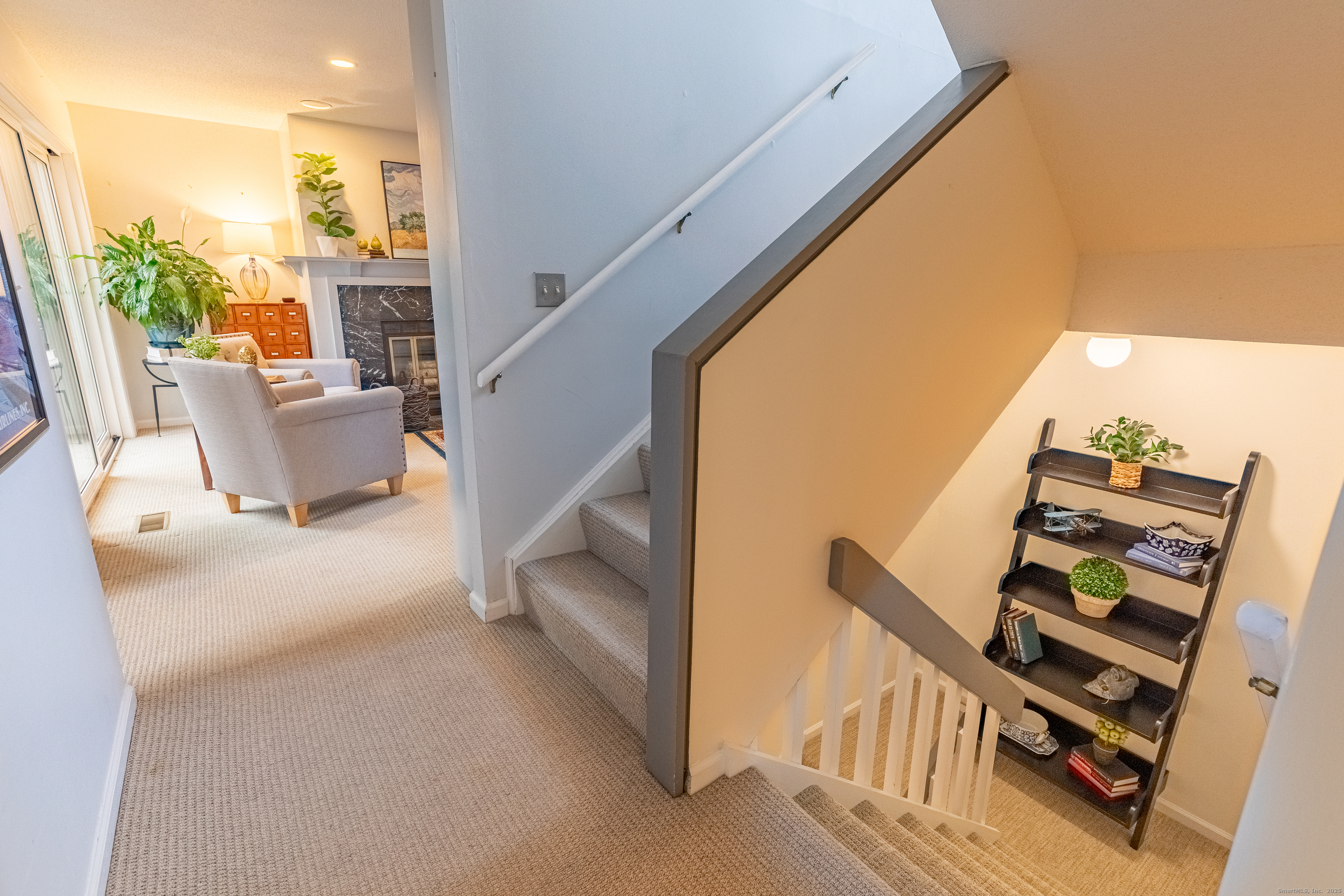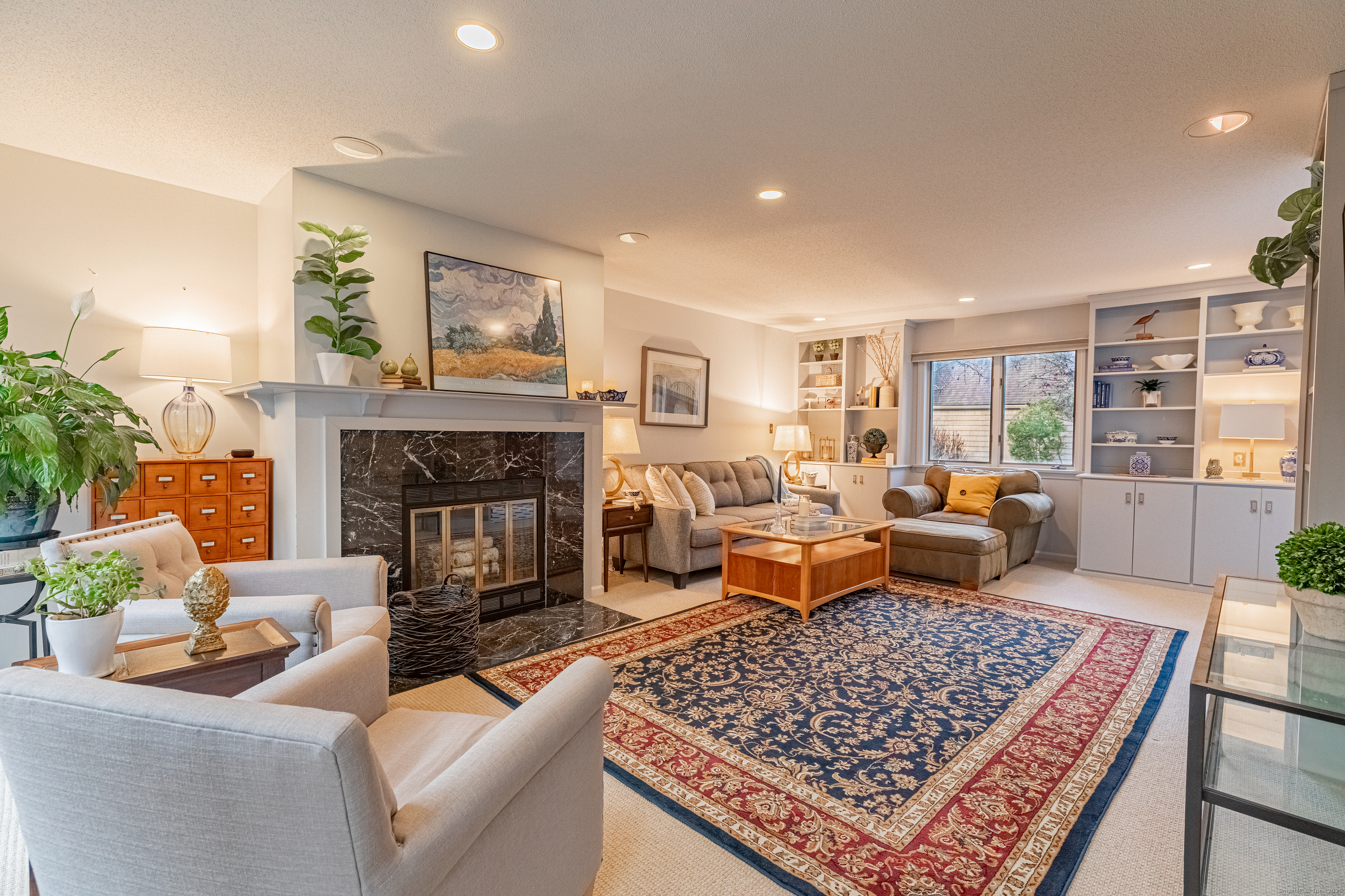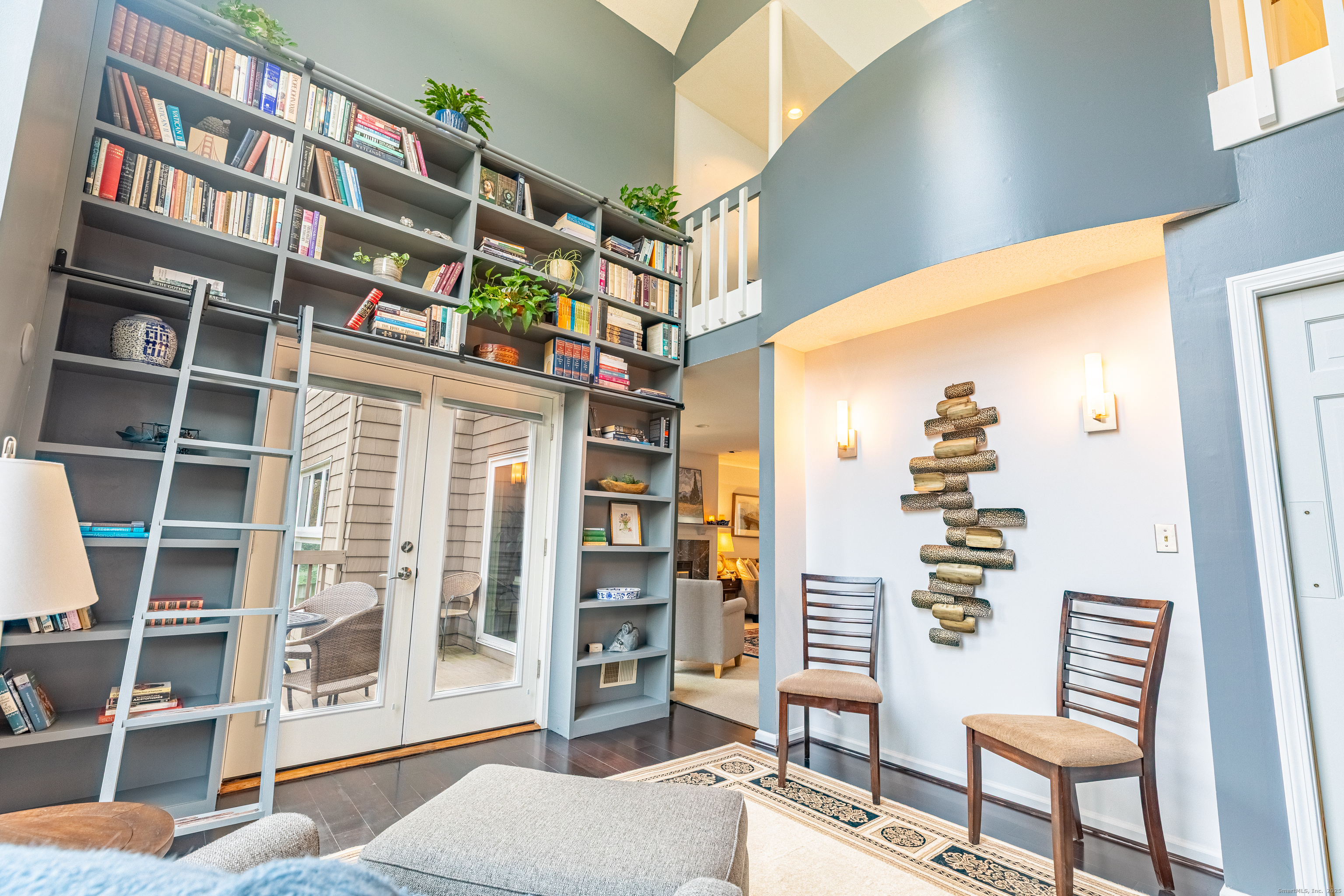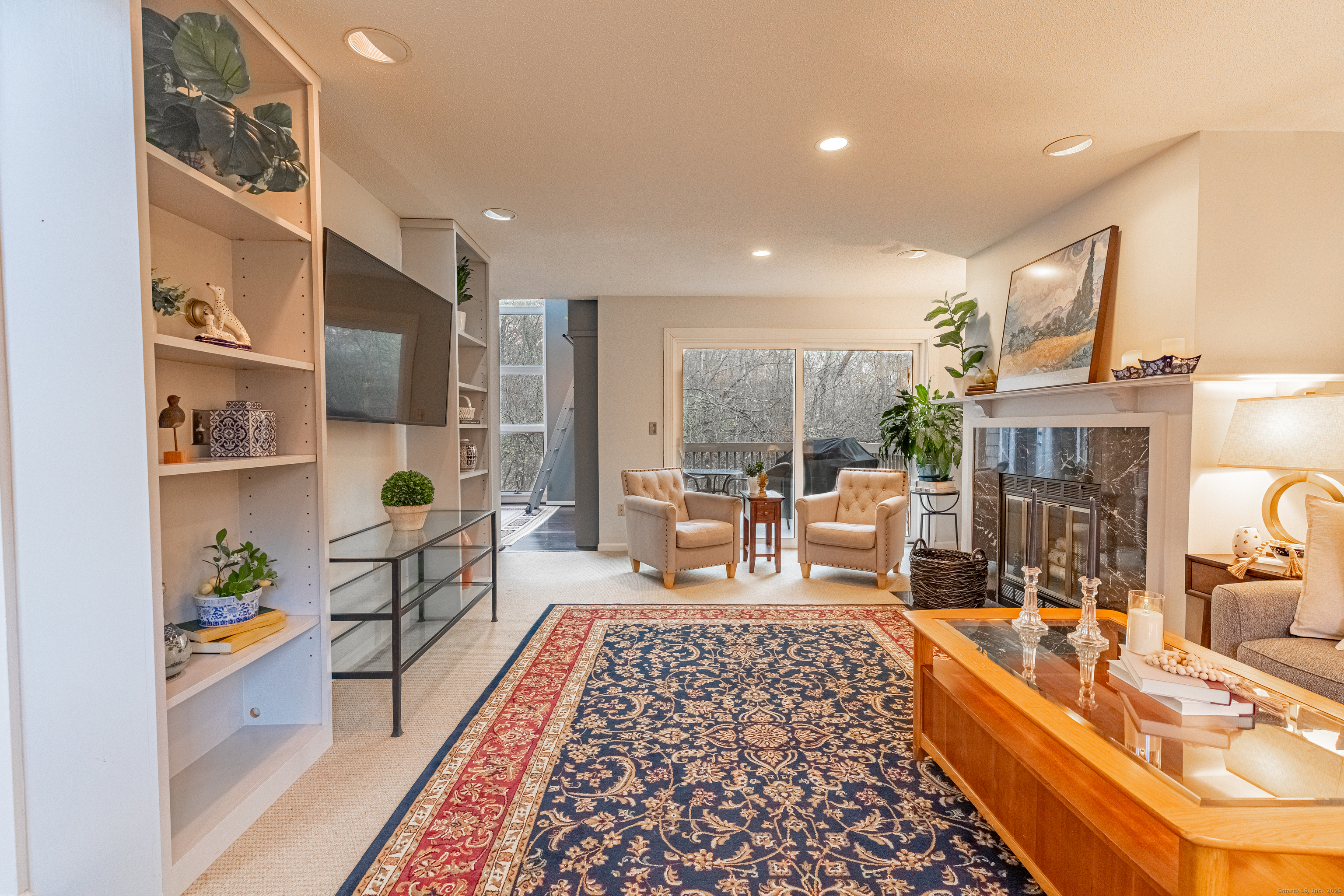 In the heart of West Hartford, this luxury condo delivers that unmistakable "this is home" feeling the moment you step inside. As you walk in, you're welcomed by a refined foyer that flows seamlessly into an open floor-plan, greeting you with soaring lofted ceilings and an abundance of natural sunlight streaming through expansive floor-to-ceiling windows. The spacious living room is anchored by a serene fireplace, creating the perfect setting for relaxation or entertaining. A striking two-story library wall-complete with custom built-ins and a rolling ladder-adds a touch of elegance and character, while French doors lead to a private deck ideal for morning coffee or evening unwinding. This stunning townhouse-style condo is just moments from the prestigious Hartford Golf Club and all of the dining, shopping, and lifestyle amenities that make West Hartford so desirable. Offering over 2,000 sq ft of beautifully designed living space, this 4-bedroom, 3.5-bath home blends dramatic architectural details with modern comfort. The finished walkout lower leve offers exceptional flexibility, featuring two additional bedrooms perfect for guest space, home gym, or office space, plus a dedicated laundry area and full bathroom. A generous 2-car garage provides convenience and ample storage. With its thoughtful layout, dramatic design features, and unbeatable location- this condo delivers the perfect blend of style, space, and convenience. Don't miss the opportunity to make it yours!