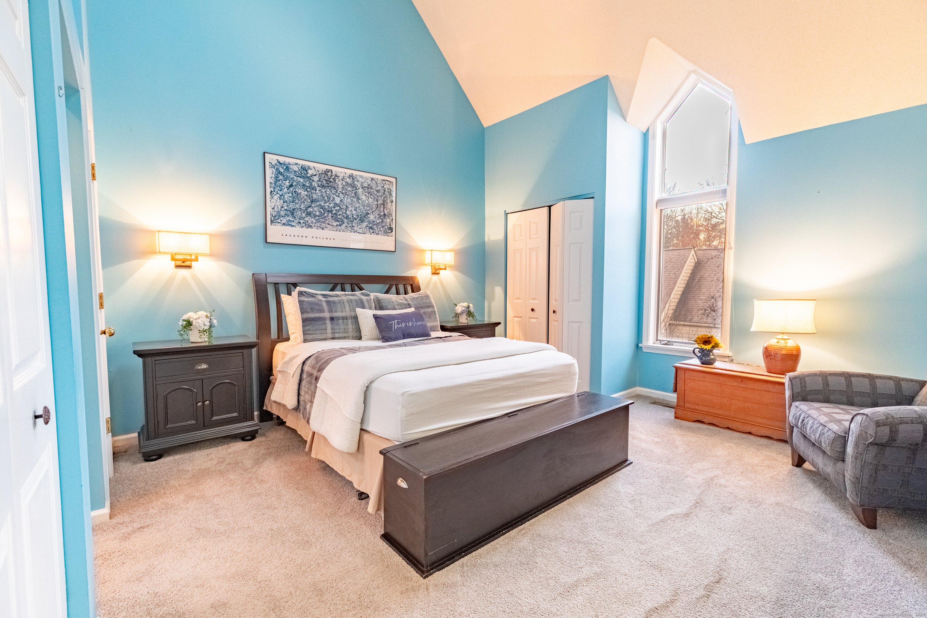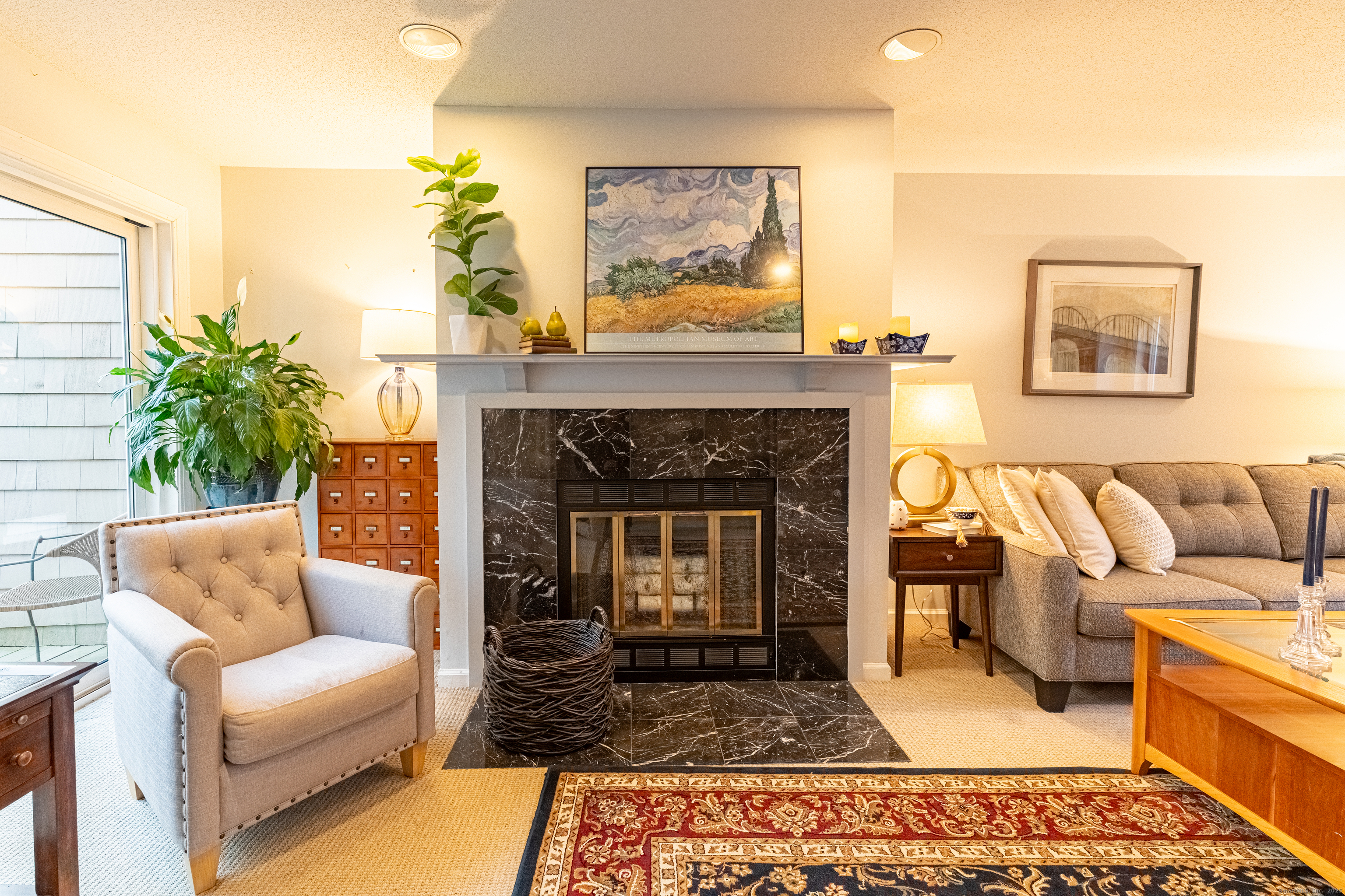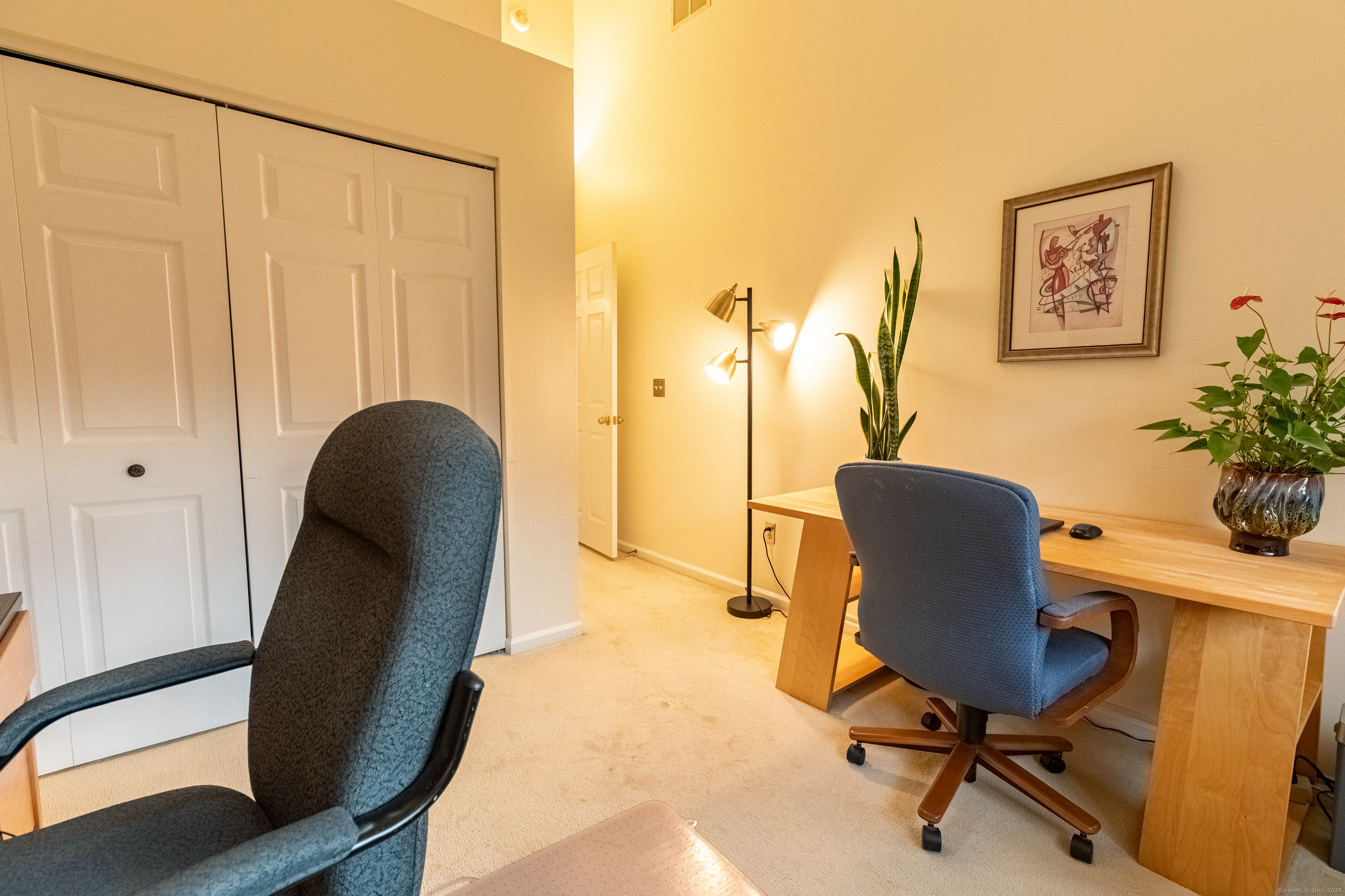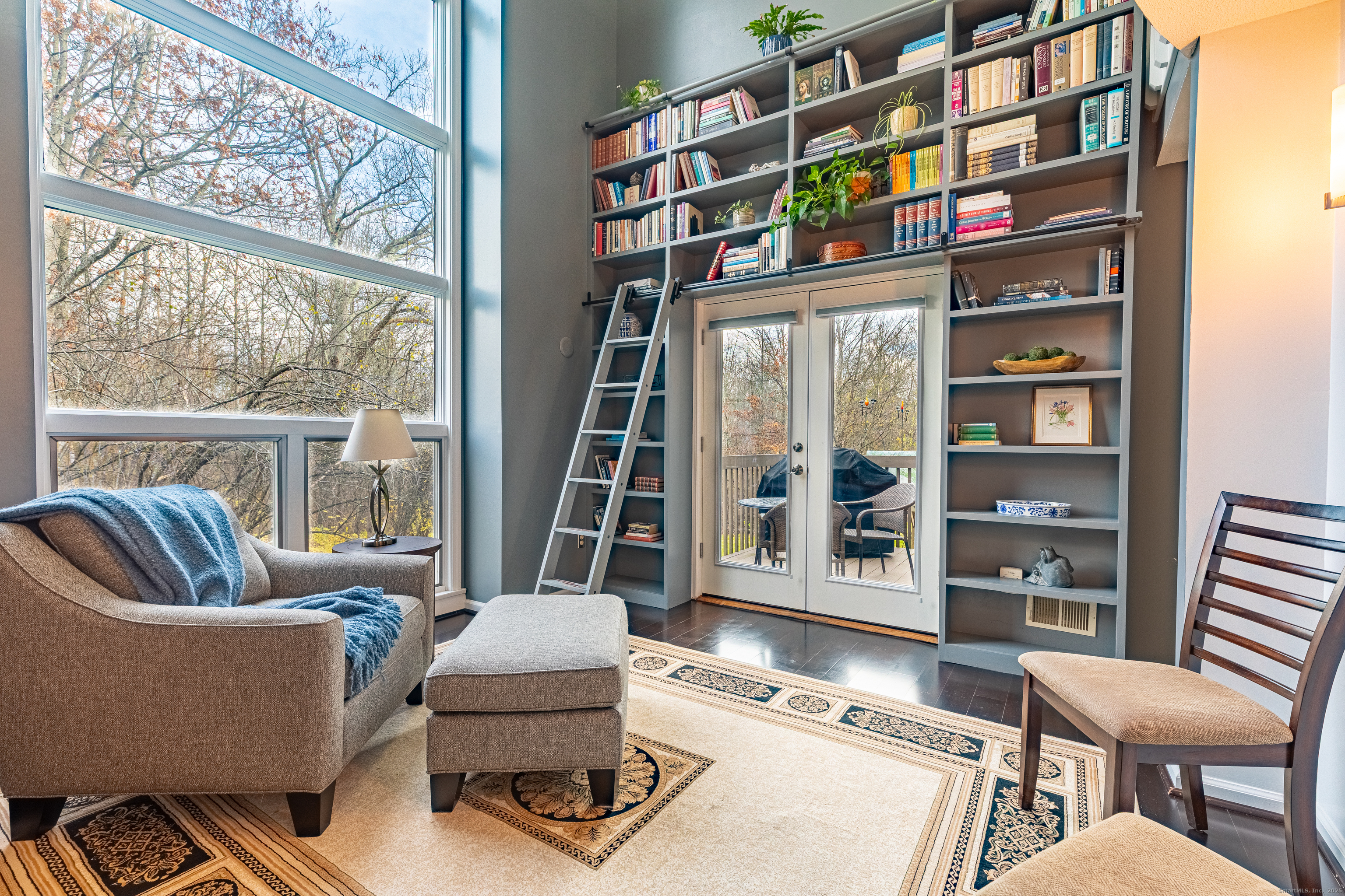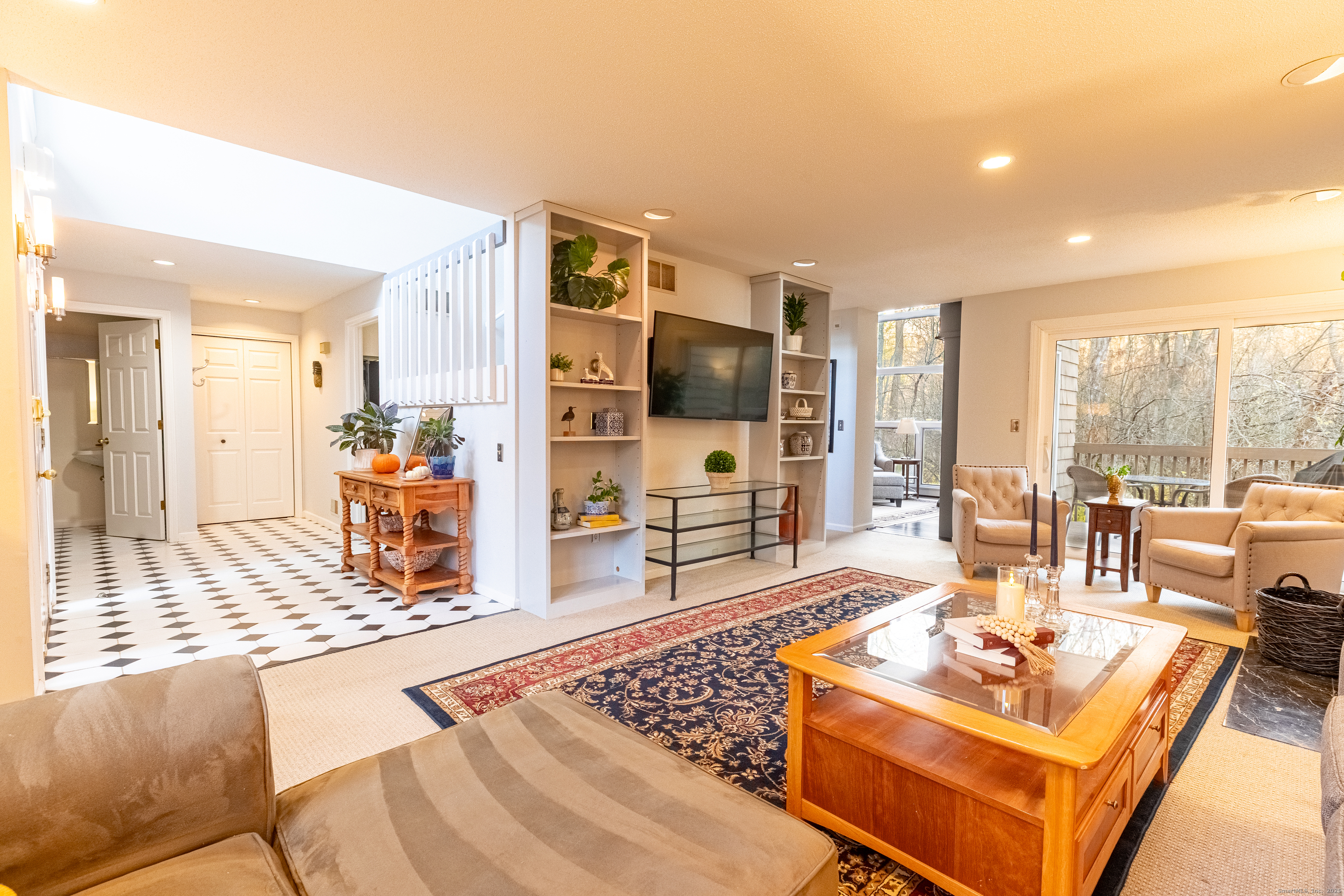 In the heart of West Hartford, this luxury condo delivers that unmistakable "this is home" feeling the moment you step inside. As you walk in, you're welcomed by a refined foyer that flows seamlessly into an open floor-plan, greeting you with soaring lofted ceilings and an abundance of natural sunlight streaming through expansive floor-to-ceiling windows. The spacious living room is anchored by a serene fireplace, creating the perfect setting for relaxation or entertaining. A striking two-story library wall-complete with custom built-ins and a rolling ladder-adds a touch of elegance and character, while French doors lead to a private deck ideal for morning coffee or evening unwinding. This stunning townhouse-style condo is just moments from the prestigious Hartford Golf Club and all of the dining, shopping, and lifestyle amenities that make West Hartford so desirable. Offering over 2,000 sq ft of beautifully designed living space, this 4-bedroom, 3.5-bath home blends dramatic architectural details with modern comfort. The finished walkout lower leve offers exceptional flexibility, featuring two additional bedrooms perfect for guest space, home gym, or office space, plus a dedicated laundry area and full bathroom. A generous 2-car garage provides convenience and ample storage. With its thoughtful layout, dramatic design features, and unbeatable location- this condo delivers the perfect blend of style, space, and convenience. Don't miss the opportunity to make it yours!