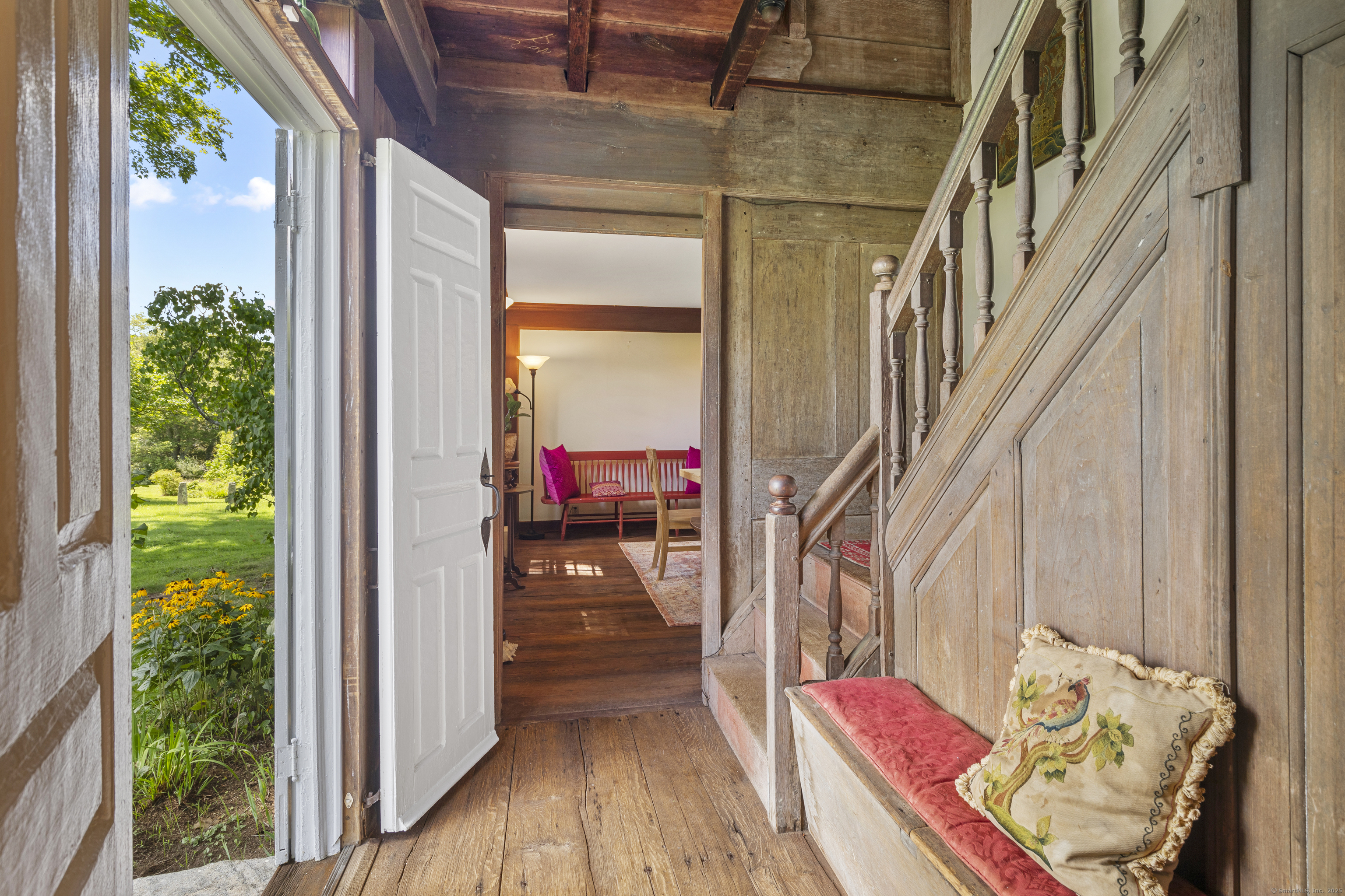 Available 1/15 - 6/15. Discover a rental like no other where privacy and convenience delightfully collide! This extraordinary 17-acre estate adjoins the expansive 600-acre East River Preserve and Guilford Land Trust lands, offering a secluded haven of total privacy mere minutes from the historic Guilford Green, the sandy stretches of Jacobs Beach, and the accessibility of I-95. The estate's heart is a beautifully preserved antique residence, boasting five bedrooms and five full baths, and an office space that caters to the modern professional. The expansive family room offers panoramic views of the surrounding natural beauty. Original wood paneling and beams infuse the home with timeless elegance. The sun-drenched primary suite offers a serene escape, with wonderful views of the East River. The library, anchored by an 18th-century stone fireplace, provides a cozy nook for reading and relaxation. Step outside to immerse yourself in outdoor activities right at your doorstep through the adjacent trails. With the property also bordering the East River, kayak enthusiasts can navigate to Long Island Sound at high tide. Wildlife and bird watching become a daily spectacle, as the estate is a stage for the ever-changing tableau of nature. This unique property is a sanctuary for those who cherish privacy, nature, and the allure of a life well-lived. Embrace the opportunity to reside in a place where every window frames the beauty of the seasons and every day brings a new adventure!