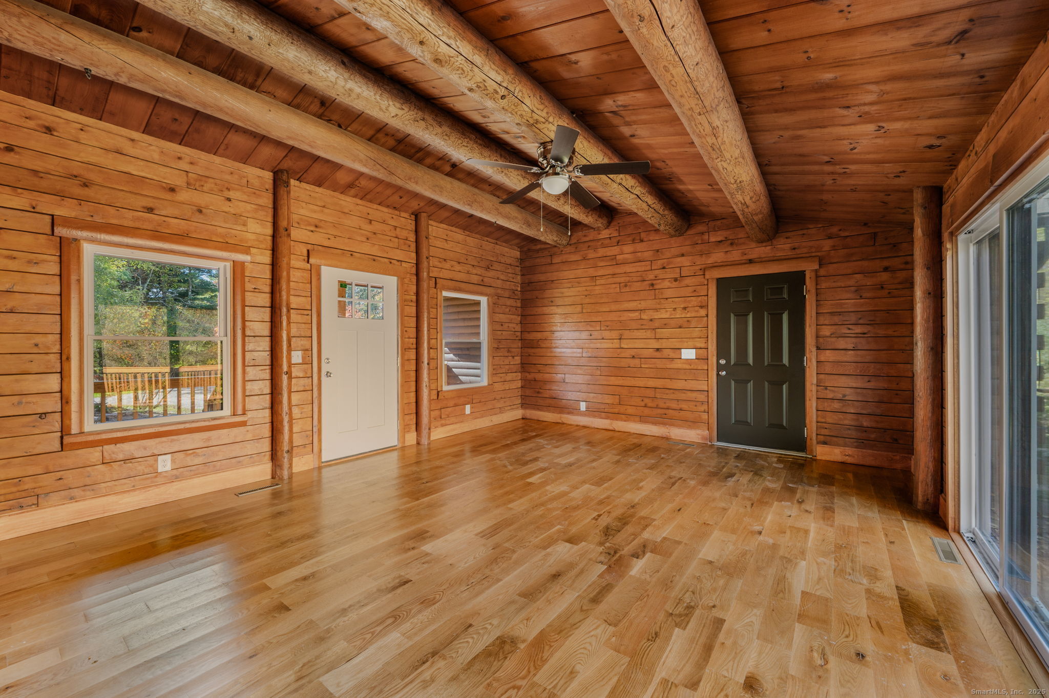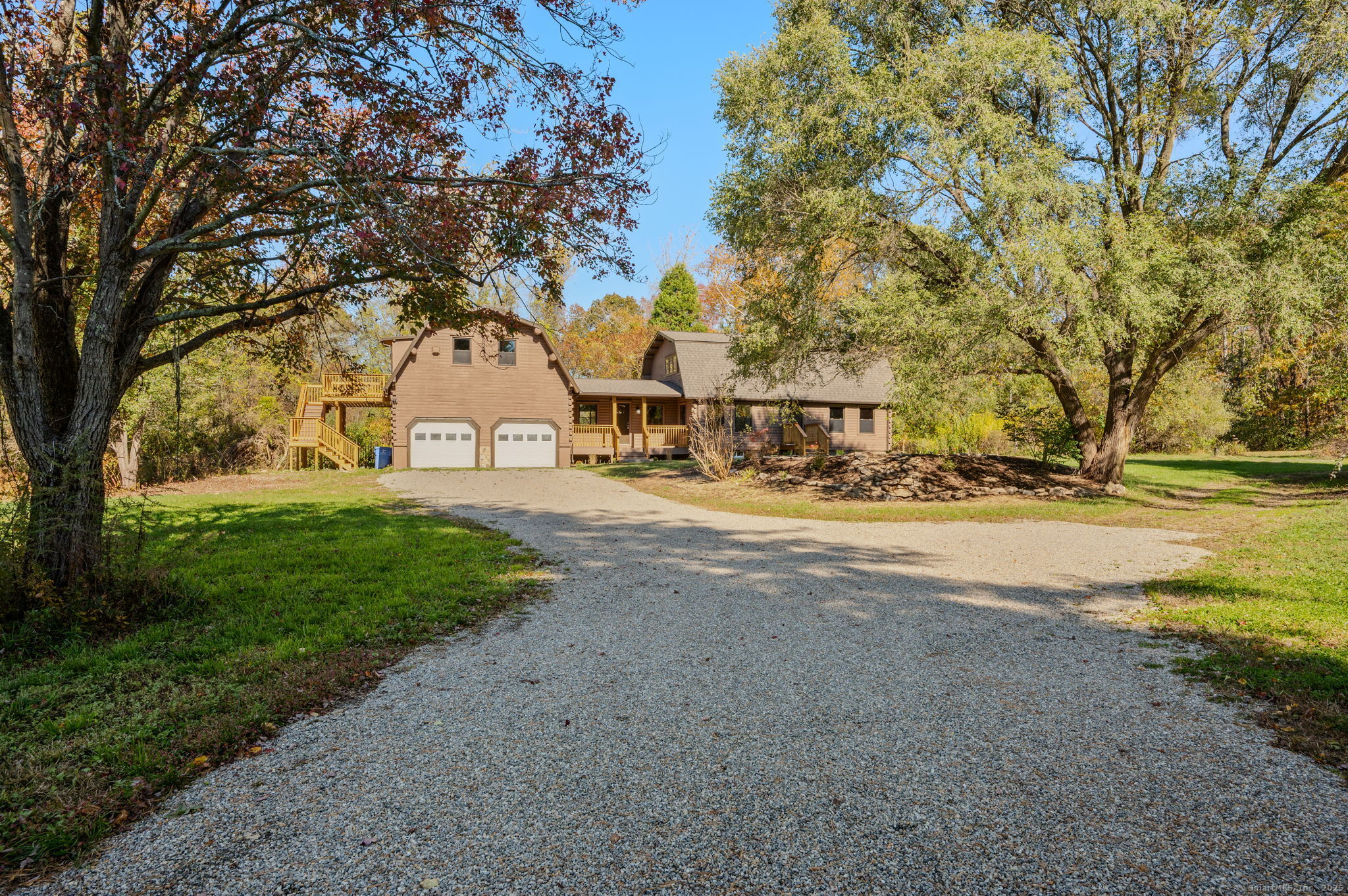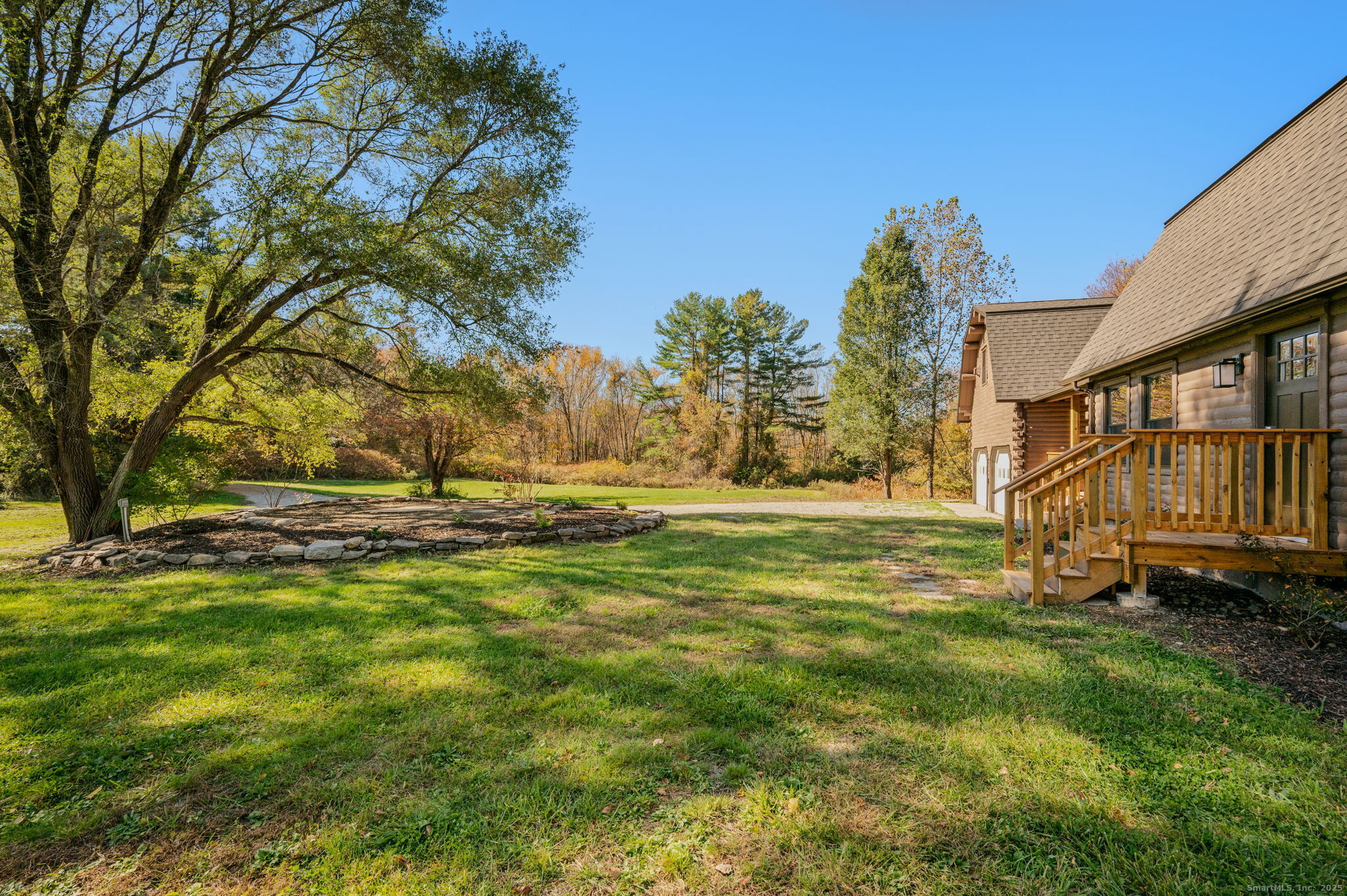 Remodeled 3-bedroom, 1.5-bath log cabin on 7.4 peaceful acres. Plenty of open land for outdoor enjoyment. Picture yourself winding down for the evening enjoying the cozy front porch while overlooking this quiet, private setting. Such an inviting home that features rustic charm with spacious living areas that showcase natural wood details and updated finishes. The two-car garage includes an unfinished apartment above-ideal for future guest quarters or home office. There's also a rear outbuilding which provides additional storage or workshop space. Don't miss this opportunity Make Your Move!