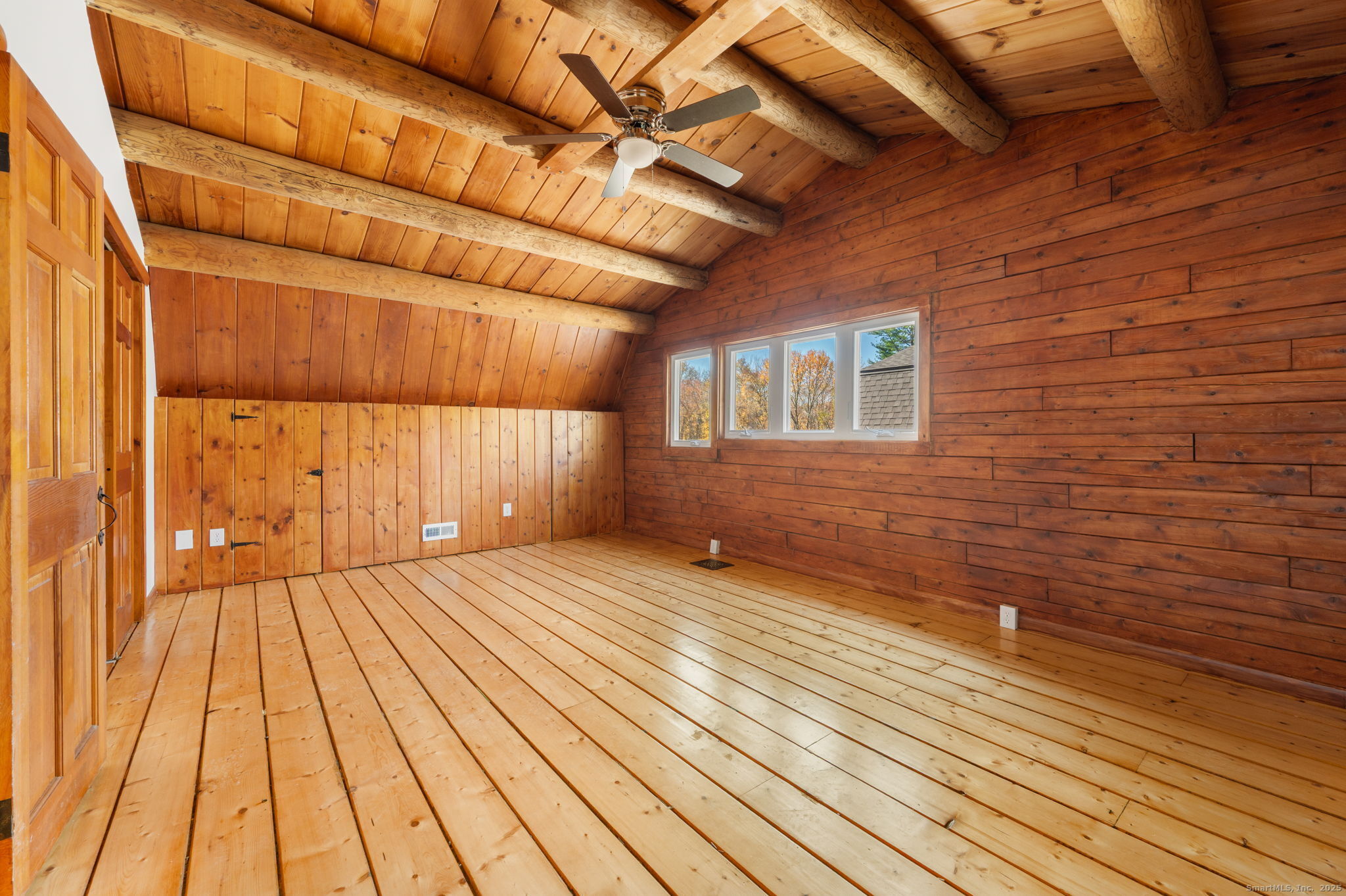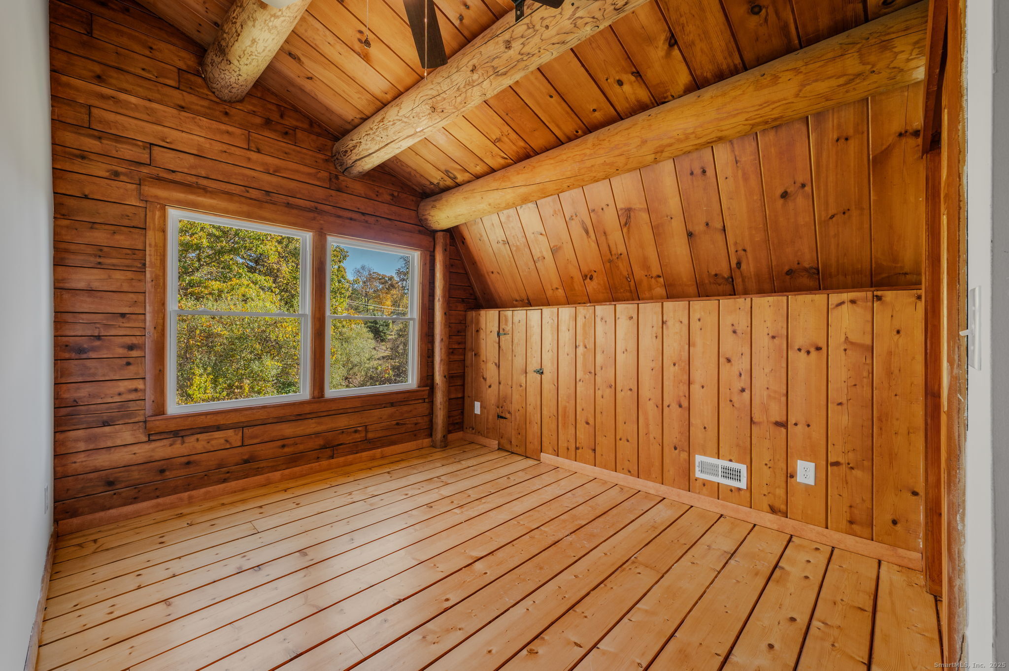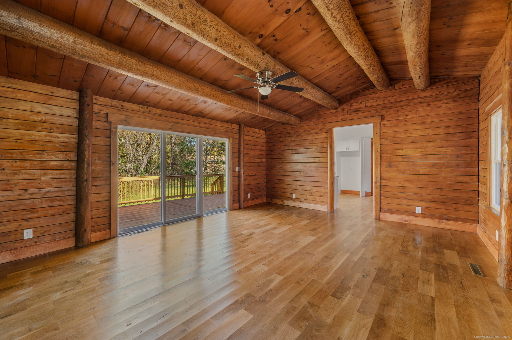 Remodeled 3-bedroom, 1.5-bath log cabin on 7.4 peaceful acres. Plenty of open land for outdoor enjoyment. Picture yourself winding down for the evening enjoying the cozy front porch while overlooking this quiet, private setting. Such an inviting home that features rustic charm with spacious living areas that showcase natural wood details and updated finishes. The two-car garage includes an unfinished apartment above-ideal for future guest quarters or home office. There's also a rear outbuilding which provides additional storage or workshop space. Don't miss this opportunity Make Your Move!