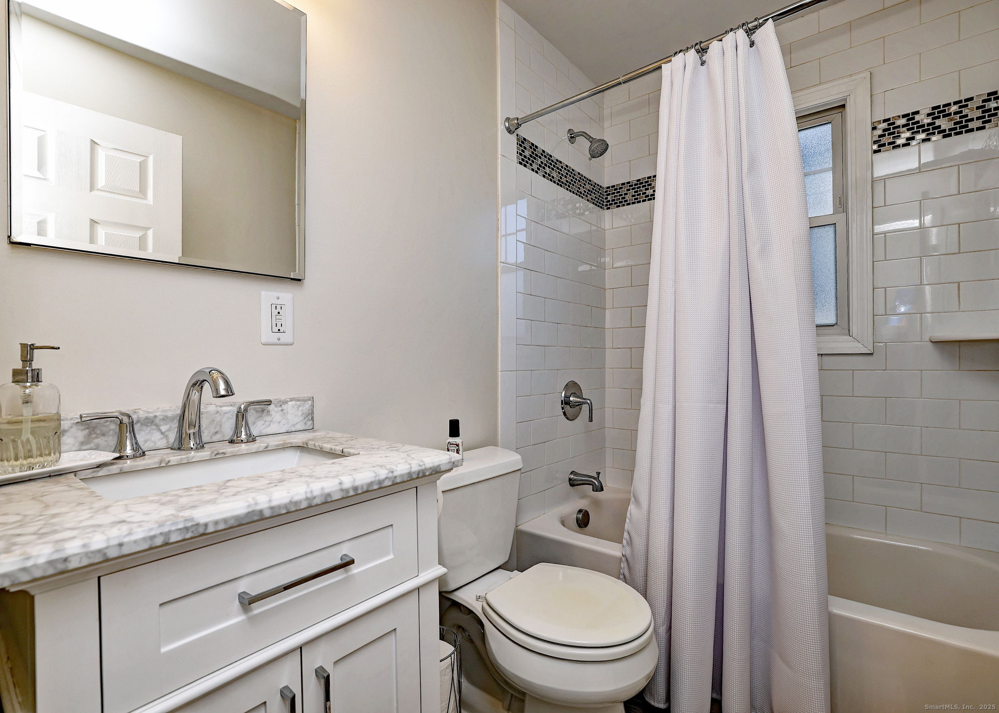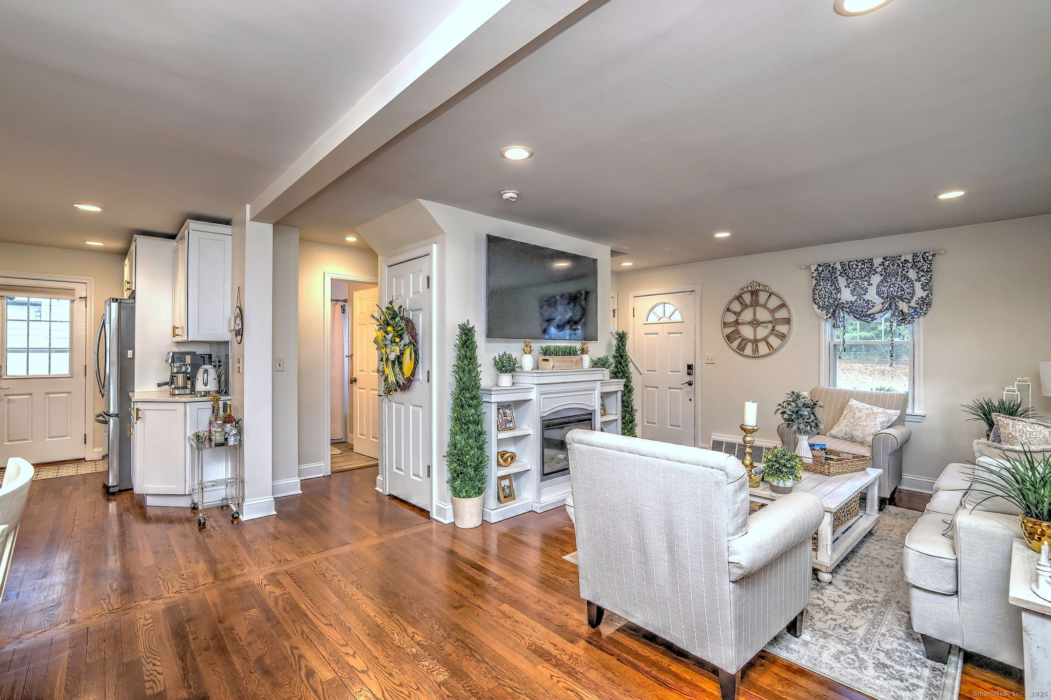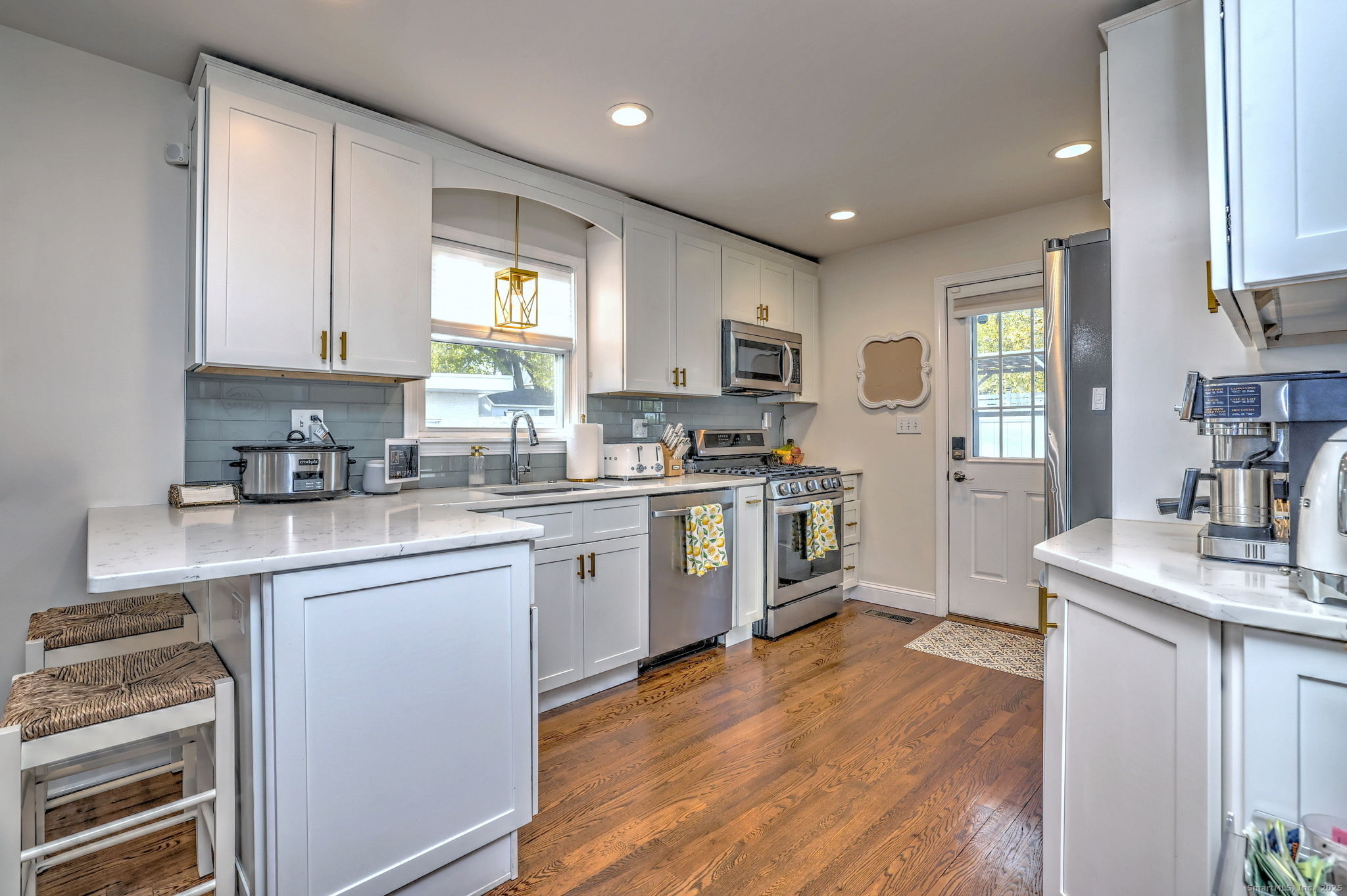 Start the New Year in this beautiful, renovated and immaculate 3 BR 2 full bath home! The impressive main level open floor plan includes a combined living/dining with hardwood floors and recessed lighting. Enjoy gas cooking in your Gorgeous kitchen with stainless-steel appliances, white shaker cabinets, quartz counter-tops, breakfast bar and a glass subway tile backsplash. A main level bedroom and a lovely full bathroom with tub/shower and marble-top vanity complete the first floor. Upstairs you'll find the second stunning full bath with a marble-top double-sink vanity and walk-in shower, 2 bedrooms, including the spacious primary with a walk-in closet. The private, partially fenced backyard has a builtin fireplace and patio areas great for entertaining or relaxing. Energy efficient Solar, Washer & Dryer, 2 Car Garage & more! Enjoy this quiet, convenient location close to I-95, Merritt Parkway, Route 1, Walnut beach, Milford Train, restaurants and shopping downtown.
