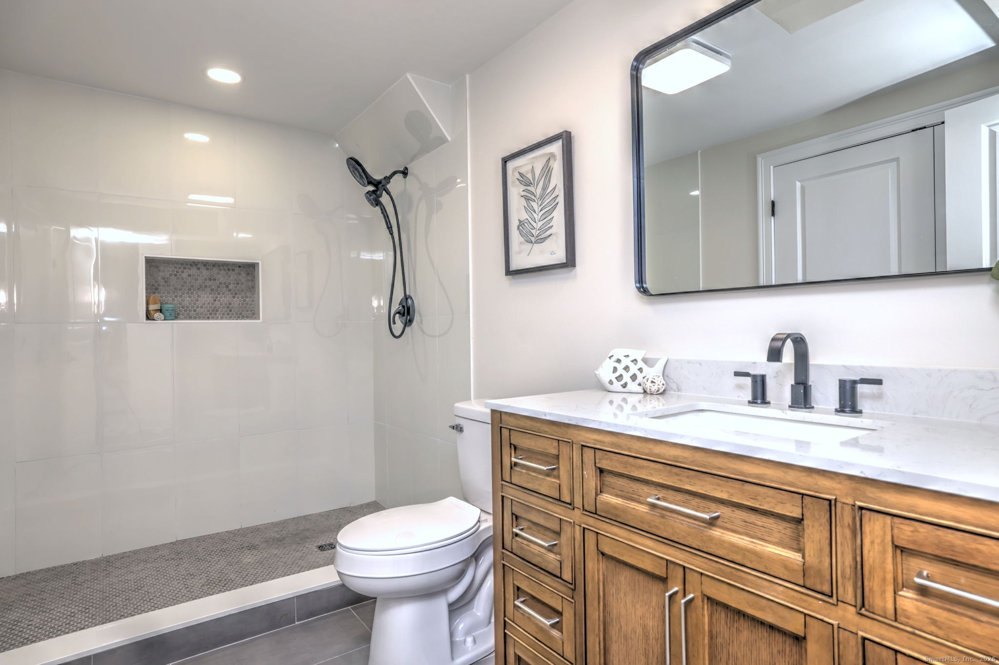 Completely remodeled from top to bottom, this stunning raised ranch in one of Shelton's most desirable neighborhoods is truly move-in ready. Featuring an open and airy floor plan, the main level offers a spacious great room that flows seamlessly into a brand-new custom Shaker-style kitchen appointed with quartz countertops, stainless appliances, and modern finishes. The home boasts three beautiful full bathrooms, including two on the main level and one on the fully finished lower level, providing ideal flexibility for guests, in-law potential, or extended living space. Every major update has already been done-including a new roof, new windows, and all new interior renovations-giving the property a fresh, modern feel throughout. The lower level offers additional living space perfect for a family room, home office, or recreation area, with direct access to the attached garage. Located on a quiet street yet close to shopping, schools, and commuter routes, this home delivers exceptional value, style, and convenience. A must-see for buyers seeking a turnkey property in Shelton.