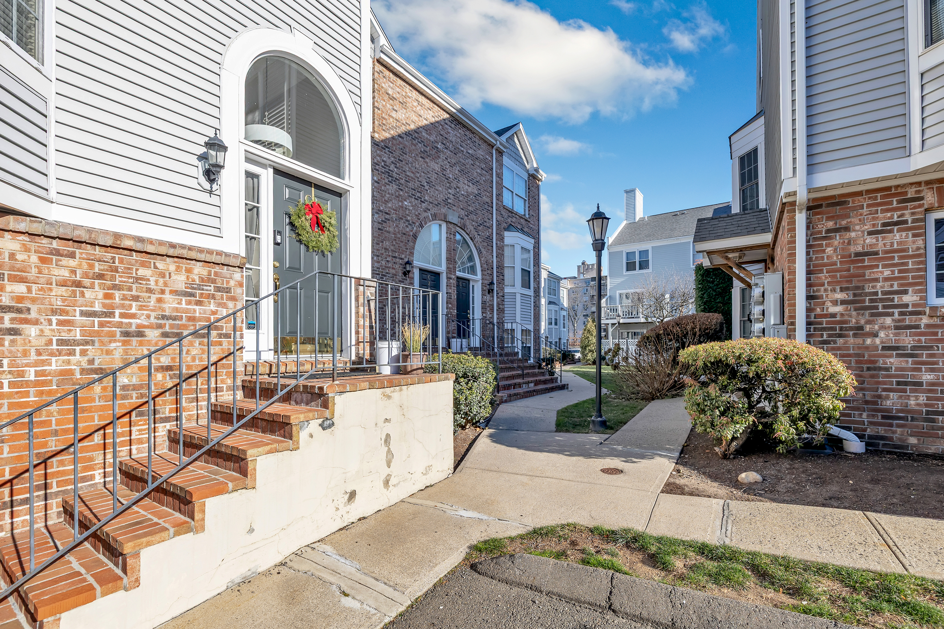 Welcome home to this fabulous tri-level townhouse in Brooklawn's River's Edge gated community near the Fairfield town line. The main level features an updated kitchen with quartz countertops and stainless steel appliances. The open concept dining room and living room feature hardwood floors, a beautiful bay window, a gas log fireplace, vaulted ceilings, and sliders to a private deck. The updated powder room features a pedestal sink, tile floors, and wainscoting. The upper level features a spacious primary bedroom with vaulted ceilings, a gas log fireplace, skylights, and a walk-in closet. The updated primary bath features quartz countertops and a whirlpool tub. A second bedroom and full bathroom complete the upper level. The lower level features a laundry closet and an office room that could also be used as an additional bedroom or office. Newer garage doors and HVAC system. The complex features a private walking trail/park area for resident use. Great location with easy access to shopping, restaurants, beach, train station, and major highways. Make this move-in-ready house your home today and live fabulously ever after!