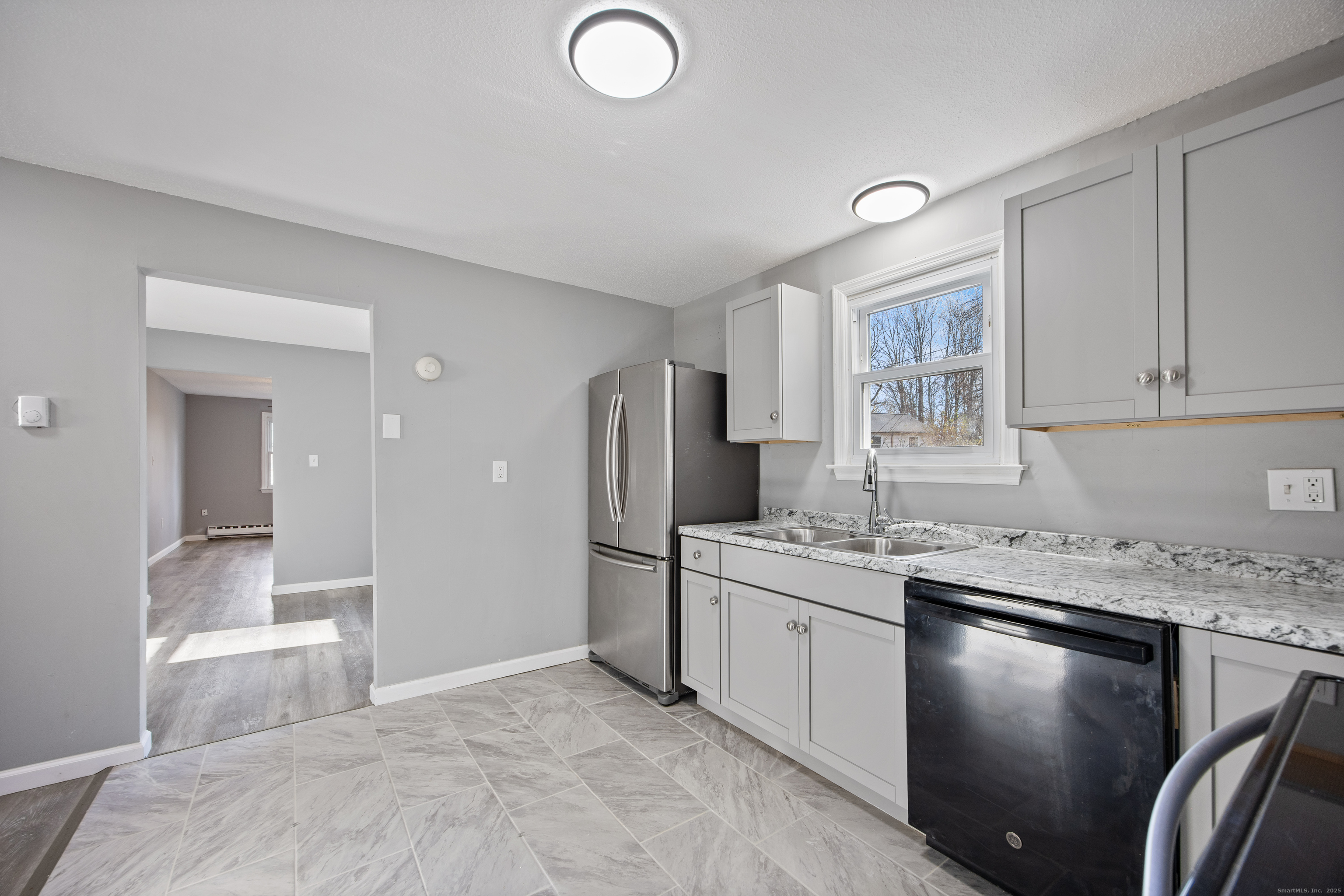 Welcome to 4 Esperon St Waterbury, a beautifully renovated Raised Ranch with a one car attached garage! Step into a bright and inviting living room that flows into the updated kitchen, complete with new cabinetry, countertops, stainless steel appliances and an adjoining dining area. Finishing off the main level are 3 well appointed bedrooms and a full bathroom. The finished lower level offers even more living space with a large family room highlighted by a cozy wood-burning stove, a possible 4th bedroom or home office, a full bathroom and laundry room. Durable vinyl plank flooring runs throughout the home for a clean, modern look. Step outside to your new spacious deck overlooking a private backyard, ideal for relaxing or entertaining. Truly move-in ready-nothing left to do but enjoy your new home!