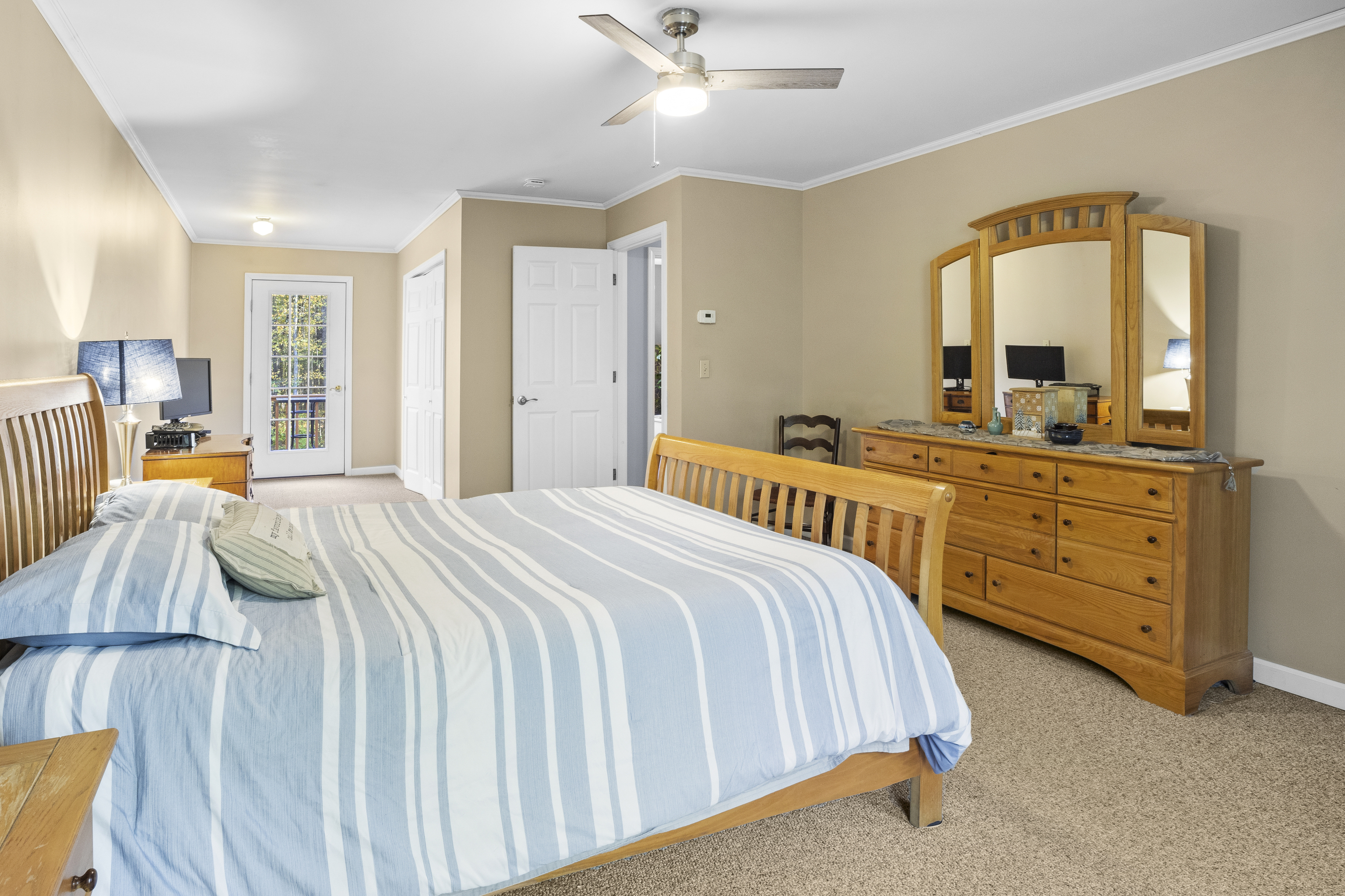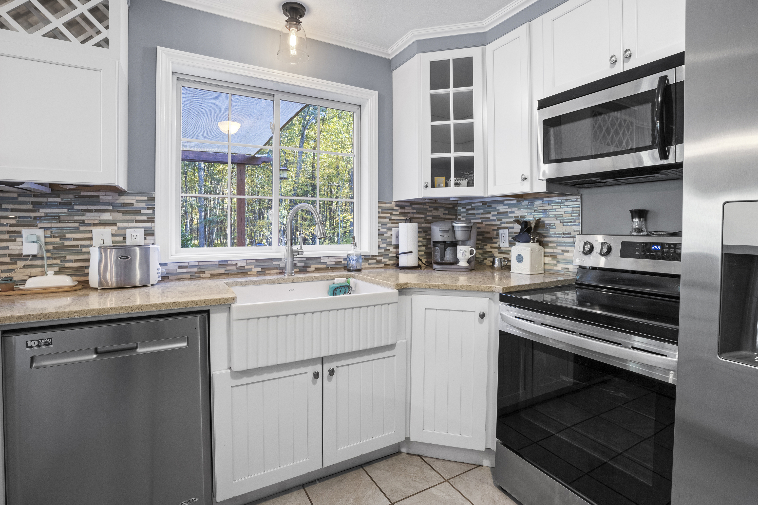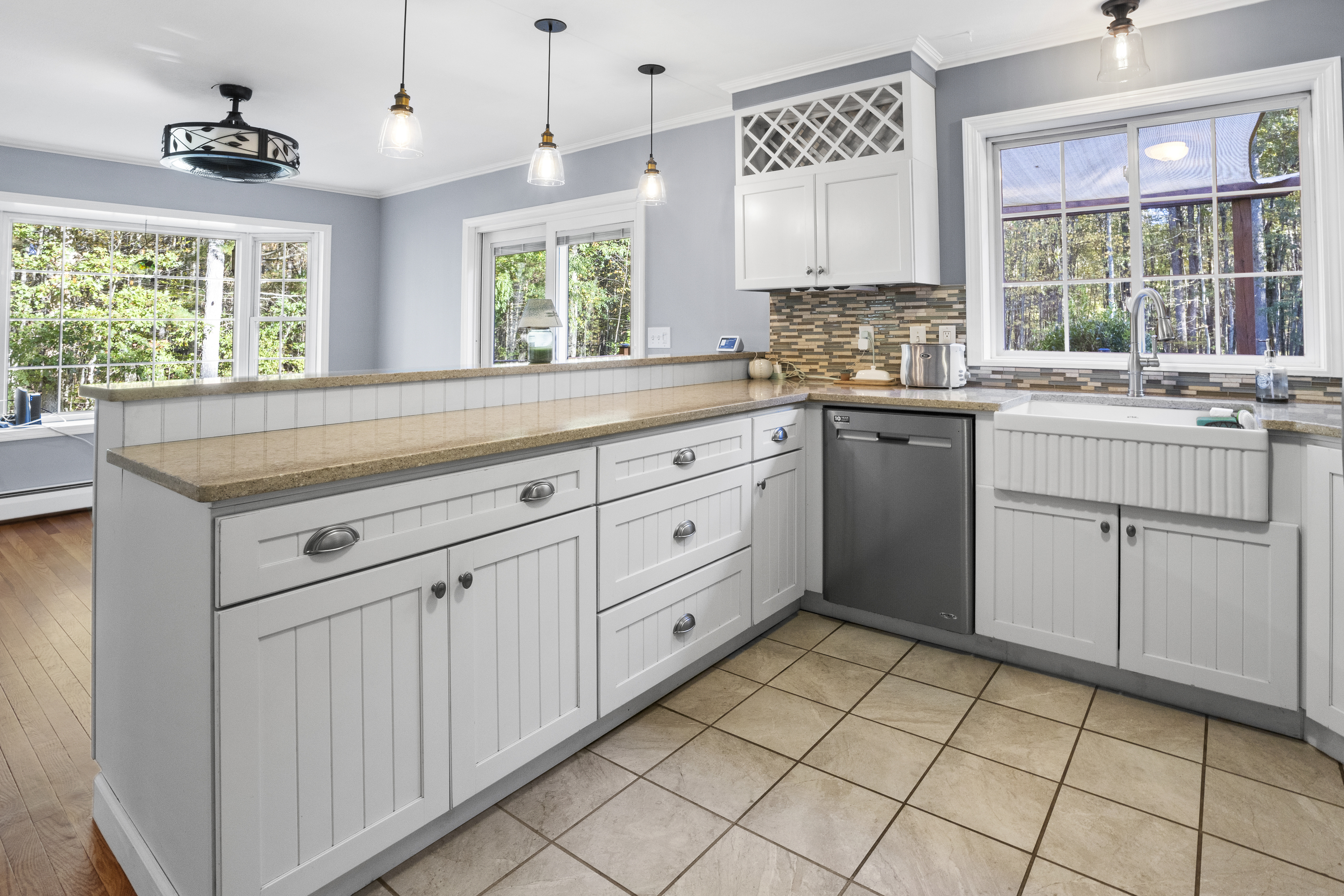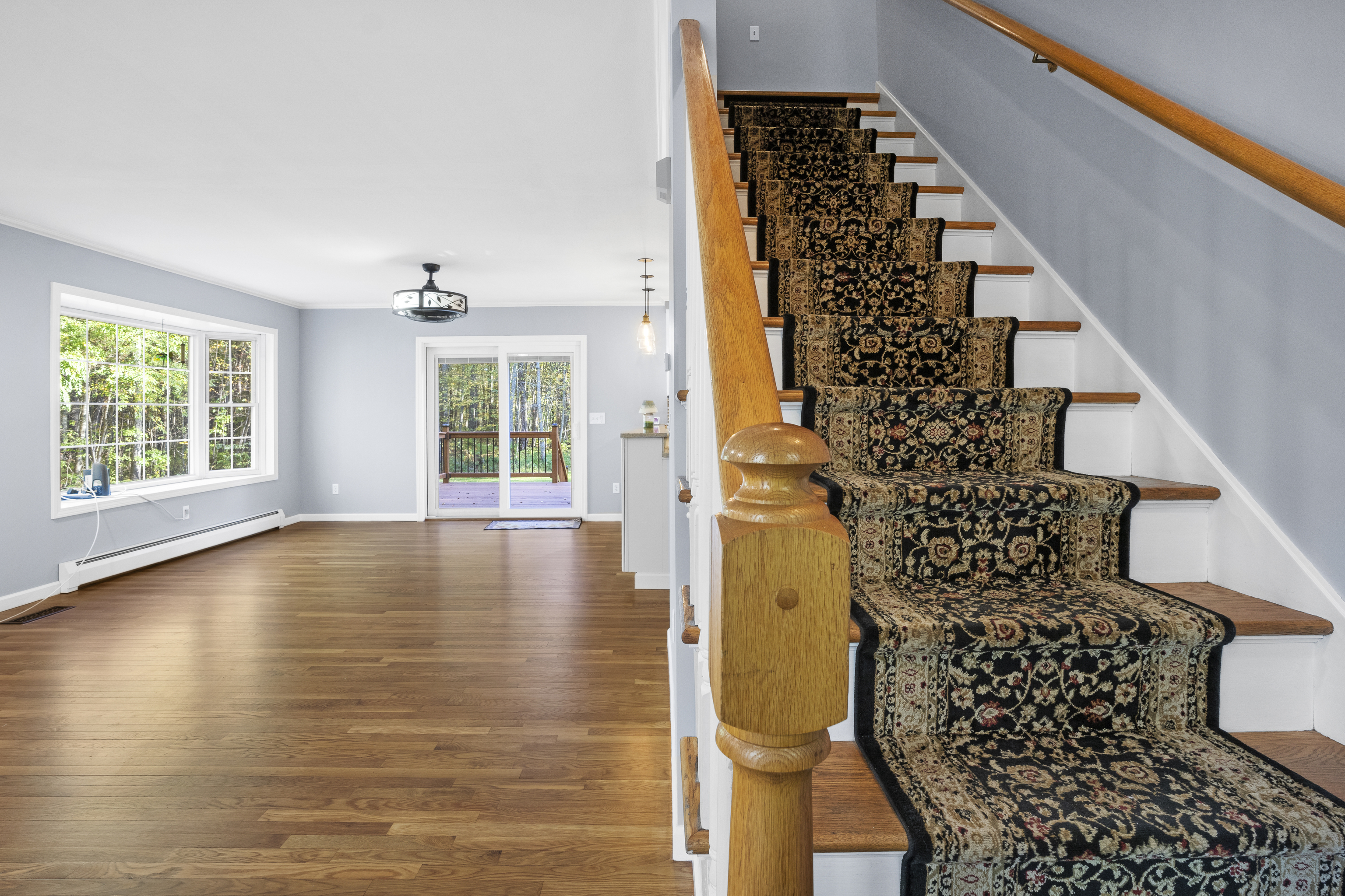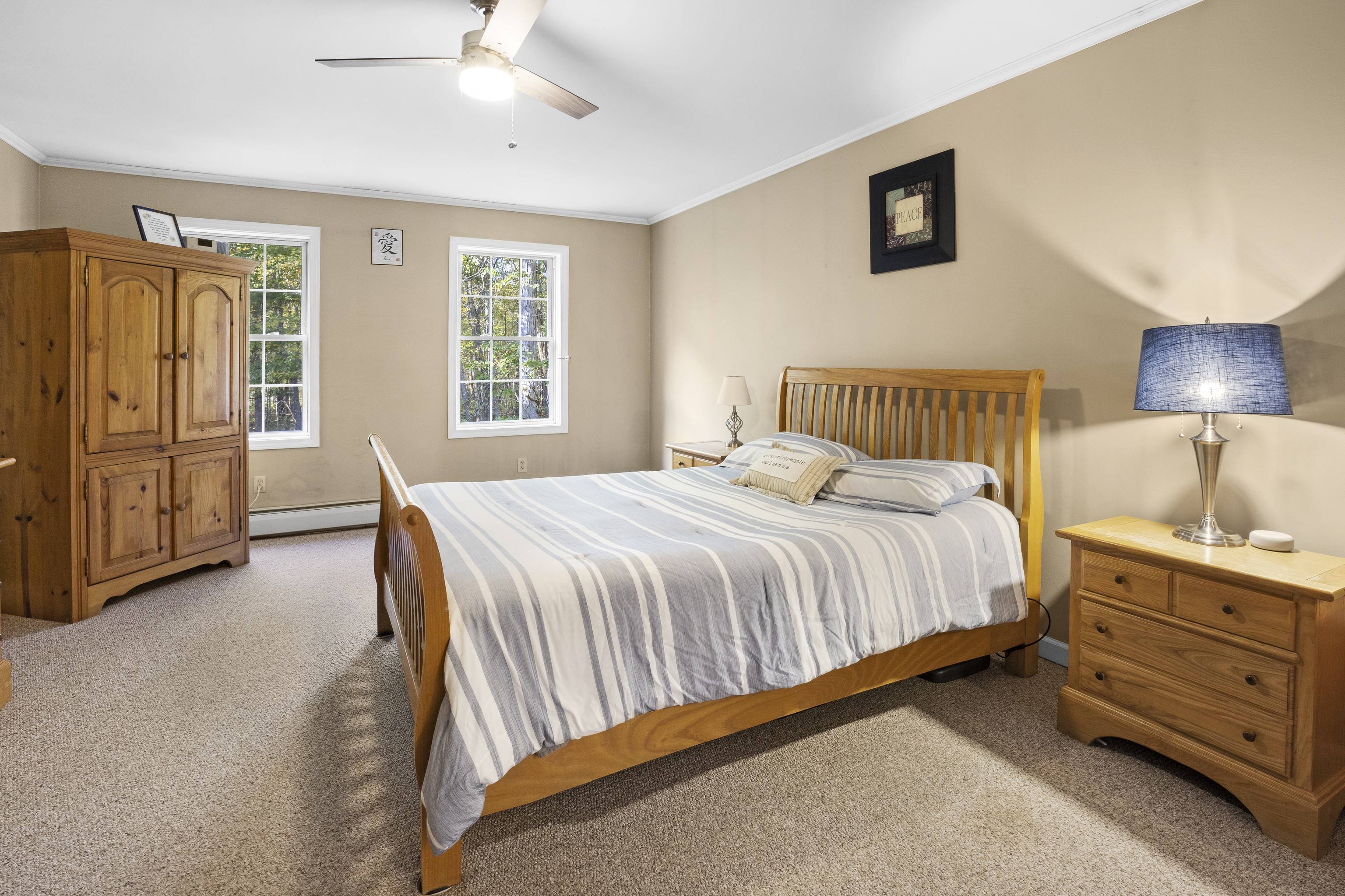 Welcome to this beautifully maintained Colonial built in 1998 and set on a private rear lot. This home offers a warm and inviting layout with a spacious living room, dining area, and an updated farmhouse-style kitchen featuring quartz countertops, farmhouse sink, tile backsplash, lighting, and updated appliances. Oak flooring has been recently refreshed, and the deck has also been stained. A first-floor room provides flexible use as an office or den, along with a full bath and laundry area for added convenience. The second floor includes three bedrooms and a fully renovated bathroom with a soaking tub & double sinks.The primary bedroom offers a private terrace-an ideal spot to enjoy morning sunrises. Additional features include a usable wood-burning fireplace, attic fan, water filtration system, Generac generator, newer thermostats, dehumidifier, 200-amp electrical service, burner on boiler replaced approximately 2 years ago, and a well pump replaced in 2014. A standout feature of this property is the exceptional garage space-perfect for hobbyists or car enthusiasts. The multi-bay garage offers approximately five-car capacity, recently epoxied floors, and a utility sink in one bay, creating a rare opportunity for storage, workspace, or vehicle housing. This well-cared-for home is set in a peaceful, nature-filled setting and has been consistently updated inside and out.