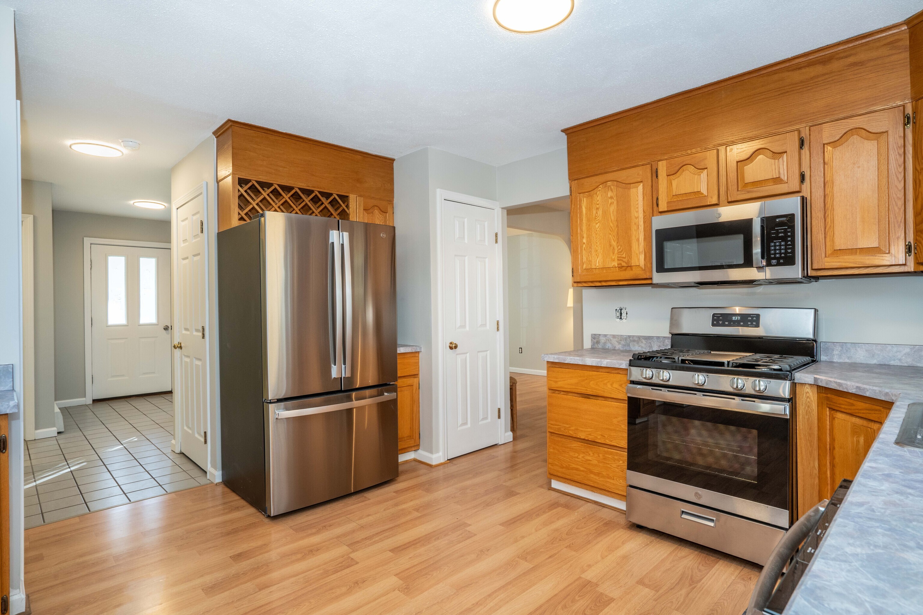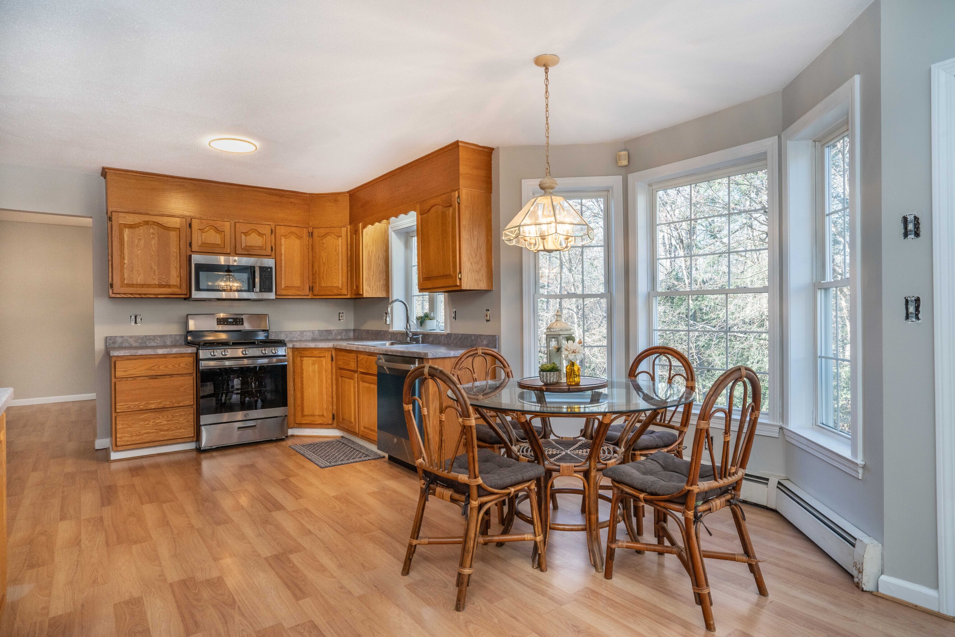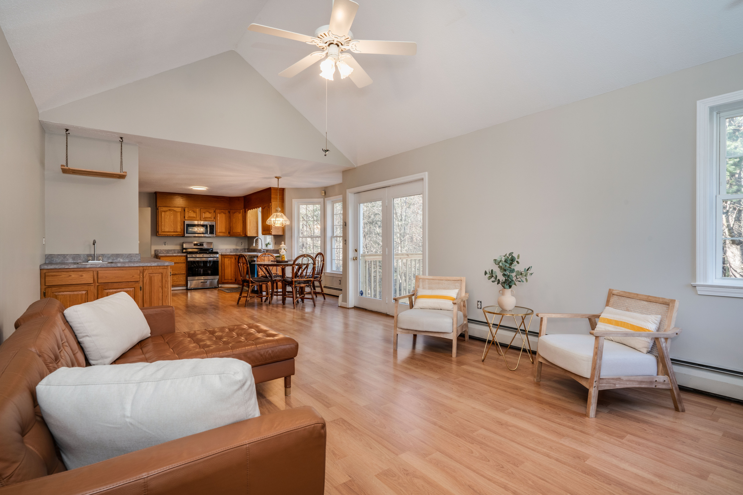 Welcome to this charming home featuring an open floor plan, freshly painted interiors, and stunning cathedral ceilings that create an expansive feel. Sunlight pours through and highlights the home's warm and inviting character. The kitchen boasts BRAND NEW stainless steel appliances. Upstairs you'll find the primary bedroom with walk in closet and spacious bathroom, guest bedrooms and guest bathroom. Large walk out basement with windows and ample light can be finished for additional living space. Enjoy peace of mind with a BRAND NEW roof, along with a new deck and new water heater - major upgrades already taken care of you. Location is a plus with easy access to the highway. It is Move-in ready and thoughtfully refreshed, schedule a showing today!