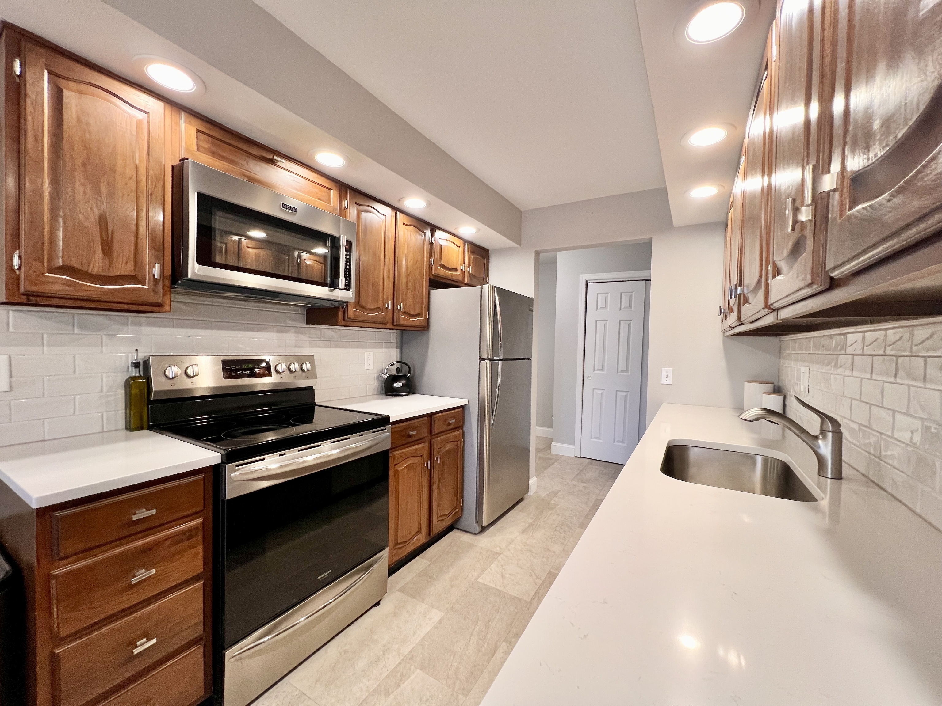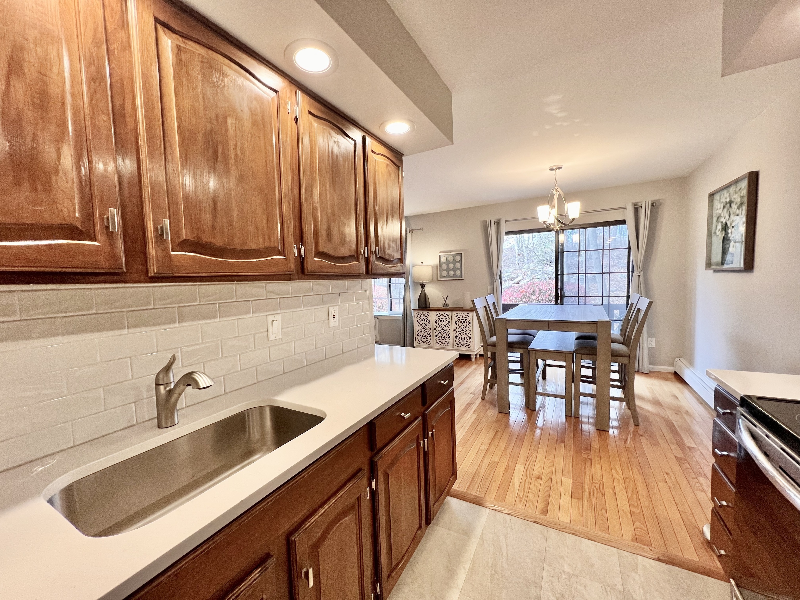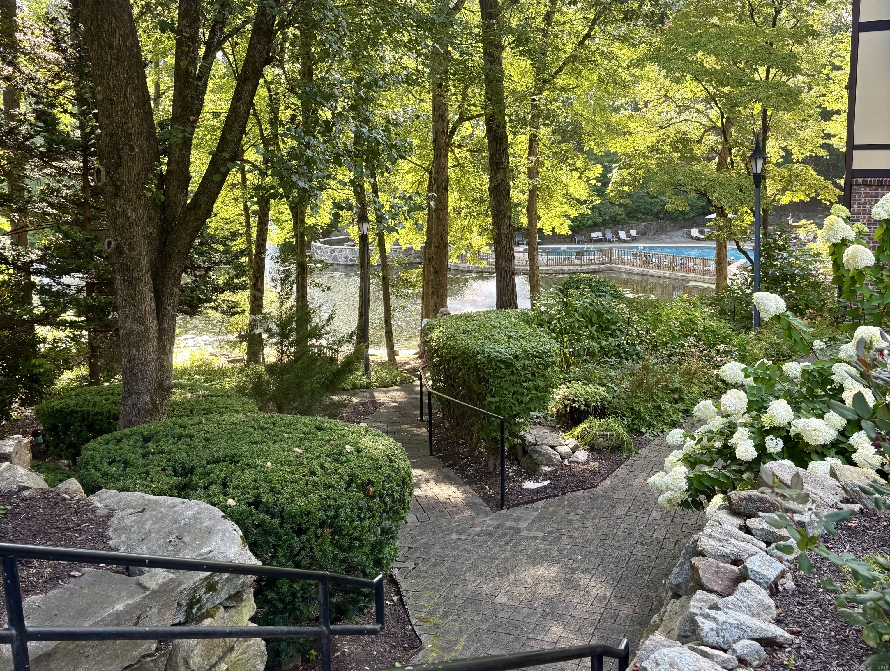 This ranch-style condo with Hardwood floors at 50 Aiken St APT 382 brings together space, privacy, and convenience in one of Norwalk's most quietly set communities. Inside, the layout opens immediately to a bright living and dining area with hardwood floors and fresh paint, creating an easy flow for everyday living. The kitchen has updated stainless steel appliances and newly installed countertops, and it connects directly to the dining area with sliders that lead to a private deck overlooking a lightly wooded backdrop. The bedroom wing includes a spacious en-suite with two closets and a remodeled full bath. A second bedroom sits beside another beautifully updated bath featuring new fixtures, a refreshed tub and shower, and modern vanities. Two new AC wall units add comfort throughout the warmer months. Laundry is located directly in the unit, and a dedicated basement storage area provides extra room for seasonal items. Rolling Ridge offers a peaceful setting with mature landscaping, a relaxing in-ground pool beside the pond, and paddle tennis courts. Monthly common charges INCLUDE HEAT, HOT WATER, water, grounds care, and pool maintenance, Platform tennis, etc., adding simplicity to homeownership. The location places you close to the Route 7 connector for easy access to the Merritt Parkway and I-95, while nearby dining, shopping, and everyday essentials are just moments from home.