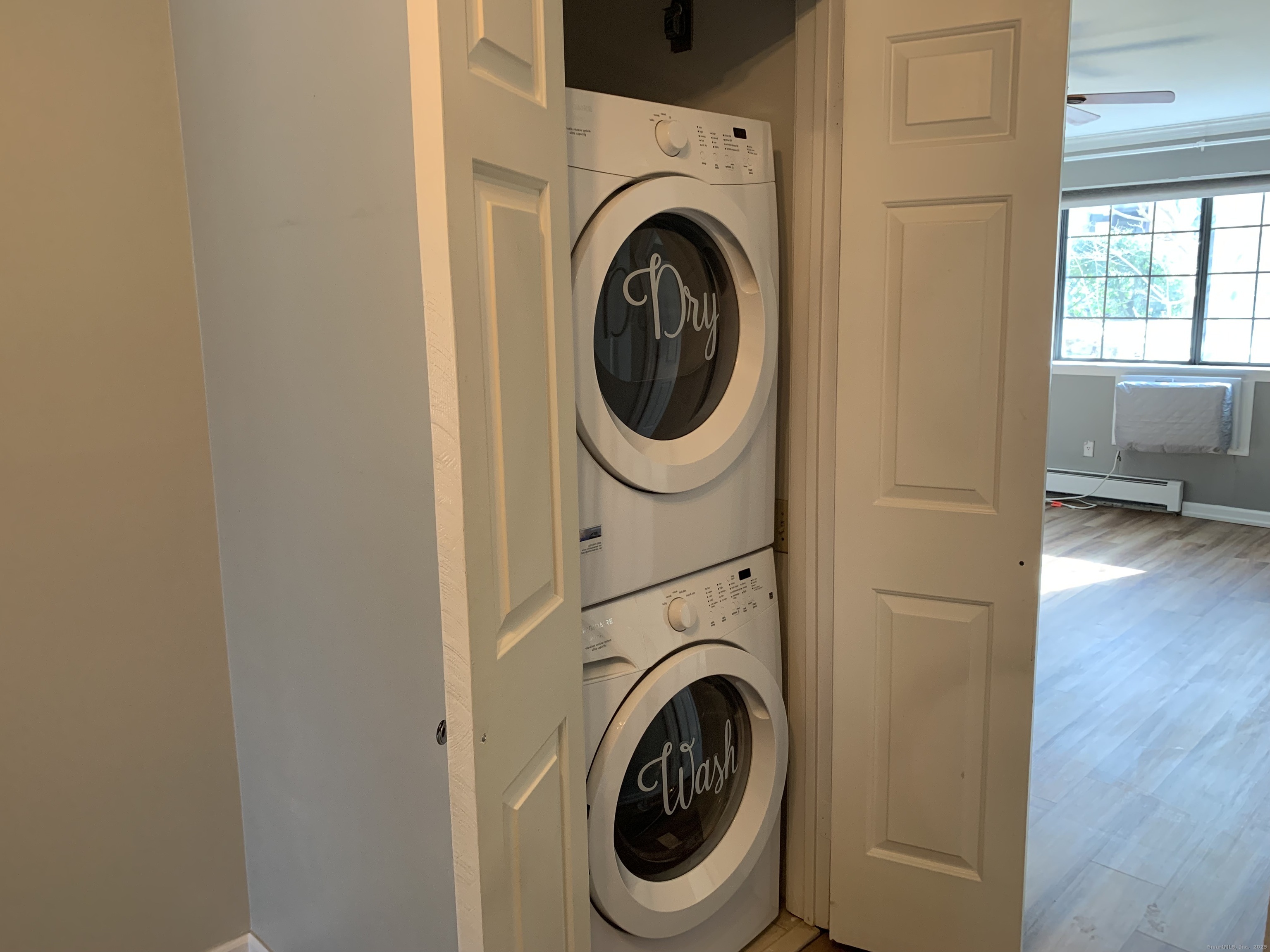 This pristine first-floor unit offers exceptional comfort and convenience. Features include luxury vinyl plank flooring throughout and a versatile den off the living room-ideal for a home office. The dining area off the kitchen opens to a private balcony with peaceful pond views. The spacious primary bedroom boasts a large walk-in closet, and both bathrooms and kitchen have been updated. Brand new stainless steel dishwasher (fingerprint resistant), 2023 AC unit. Heat and water are included in the HOAs. Rolling Ridge is an architectural gem, featuring classic Tudor design, a serene pond with fountains, an in-ground pool, a paddle tennis court, and a dog park. Shops and restaurants are within walking distance, and the Merritt Parkway is just a short drive away. Additional benefits include convenient parking and extra basement storage. Agent/Owner.