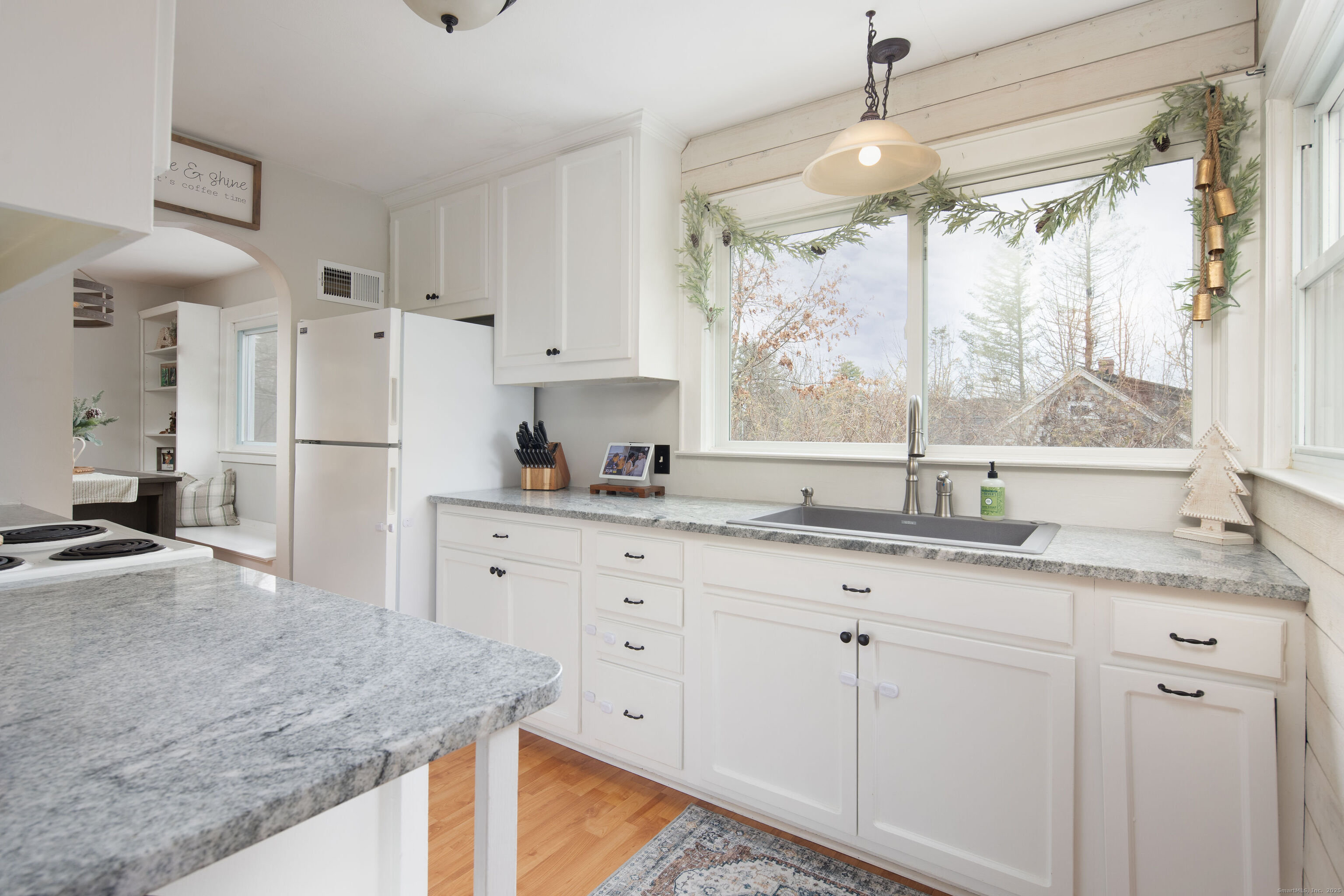 Welcome to 281 Hayden Hill Road - a warm, beautifully updated ranch in Torrington's desirable East-End that feels like home the moment you arrive. Set on a gently elevated & beautifully landscaped .41-acre lot, this inviting 3-bedroom property blends modern comfort with the character & ease of a home that's been truly loved & well cared for. Sunlight fills the main living space, highlighting freshly painted plaster walls & hardwood floors that create a bright, cozy atmosphere. The kitchen offers granite countertops, a new sink, painted cabinetry, & excellent natural light - a clean & functional space perfect for everyday meals or weekend hosting. Downstairs, the transformed lower level expands the way you can live. A spacious family room with recessed lighting, tile flooring, & a propane stove creates a warm retreat for movie nights, quiet evenings, or gatherings. A dedicated home gym with padded flooring, ready-made space for workouts, hobbies, or play. Step outside to your own backyard sanctuary. Enjoy sunrise coffee on the refinished deck, grill with friends on summer evenings, or wander the yard featuring mature apple trees, a grape arbor, raised garden beds, a manicured lawn, a fire-pit, & a finished shed with power. It's a space designed to be lived in, enjoyed, & shared. Tucked away in a quiet setting yet less than five minutes from Target, Walmart, Lowe's, Home Depot, dining, & groceries - this home offers the perfect balance of comfort,quality, & convenience.