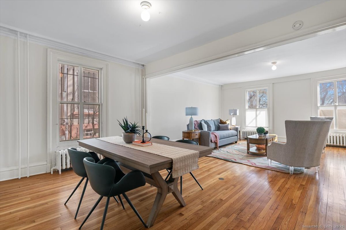 Attention Investors and Visionaries! The historic Samuel Wadsworth House offers a rare opportunity overlooking the beauty of Wooster Square Park. This residence is currently arranged as three units, with the main house spanning three generous floors of living space. Once configured as two separate apartments, the main house features expansive living, dining, and family rooms, along with multiple rooms on the upper floors. Behind the main house, you'll find two more residences: a charming studio on the lower level and a one-bedroom apartment above. Utilities for these three units are separate for both electric and gas, and the property currently has three separate heating and hot water systems. Hardwood floors run throughout, and oversized windows frame views of the park, gardens, and landscaped yard. Parking is available with tandem space for two cars in the driveway, which could be widened for easier access while maintaining the posts and fencing. While the units will benefit from updating, the combination of historic character, prime location, and flexible layout makes this property a standout investment in one of New Haven's most desirable neighborhoods.