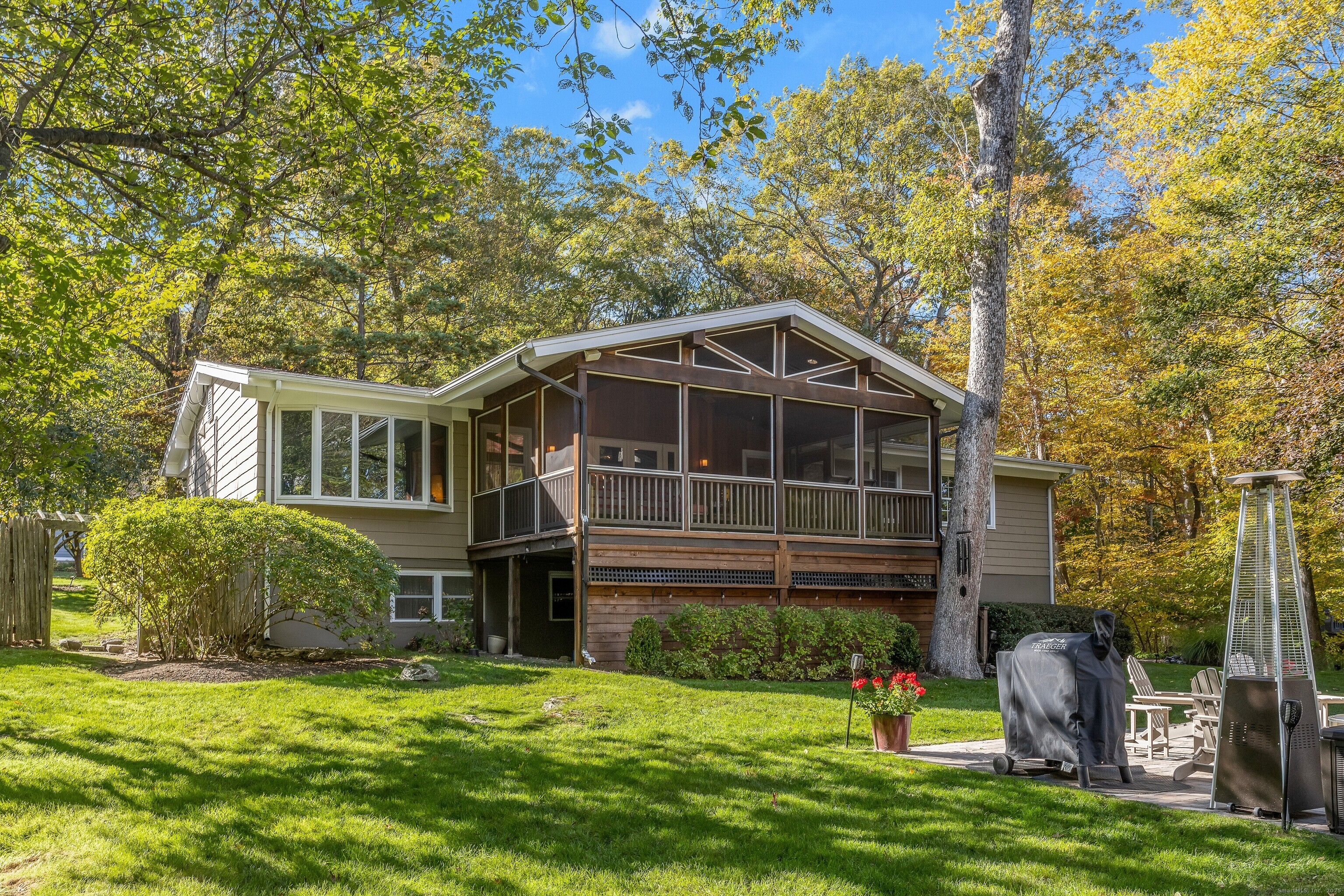 Experience refined living in this beautifully appointed 5-bedroom, 3-bath ranch, privately nestled behind lush, mature landscaping on nearly 1.5 acres in coveted North Stamford. A newly paved circular driveway welcomes you to this stylish yet effortlessly livable residence, thoughtfully designed for both intimate daily comfort and sophisticated entertaining. Step inside to the inviting open-concept layout where the kitchen, dining, and living spaces flow seamlessly together, anchored by a charming wood-burning fireplace. The centerpiece of the home is the breathtaking 3 season great room-an architecturally striking space featuring soaring ceilings, and serene views across the pristine, level grounds and picturesque pond. Five generously sized bedrooms offer remarkable versatility, accommodating guests, dedicated work-from-home space, a nanny suite, or multi-generational living with ease. The home's layout masterfully balances openness with privacy, creating an atmosphere of relaxed luxury throughout. Perfectly positioned on a quiet cul-de-sac just moments from the Merritt Parkway, 8.5 miles from the Stamford train station, and minutes from shopping, dining, and everyday conveniences, this residence offers a rare harmony of tranquility and accessibility. An exceptional blend of setting, space, and style-your private North Stamford retreat awaits!