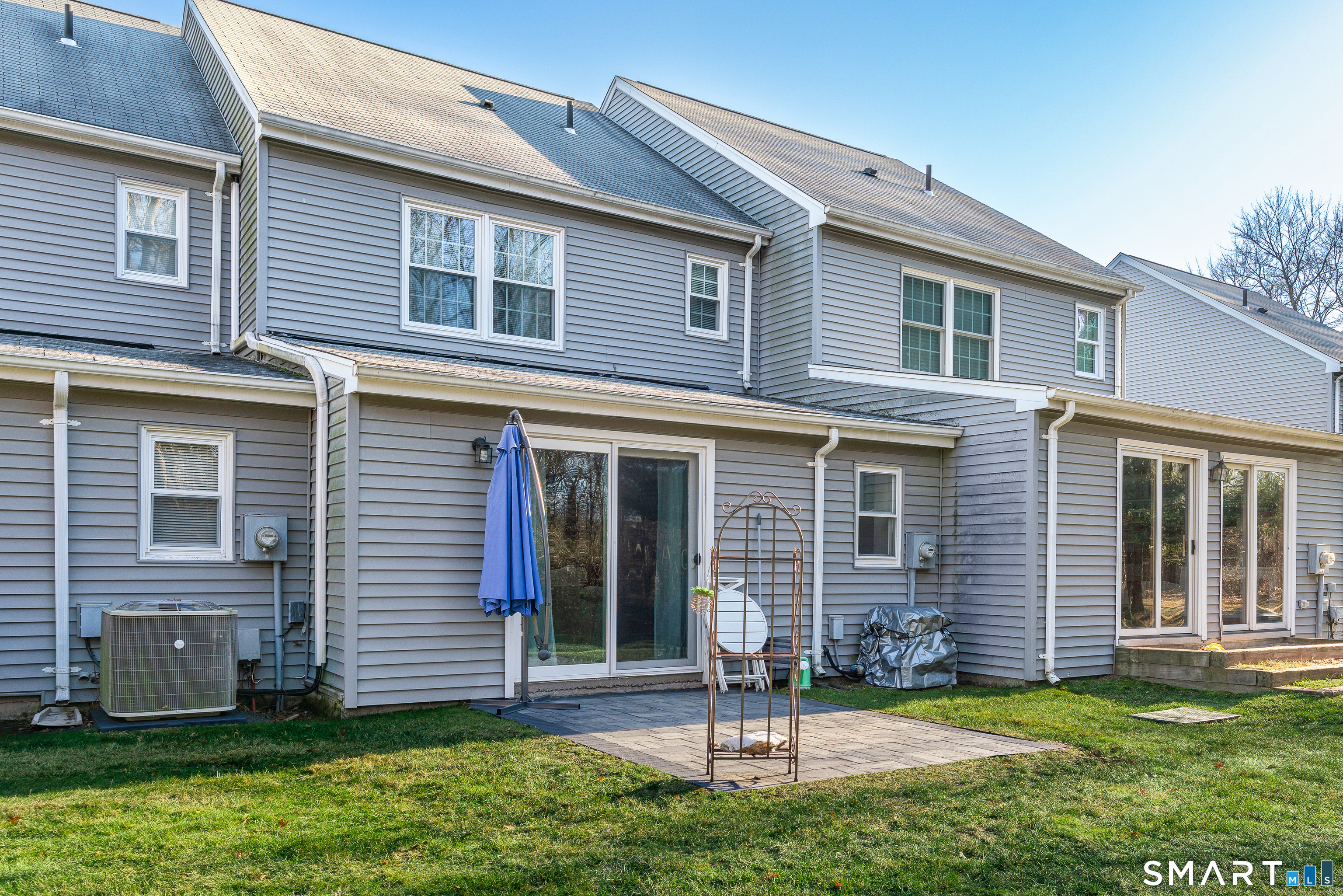 Welcome home to this beautifully maintained 2-bedroom, 2.5-bath townhouse, conveniently located in a quiet neighborhood close to shops, restaurants and major highways. Step inside to a spacious living room with gorgeous rich wood floors, beautiful built ins and a wood burning fireplace. From the front door you can see all the way through the back sliders to a stone patio and wooded/private back area. The kitchen has updated appliances and an eat-kitchen and a versatile bonus room off the back-perfect as a formal dining room, home office, playroom, sunroom, or relaxation space. A convenient half bath completes the first floor. Upstairs, you'll find two generously sized bedrooms, each with its own full ensuite bathroom and walk-in closets, providing the privacy and comfort of dual primary suites. The second-floor laundry area adds everyday convenience right where you need it most and a full attic with drop-down stairs completes the second floor. With its smart layout, ample storage, and desirable features throughout, this townhouse offers easy living and low-maintenance comfort. This condo has a detached garage #14 and plenty of parking.