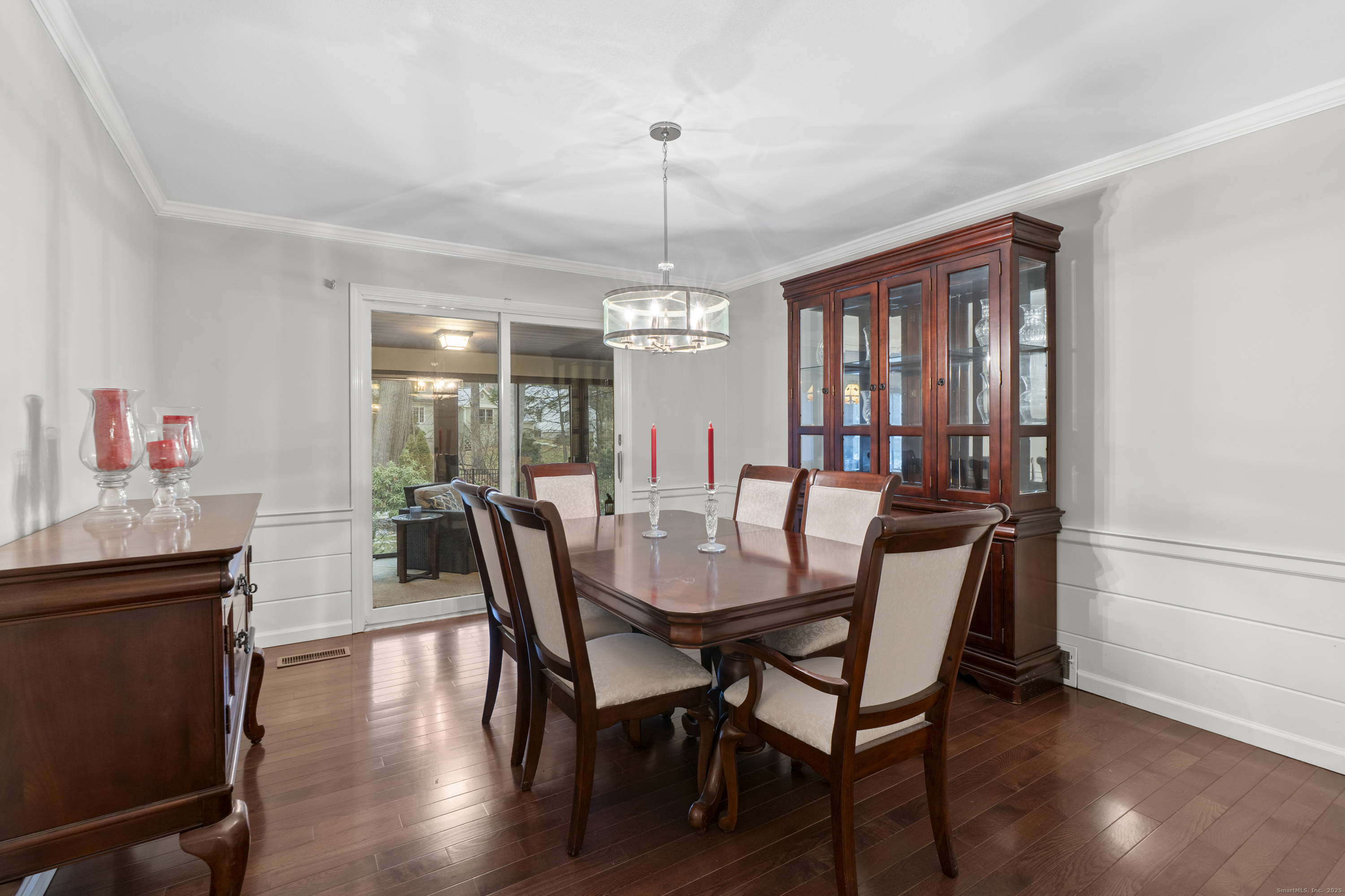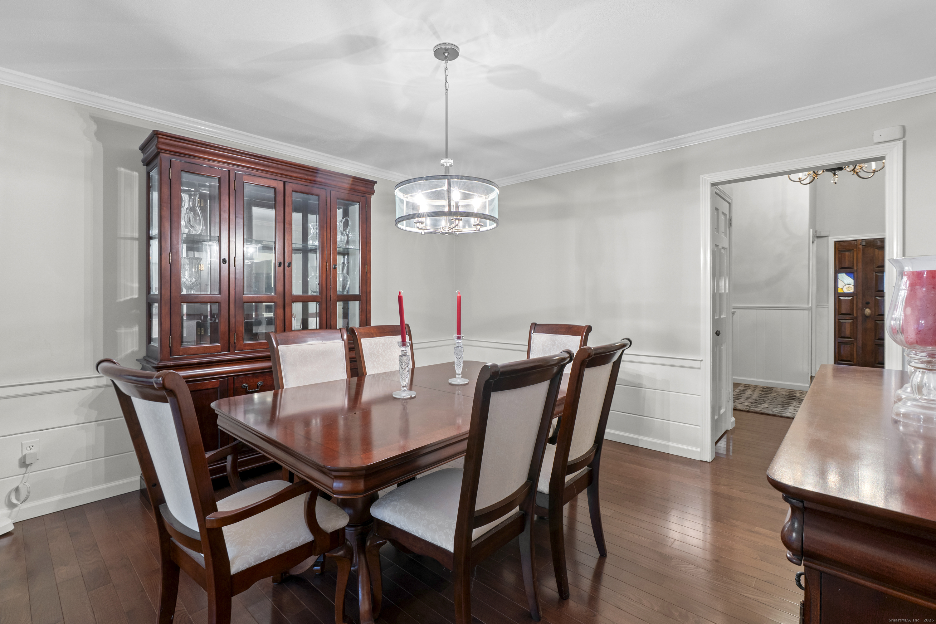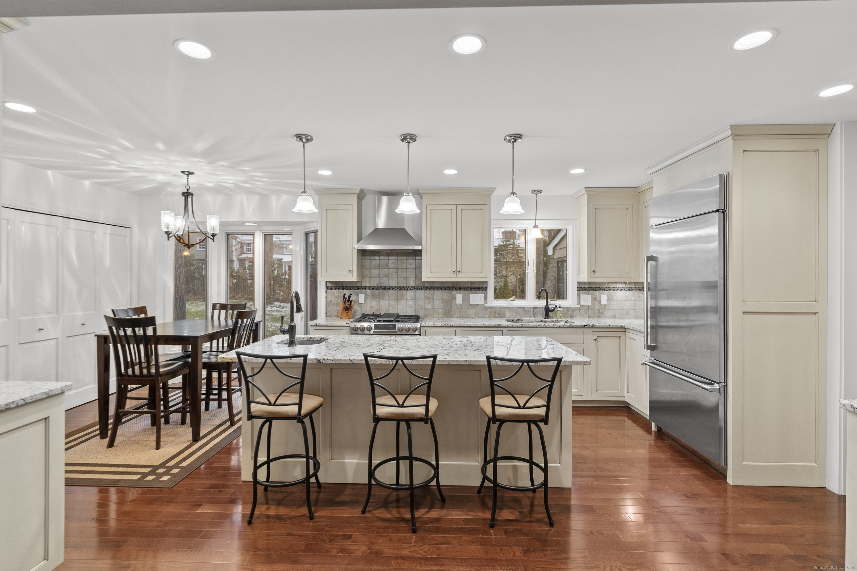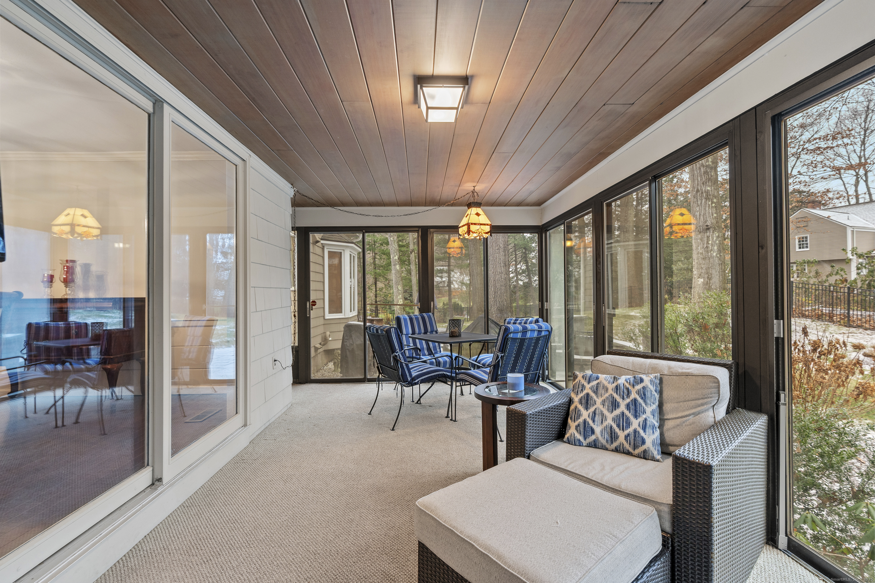 Welcome to 26 Berwyn Road, a beautifully updated Cape in one of West Hartford's most desirable neighborhoods. This inviting home features a gracious entry with hardwood floors throughout. The large vaulted-ceiling living room opens to the eat-in kitchen with granite counters, stainless appliances, counter seating, pantry, great storage, and space for a kitchen table overlooking the private backyard. Off the dining room, a charming three-season porch enhances the living space and offers peaceful views of the landscaped yard. The first-floor primary suite includes a large updated bathroom with a freestanding tub, separate shower, an expansive walk-in closet and access to the porch. A home office/den along with convenient first-floor laundry and half bath complete the first floor. Upstairs are two spacious bedrooms, a full bath, and generous storage areas off each bedroom. The partially finished walk out lower level offers a refreshed bonus space with new drop ceiling, vinyl plank flooring and a full bathroom (currently not working and not in use) and plenty of storage. Additional features include gas heat with three zones, central air plus mini-splits upstairs, 200-amp electrical, irrigation, and a two-car attached garage. Enjoy the stunning, fully fenced-in backyard with beautiful stonework and a built-in fire pit-perfect for relaxing or entertaining. Move-in ready and minutes to West Hartford Center, this home offers comfort, convenience, and timeless appeal.