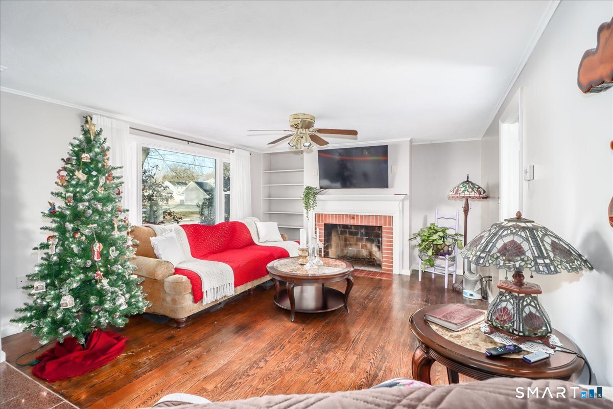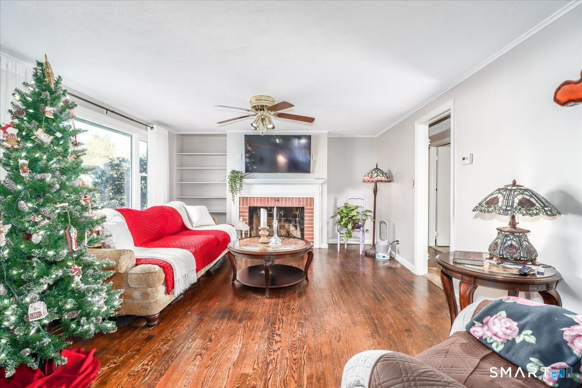 Welcome to 39 Cedar Lane, ideally set in a spectacular location on a quiet street in highly desirable Cheshire. This charming home sits on an amazing, expansive level yard-perfect for outdoor entertaining, recreation, gardening, or future additions. The main level offers a warm and functional layout designed for everyday living. The kitchen flows effortlessly into the dining room, which opens directly to the backyard through sliding doors, creating a seamless indoor-outdoor connection. A convenient first-floor laundry room located just off the kitchen adds ease and practicality. The inviting living room features a cozy wood-burning fireplace and built-in shelving, offering both character and additional storage. Two comfortable bedrooms and a full bath complete the first floor. The partially finished basement provides endless possibilities-ideal for a home office, gym, playroom, or additional living space-while still allowing ample storage. With its prime location, versatile layout, and exceptional level yard, this home offers comfort, flexibility, and outstanding potential. A wonderful opportunity to own in one of Cheshire's most sought-after neighborhoods.
