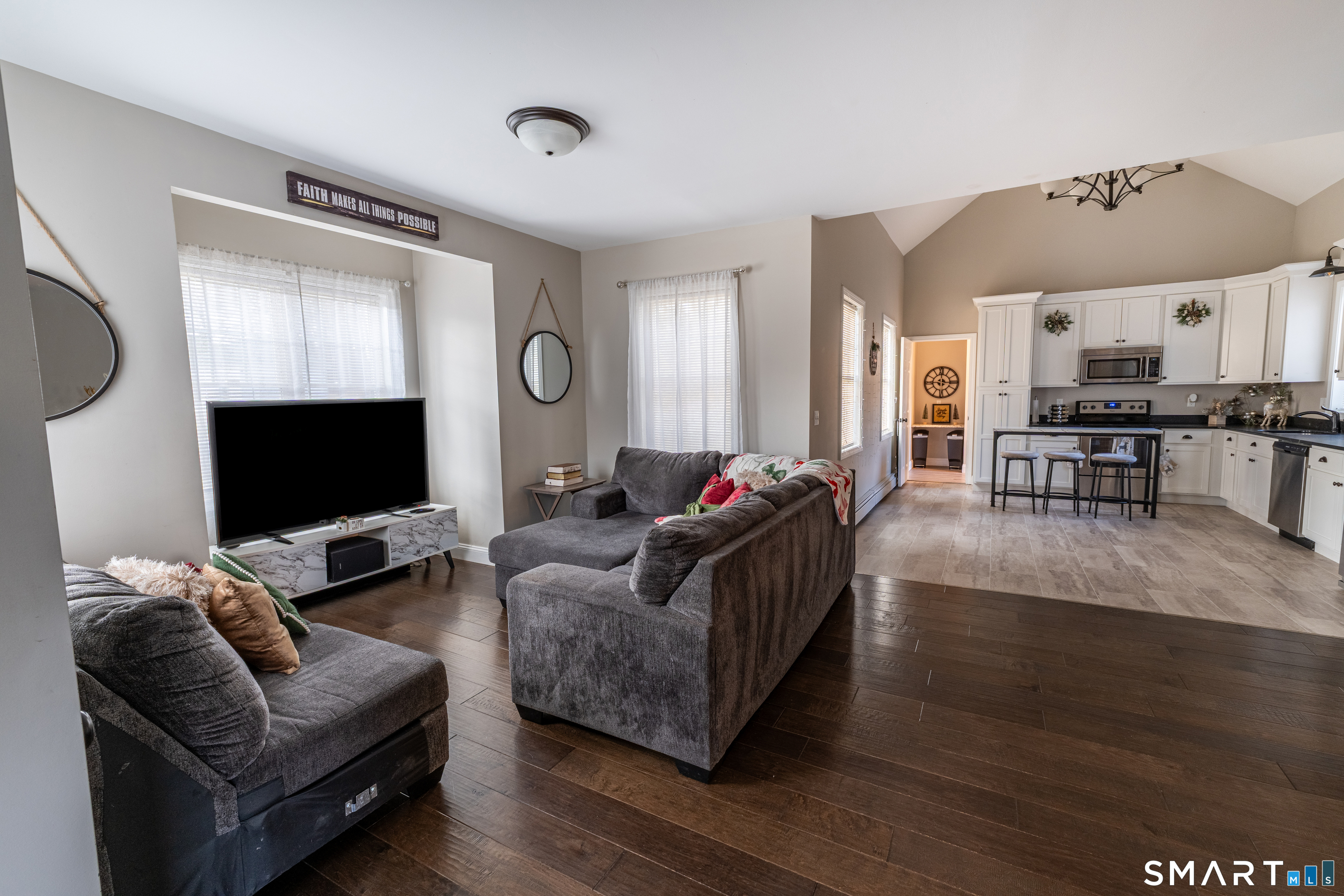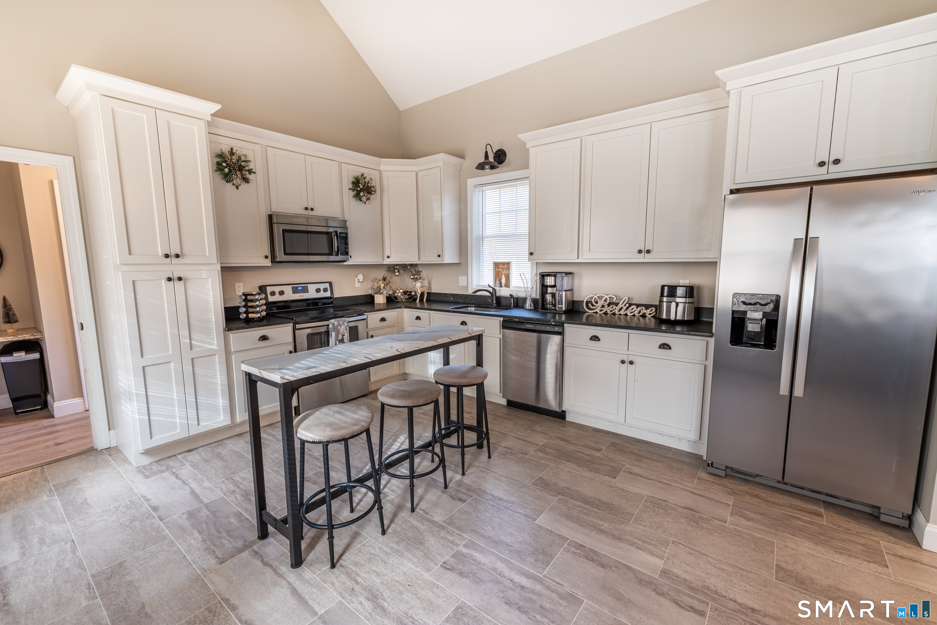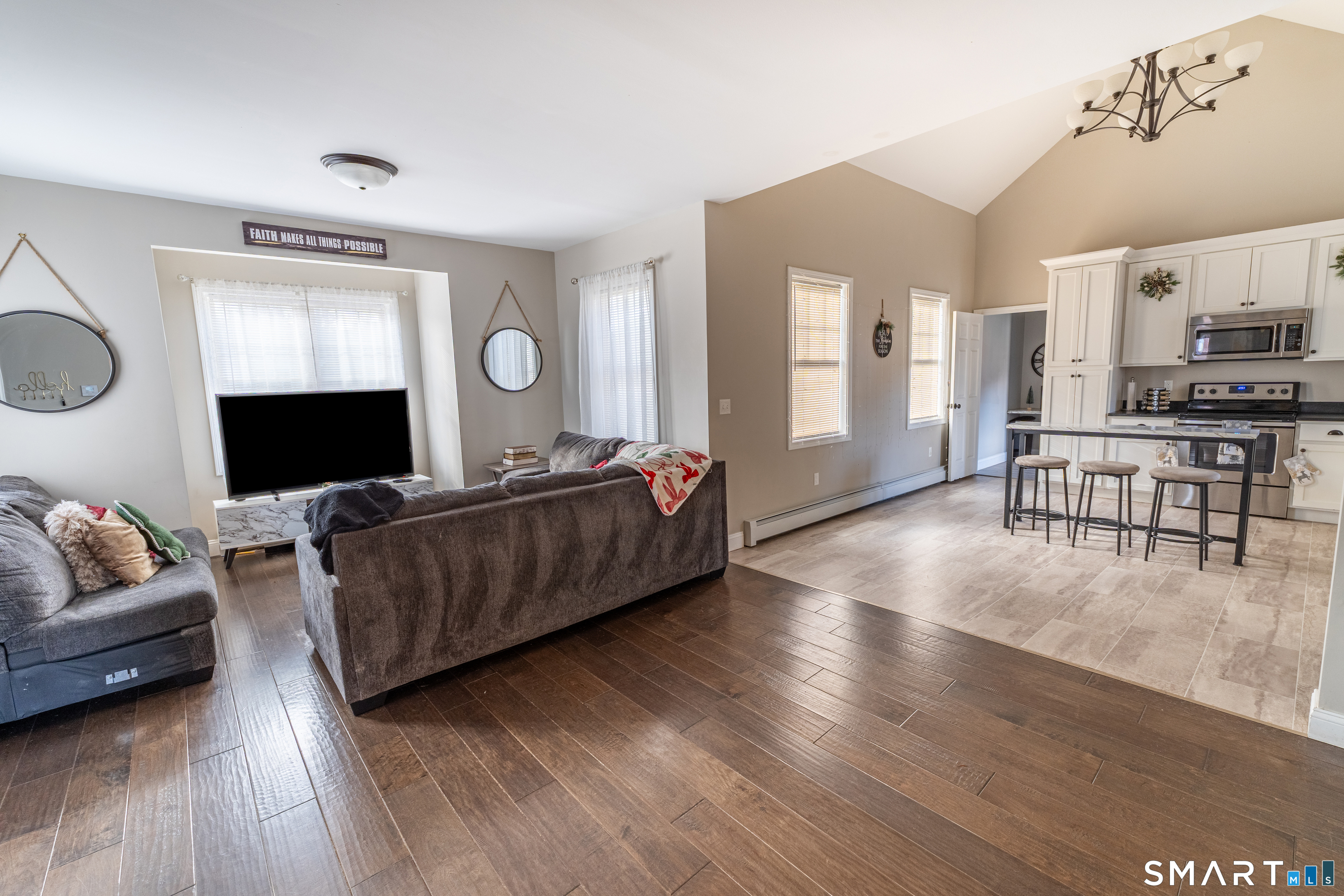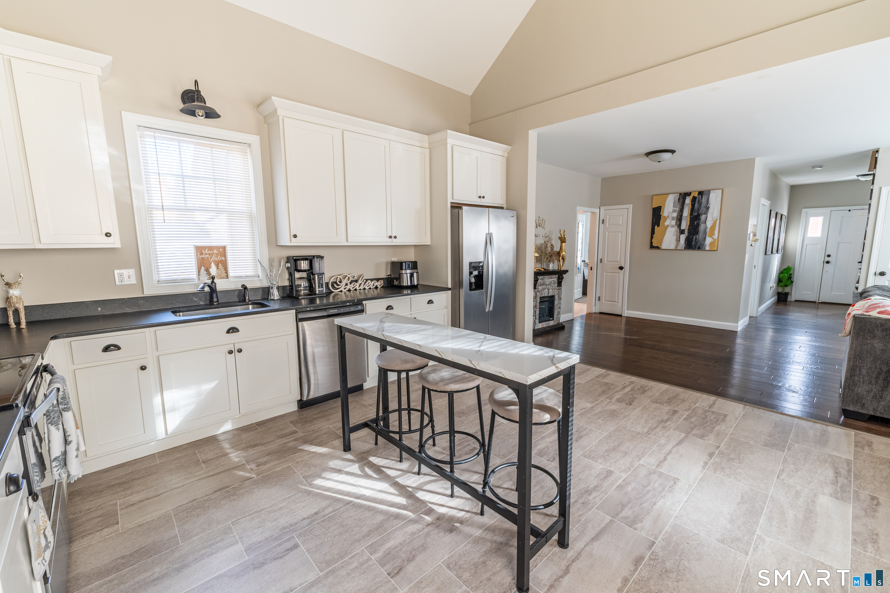 Welcome to this beautifully updated home, completely transformed in 2019 with thoughtful design throughout. The desirable open floor plan features a dramatic cathedral-ceiling kitchen highlighted by a stunning white Shaker-style cabinetry, dark granite countertops, and stainless steel appliances-perfect for everyday living and entertaining. First floor master suite with walk in closet along with first floor laundry. Every detail of this home was made new in 2019, including vinyl siding, energy-efficient windows, a new roof, and new exterior doors. The interior renovation was equally comprehensive, featuring a new boiler with baseboard heat, all-new plumbing and electrical systems, upgraded insulation, new sheetrock, interior doors, trim, and flooring throughout. Situated on a level, open lot, the property offers ample space for outdoor enjoyment, gatherings, and relaxation. This move-in-ready home combines modern updates with comfort and efficiency-an exceptional opportunity for today's buyer. Convenient location with nearby shops and just minutes from I-84.
