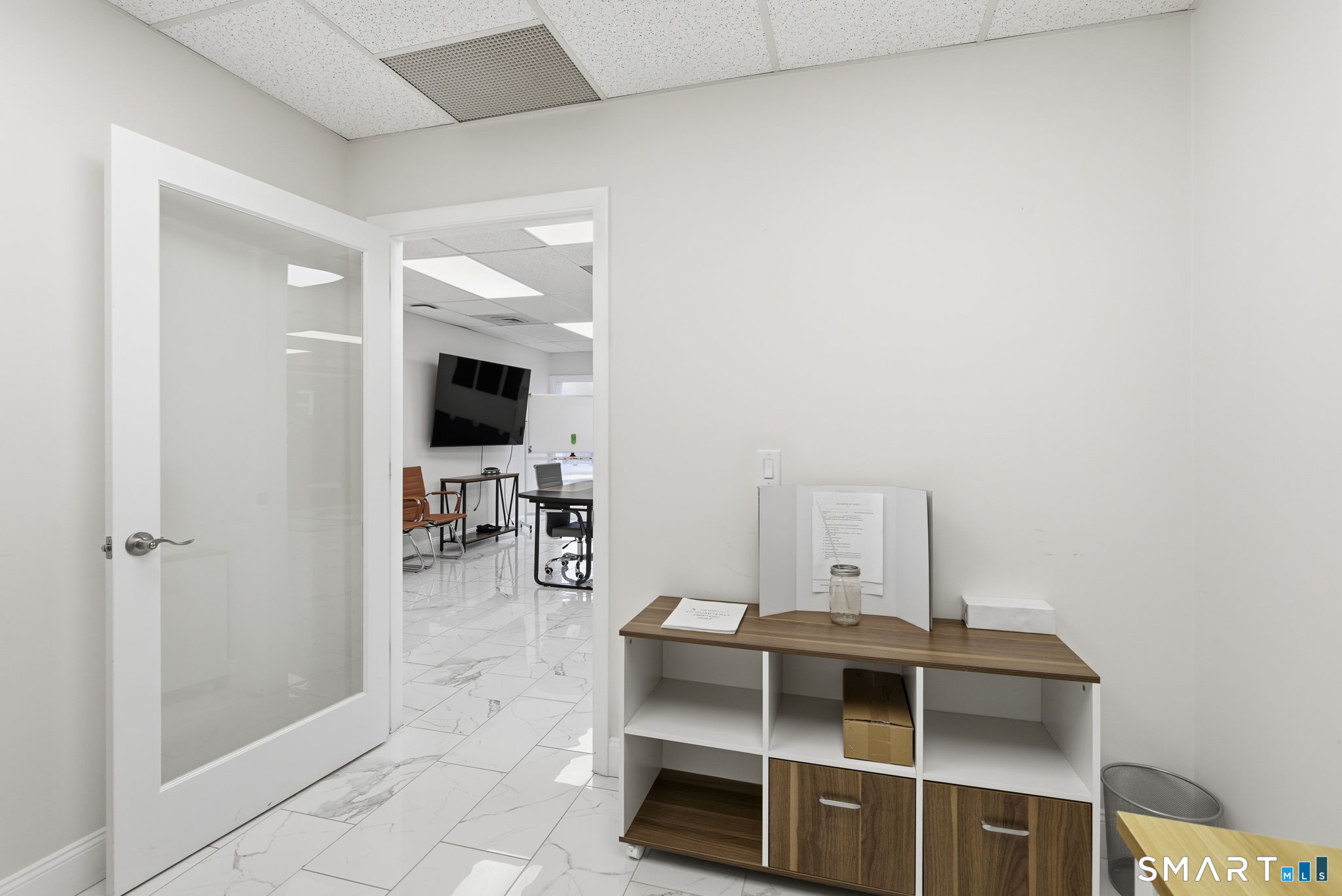Commercial property conveniently located on Quinnipiac Avenue in North Haven, offering excellent visibility and accessibility in a well-established area with a mix of residential, retail, and professional uses. The surrounding neighborhood features nearby restaurants, local businesses providing convenience for both employees and clients. The property benefits from easy access to major roadways and is just a short drive from surrounding towns and business districts. Its proximity to educational institutions, medical facilities, and public transportation further enhances its overall appeal. The property consists of a standalone building with nearly 2,000 square feet of updated office space. The interior features a bright and well-maintained lobby, multiple private offices and rooms throughout, a reception area, break room, and restroom. The exterior includes a convenient drive-through lane leading to a large on-site parking lot, offering ample parking to accommodate both staff and customers.