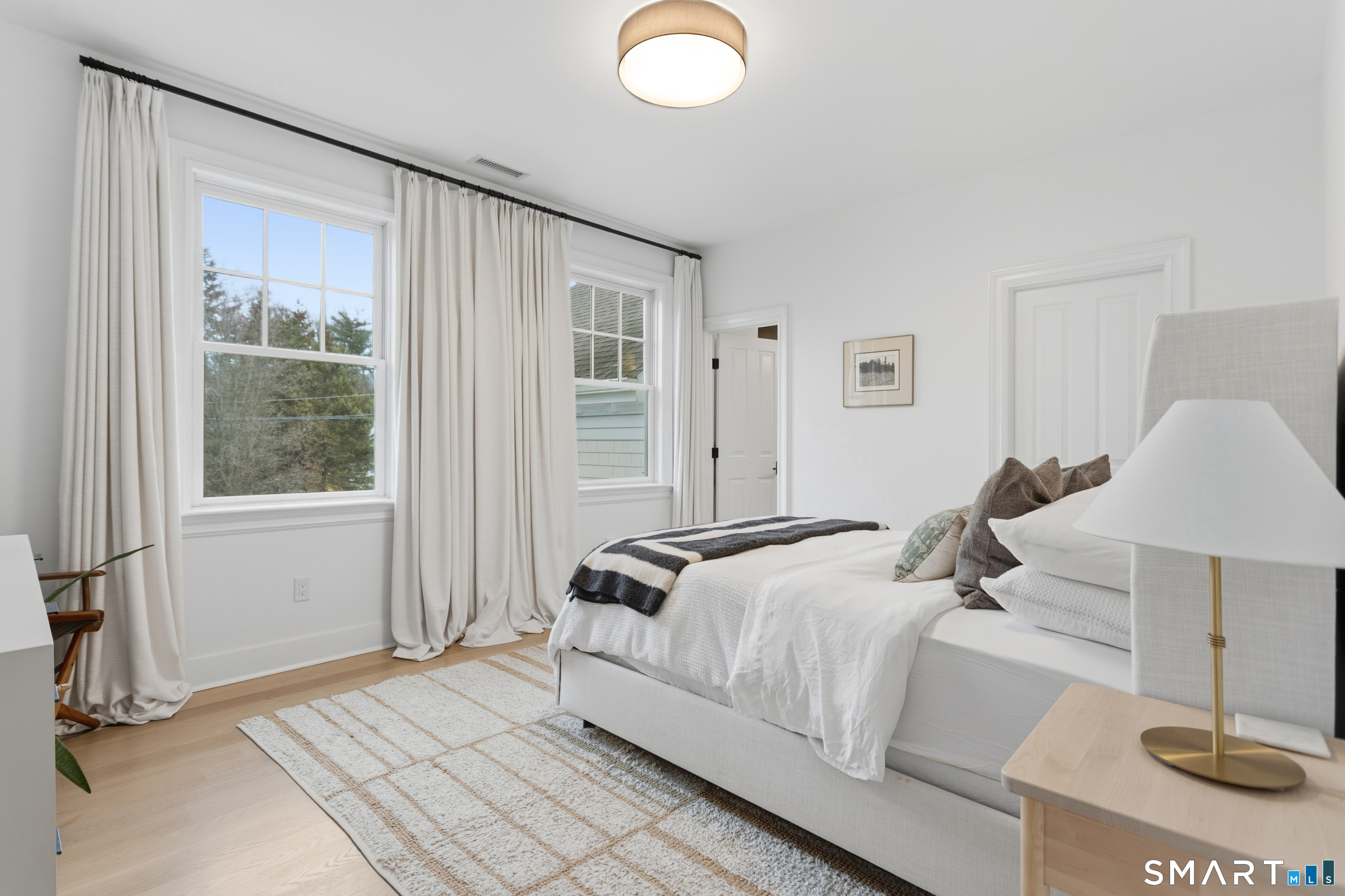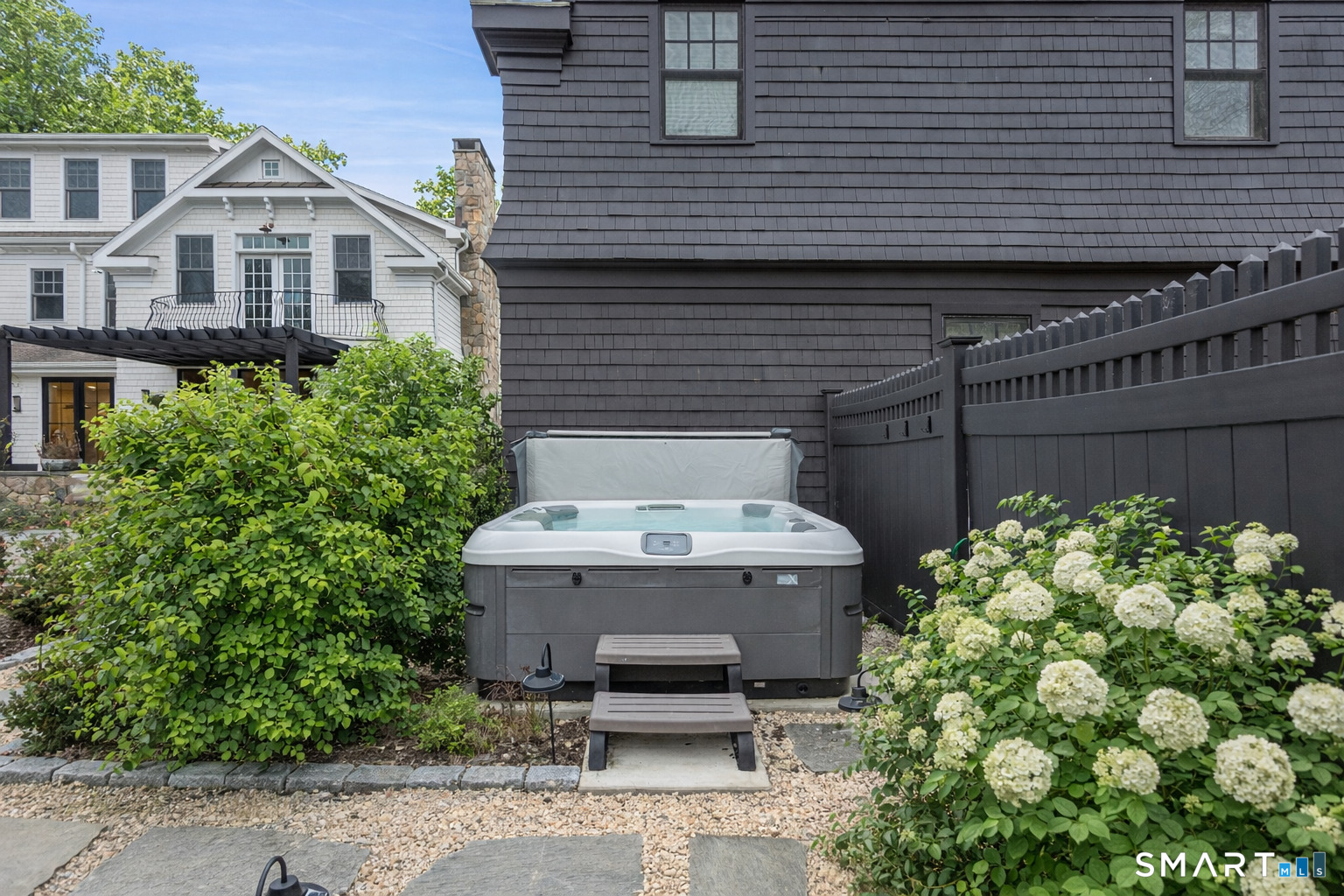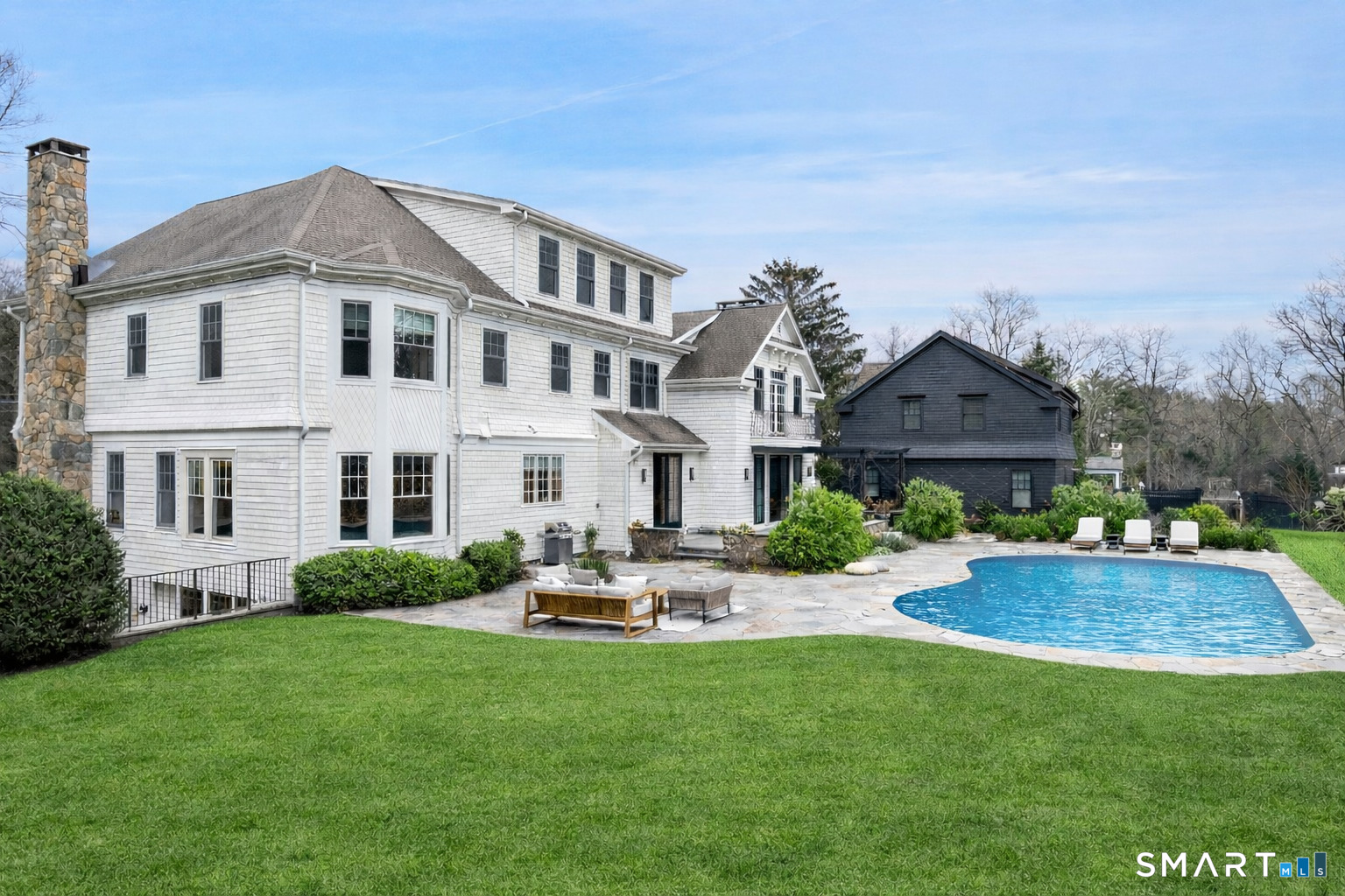 Spend July in this idyllic, fully furnished Westport retreat, tucked away on a private cul-de-sac and surrounded by stunning, manicured gardens. This sun-drenched Colonial offers resort-style living with a heated gunite pool, hot tub, guest house, and expansive outdoor entertaining spaces. A sweeping staircase welcomes you into the recently refreshed interior, featuring soaring ceilings and beautifully proportioned rooms. Highlights include an updated kitchen complete with a large center island overlooking a breakfast nook with French doors to the patio and an inviting family room with custom built-ins and fireplace. The luxurious primary suite features a private balcony overlooking the gardens, two walk-in closets, and a spa-like bath. Four additional en-suite bedrooms occupy the second floor, with an exercise room on the third level. The finished walkout lower level includes a generous playroom and an additional en-suite bedroom. Completing the property is a fully equipped one-bedroom apartment above the detached two-car garage. Outdoors, a sweeping lawn, blooming gardens, and expansive patio surround the pool, creating the ultimate summer setting. Just minutes to Westport's beaches, shopping, and dining-this exceptional summer rental is not to be missed.